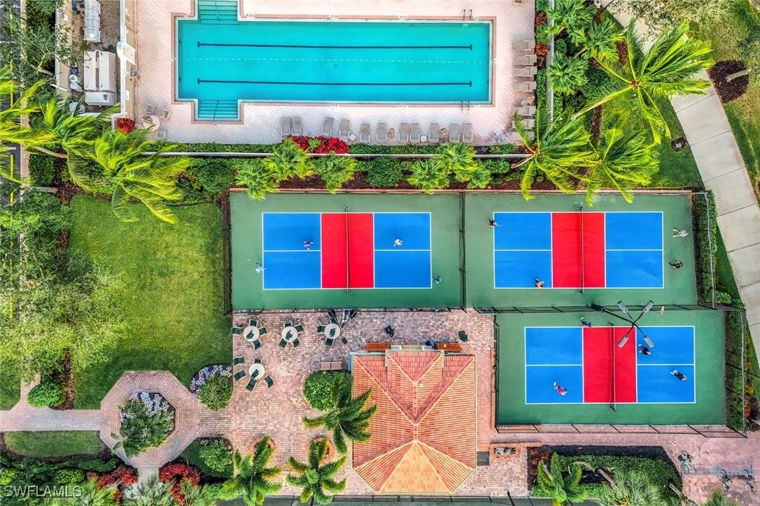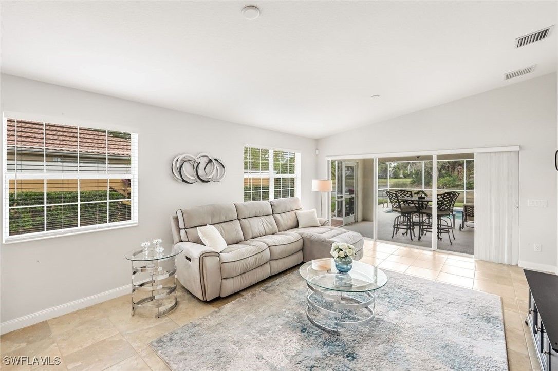 This move in ready home has many updates, including new roof and gutters (2025), A/C unit replaced (2020), refrigerator, stove, microwave (2022), new pool heater, pump, motor (2022) , new toilets and sink faucets (2022), and much more. A premium oversized lot makes the home light and bright with a beautiful long lake view from the private swimming pool and covered lanai. DiVosta poured concrete construction. Fresh neutral paint, very clean and well maintained. Just move in and enjoy life in peaceful VillageWalk, a guard gated community. VillageWalk offers an amenity-rich lifestyle. Resort style pool and lap pool, fitness center, eight lighted Har-Tru tennis courts, pickleball and bocce ball courts. Stroll or bike through miles of tree covered walking paths and bridges. On-site convenience services include a restaurant and café, gas station, car wash, post office, hair salon, and a full-time activities director, with a vibrant calendar of events hosted at the very active clubhouse. Ideally located just a short drive to Bonita Beach, as well as nearby shopping and dining, this is a wonderful opportunity to enjoy the best of Southwest Florida living.