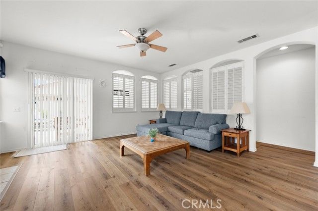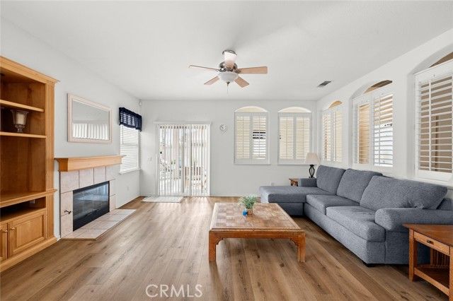 Beautifully updated Capri model home PRICED TO SELL! Located in the vibrant 55+ Gate Guarded Community of the OASIS. Live the Resort lifestyle! This popular plan has 2 large bedrooms PLUS an additional den/office that can easily serve as a 3rd bedroom. The spacious open concept floor plan showcases the newly installed vinyl plank flooring throughout the home. The immaculate kitchen boasts plenty of cabinet space, tile countertop island and natural light from the surrounding windows to enjoy gatherings and entertaining. Connected is the great room complete with cozy fireplace and built in entertainment center. Additional spacious dining room. The fabulous primary bedroom and bath has a custom tile fully remodeled handicap accessible walk in shower. Low maintenance rear yard with covered patio perfect for entertaining guests, BBQs or just enjoying a morning coffee. Two car garage with ample storage space. HOA covers front yard Water & Landscape service and trash service. Just minutes from all shopping/ medical/restaurants & easy freeway access! Right next to Menifee Lakes Golf Course and just a short drive to the Famous Temecula Valley Wine Country. You won't want to miss this adorable home! Call to schedule a private tour today!
