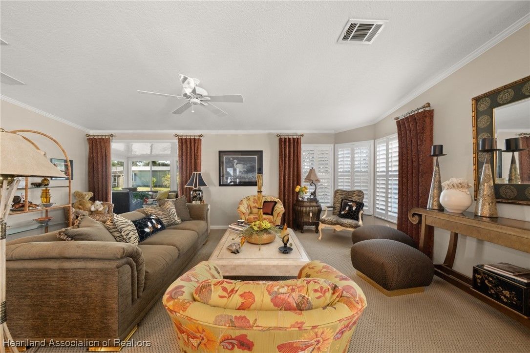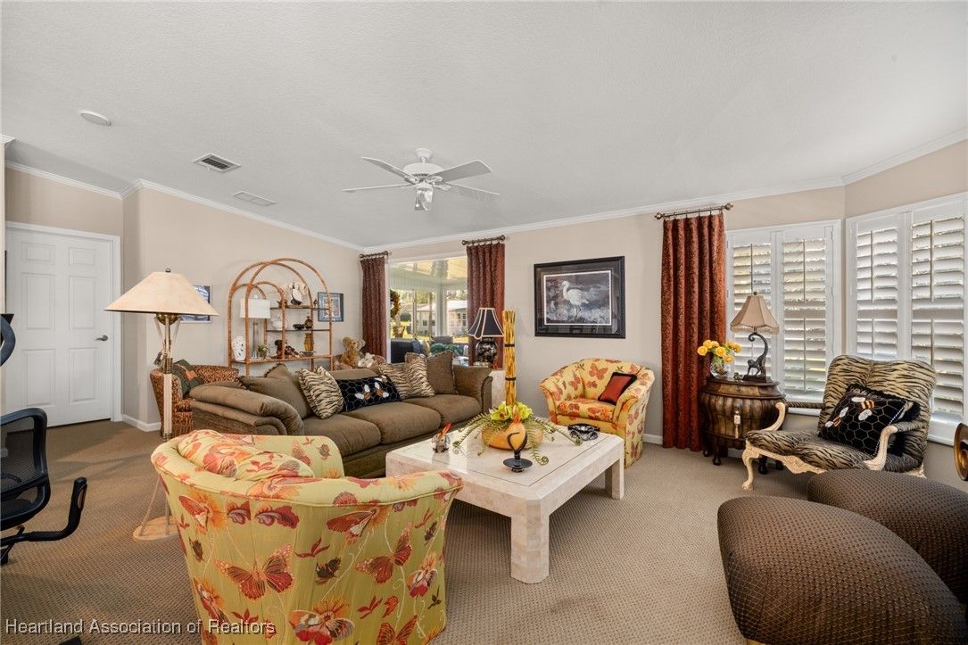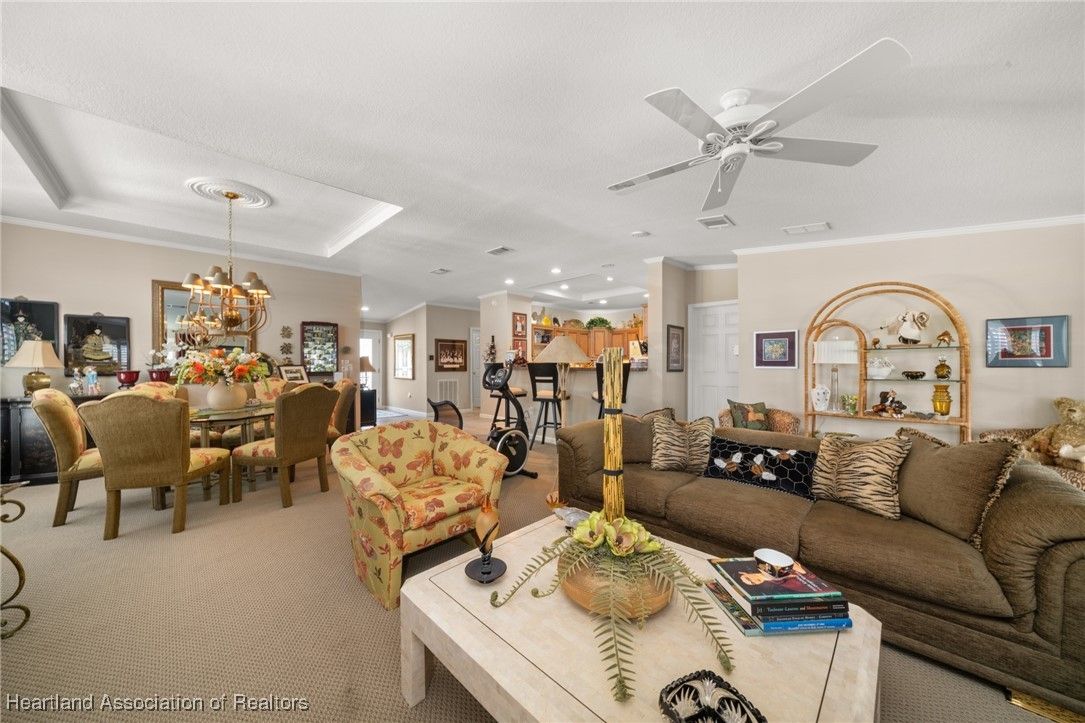 Welcome to 2826 S Mainsail Drive, located in Marina Cove at Highlands Ridge, an active 55+ community nestled along beautiful Bonnet Lake and home to two 18-hole championship golf courses. This well-maintained residence offers a huge home with a large, spacious floor plan, ideal for comfortable everyday living and entertaining. Inside, you’ll find expansive living and dining areas filled with natural light, creating an inviting and open atmosphere. The generous kitchen offers ample cabinetry and workspace, flowing seamlessly into the main living areas. An enclosed rear lanai extends your living space and provides a peaceful spot to relax year-round. The primary suite serves as a true retreat, featuring extra living space, perfect for a sitting area, office, or reading nook, along with a private en-suite bathroom. Additional bedrooms and baths offer flexibility for guests or hobbies. Enjoy the lifestyle that Highlands Ridge is known for, with access to golf, lake views, walking paths, and a welcoming, amenity-rich community. Conveniently located just minutes from shopping, dining, medical facilities, and US Highway 27, this home offers the perfect blend of space, lifestyle, and location in the heart of Avon Park.