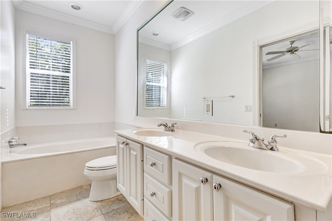 This resort-style community offers outstanding amenities designed for comfort, convenience, and an active lifestyle. Enjoy two sparkling pools, tennis courts, and newly added pickle-ball courts. Stay fit in the fully equipped fitness center, or unwind at the bocce courts. Additional on-site conveniences include a restaurant, gas station, and more! This beautiful home features a spacious master suite on the first floor, complete with its own private porch. Upstairs, you’ll find two additional bedrooms, each with its own en-suite bathroom, providing privacy and comfort for guests or family. A charming courtyard separates the home from the two-car garage, adding a touch of outdoor living space perfect for relaxing or entertaining. Located just a short drive from Naples and the stunning beaches of Lee and Collier Counties, Villagewalk of Bonita blends the best of Florida living in one vibrant community. Live where others vacation! Whether you're looking for a seasonal retreat or a year-round residence, this home offers the perfect blend of luxury, convenience, and Florida charm.