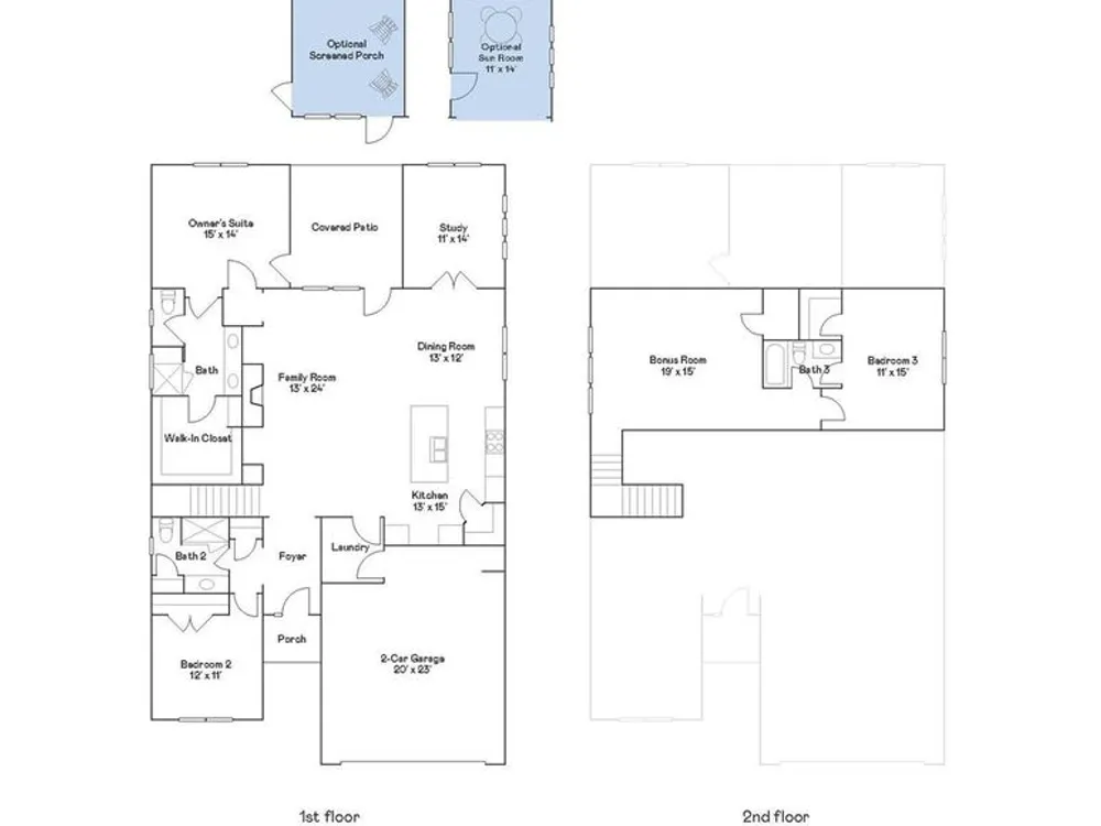 The Beacon is a two-story home design that combines comfort and convenience. The first floor features an open-plan layout among the family room, dining room and gourmet kitchen, plus a study, sunroom and a covered back patio. The owner’s suite and a secondary bedroom are on far ends of this floor. The second floor offers a third bedroom and a versatile bonus room. Plus, our signature Everything's Included program means you will get a gourmet kitchen with double ovens and cooktop, quartz or granite kitchen countertops, subway tile backsplash, ceramic tile, luxury vinyl plank flooring throughout the home, and a gas fireplace (per plan). Roselyn is a master-planned community offering exclusive ranch homes designed for active adults.