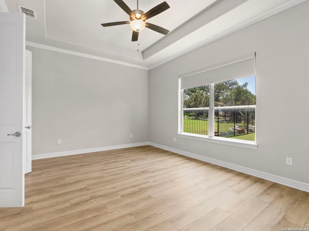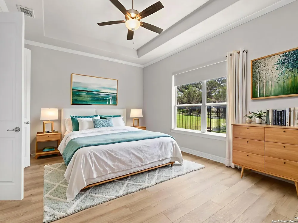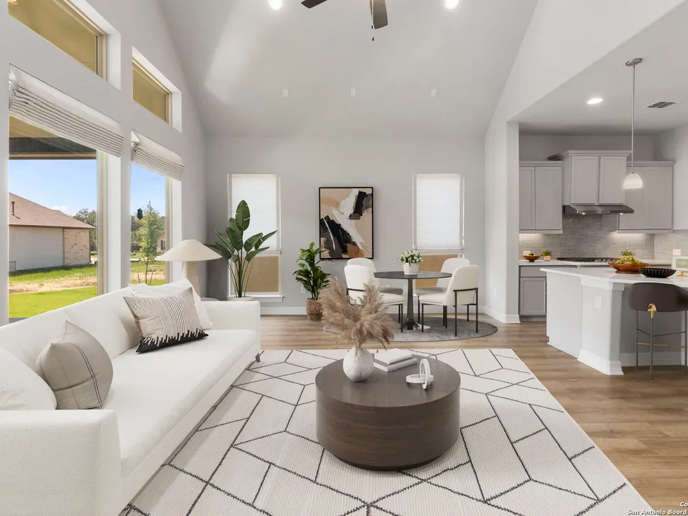 Welcome to this beautifully appointed 1.5-story home in the gated community of Willis Ranch. This 2,286 sq ft home features luxury touches throughout, custom interior window treatments, and an open-concept layout ideal for both daily living and entertaining. The Roma floor plan is coveted for its abundant natural light and soaring ceilings, and an upstairs bonus room with a full bath. Think game room, office, gym, hobby room, 4th bedroom - you decide. The spacious primary suite includes a spa-inspired ensuite bath, walk-in shower with dual heads, and a generously sized closet, offering ample storage. The community provides a low-maintenance, high-comfort lifestyle, a resort-style pool, trails, and green spaces. Located within the highly rated Comal ISD and just minutes from the conveniences of Stone Oak, you'll find H-E-B Plus, restaurants, and shopping a short drive away. Nearby recreation includes Panther Springs Park, Bulverde Community Park, and the trails at Stone Oak Park. With quick access to Hwy 281 and Loop 1604, commuting is convenient while still enjoying the peaceful feel of the Texas Hill Country. This is luxury, privacy, and convenience all in one.