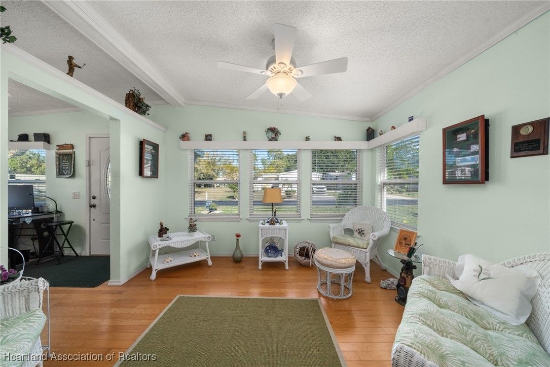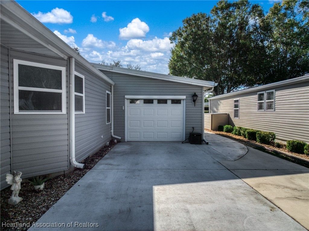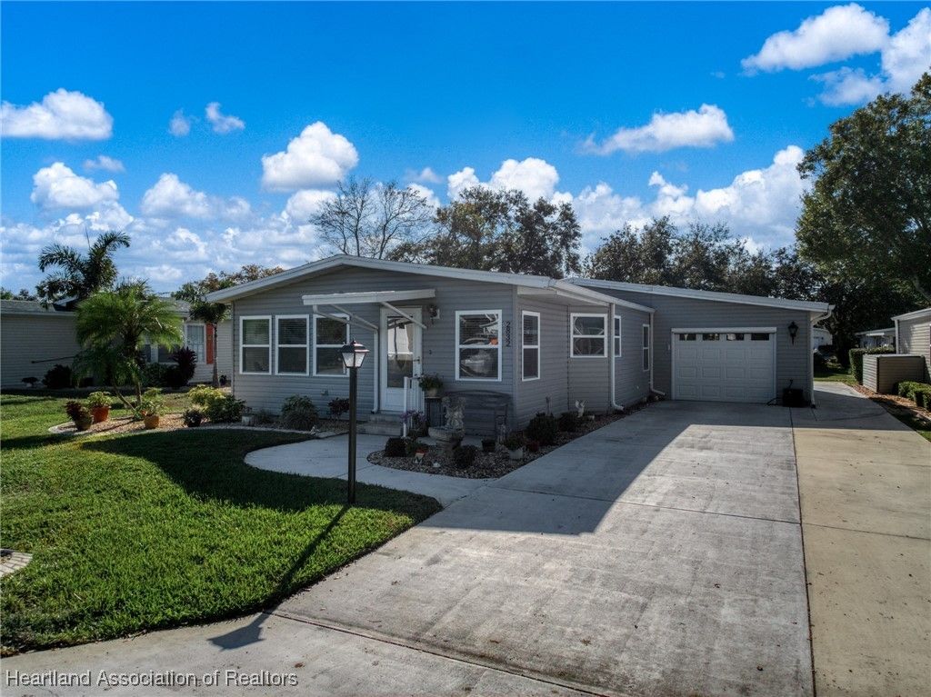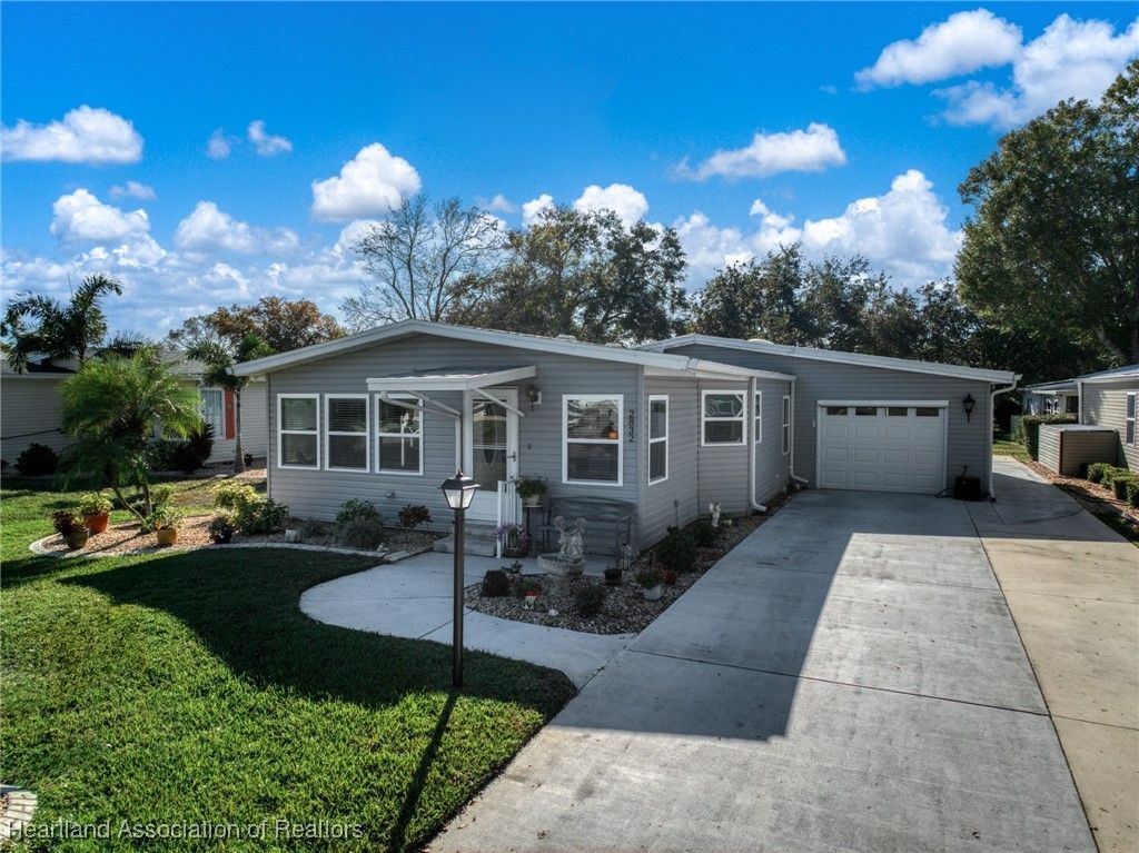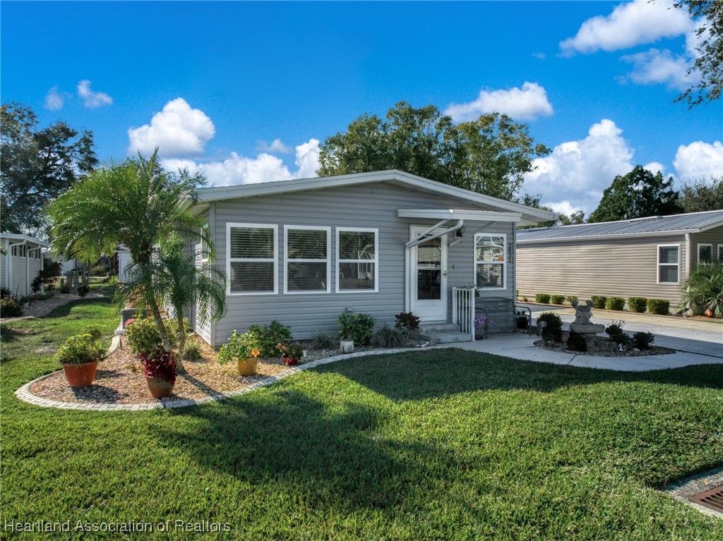 Welcome to this beautifully updated 2-bedroom, 2-bath mobile home located in the desirable Marina Cove at Highlands Ridge, an active 55+ community nestled along beautiful Bonnet Lake and home to two 18-hole championship golf courses.. Thoughtfully renovated throughout, this home offers comfort, style, and peace of mind with many recent upgrades already completed. The remodeled kitchen features granite countertops, new appliances, and ample cabinetry, opening to inviting living and dining spaces. New flooring—a tasteful mix of wood, carpet, and tile—adds warmth and durability throughout the home. Additional flexible spaces include a private office and den, perfect for working from home, hobbies, or hosting guests. Major improvements include a new roof and A/C (2021), new siding (2024), new windows, and updated plumbing, making this home truly move-in ready. The property is partially furnished and complemented by nicely landscaped outdoor areas, ideal for enjoying Florida living. Additional highlights include a golf cart entrance and an attached one-car garage for convenient parking and storage. Located in a well-maintained community close to golf, lakes, and local amenities, this home offers an excellent opportunity for full-time living or seasonal enjoyment.
