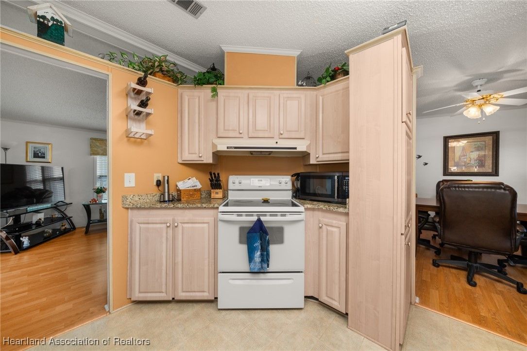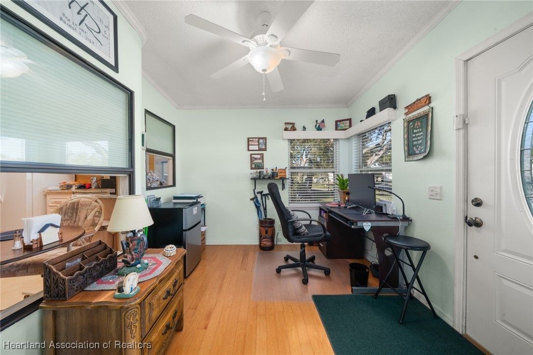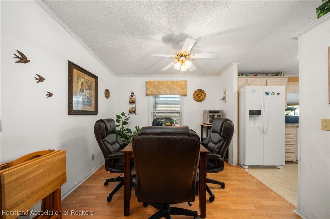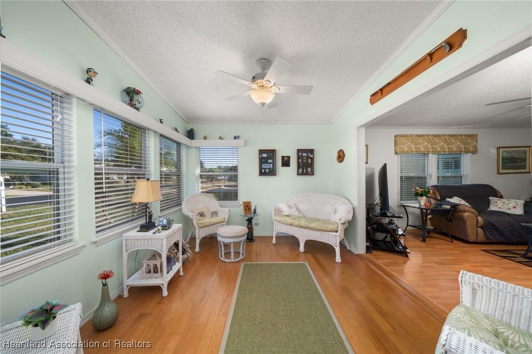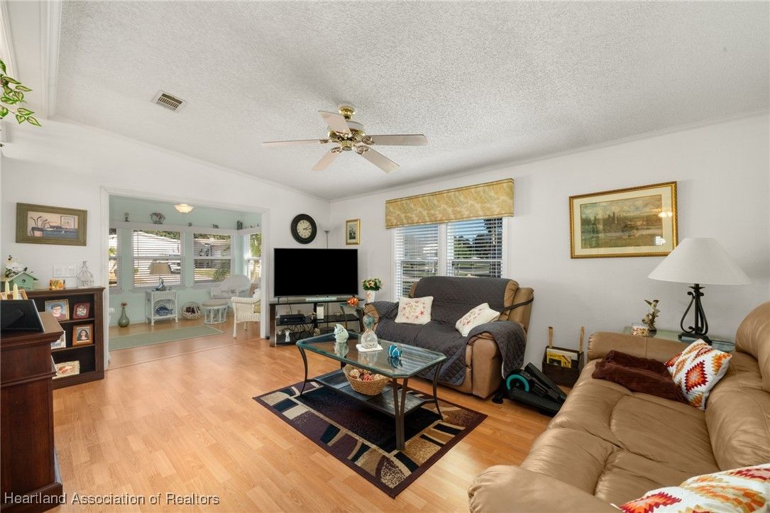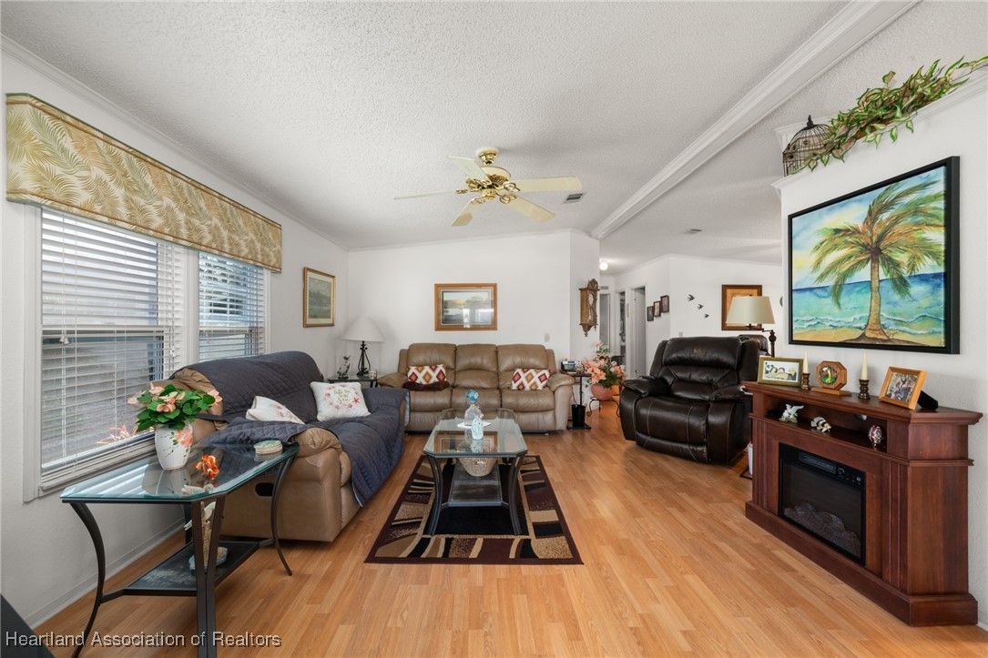 Welcome to this beautifully updated 2-bedroom, 2-bath mobile home located in the desirable Marina Cove at Highlands Ridge, an active 55+ community nestled along beautiful Bonnet Lake and home to two 18-hole championship golf courses.. Thoughtfully renovated throughout, this home offers comfort, style, and peace of mind with many recent upgrades already completed. The remodeled kitchen features granite countertops, new appliances, and ample cabinetry, opening to inviting living and dining spaces. New flooring—a tasteful mix of wood, carpet, and tile—adds warmth and durability throughout the home. Additional flexible spaces include a private office and den, perfect for working from home, hobbies, or hosting guests. Major improvements include a new roof and A/C (2021), new siding (2024), new windows, and updated plumbing, making this home truly move-in ready. The property is partially furnished and complemented by nicely landscaped outdoor areas, ideal for enjoying Florida living. Additional highlights include a golf cart entrance and an attached one-car garage for convenient parking and storage. Located in a well-maintained community close to golf, lakes, and local amenities, this home offers an excellent opportunity for full-time living or seasonal enjoyment.