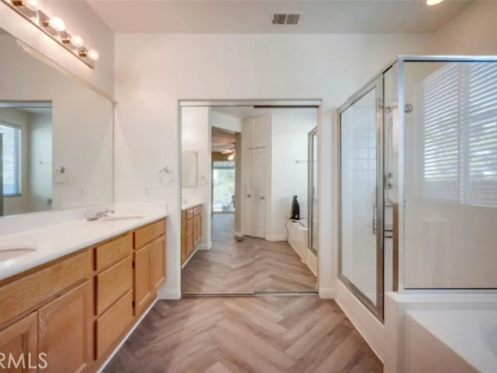 Wake up to sunshine, strolls by the fairway, and a community designed for relaxation and connection. This beautifully refreshed single-story home offers 3 bedrooms and 2.5 bathrooms in a light-filled, open layout. Step inside to discover brand-new luxury vinyl wood tile flooring, fresh interior and exterior paint, and a thoughtfully upgraded guest bathroom sink. The spacious kitchen with abundant cabinetry and a large breakfast bar opens seamlessly to the living and dining areas, creating the perfect setting for both relaxation and entertaining. The primary suite is a private retreat, featuring a spa-like bathroom with dual sinks, a soaking tub, and a walk-in shower. Located NEXT TO THE RANCHO DEL SOL GOLF CLUB, this GATED COMMUNITY offers RESORT-STYLE AMENITIES, including a CLUBHOUSE FOR EVENTS, BBQ GRILLS, A SPARKLING POOL, AND PICKLEBALL COURTS. Outside, enjoy a low-maintenance backyard designed for peaceful mornings or evening gatherings. Experience privacy, comfort, and the vibrant lifestyle this 55+ community is known for.