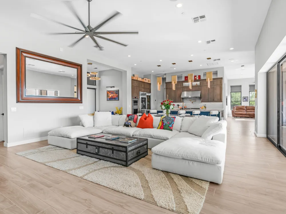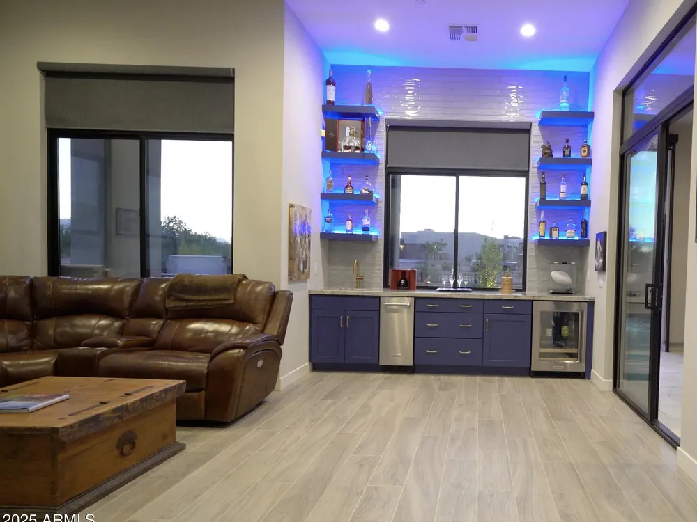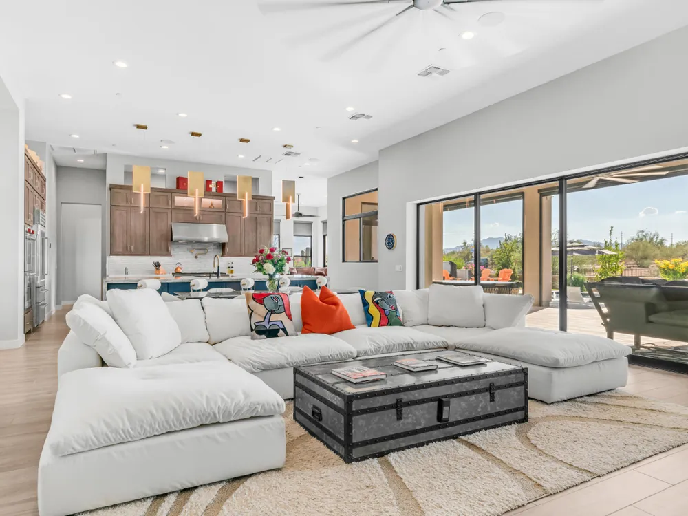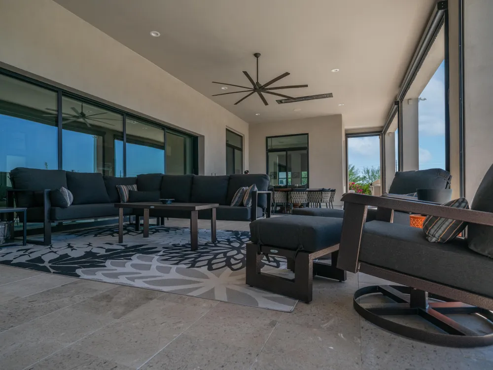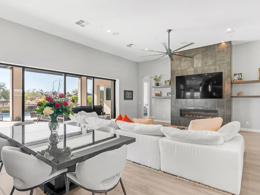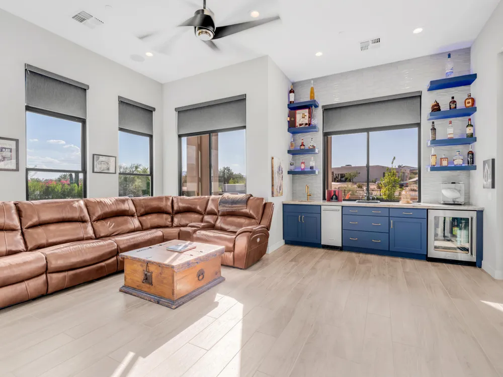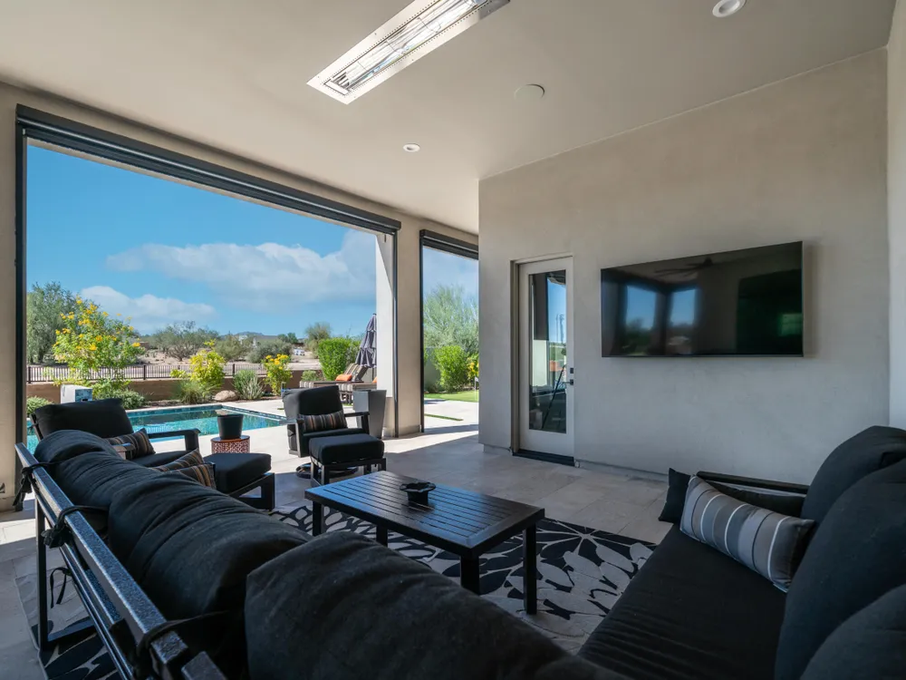 Welcome to a home where luxury, comfort, and smart design come together in perfect harmony. Nestled in the exclusive Verde River Golf & Social Club, this meticulously upgraded residence offers an elevated lifestyle both inside and out. Every detail has been thoughtfully curated—from refined finishes and high-end appliances to seamless indoor-outdoor living spaces designed for entertaining, relaxation, and privacy. Whether you're enjoying quiet mornings with mountain views, hosting under the stars, or taking full advantage of the world-class amenities just steps away, this home offers the perfect balance of elegance and ease. With city water, three on-site community restaurants, and a convenient marketplace, every comfort is within reach. Combined with resort-style living at your doorstep. Property Highlights Spacious Upgrades: Extended bonus room and extended patio for flexible living and entertaining. Designer Finishes: LVP throughout, herringbone wood flooring in the primary, waterfall kitchen island, soft-close cabinetry, and floating shelves in both the butler's pantry and great room. Luxury Kitchen: Wolf appliances, pot filler, Navien water purifier, tankless water heater, and abundant storage. Modern Comforts: Adjustable LED lighting, dimmers in most rooms, surround sound in common areas and patio, and motorized indoor blackout shades plus motorized outdoor shades for a screened-in patio feel. Energy Efficiency & Privacy: Double-insulated roof for temperate attics, upgraded AC unit, fogged front door windows (on/off privacy), and wall safe in the primary. Spa-Inspired Primary Suite: Rain shower and custom finishes designed for ultimate relaxation. Outdoor Living & Entertainment: 2,000+ sq. ft. of limestone hardscaping 15'x45' Pebble Sheen pool with ceiling-mounted patio heaters Oversized putting green, bocce ball court, and 5-person spa with hard cover Golf Lifestyle: $85K golf membership included, plus a golf cart (under 2 years old, compliant with all course requirements). Trilogy at Verde River Community Amenities Living here means more than just the homeit's a full resort lifestyle: Championship Golf Course designed by Tom Lehman Resort-Style Clubhouse with fine dining, café, and event spaces Alvea Spa & Wellness Center offering massage, skincare, and holistic therapies State-of-the-Art Fitness Center with classes, training, and equipment Pickleball, Tennis, and Bocce Ball Courts Resort Pool & Lap Pool with cabanas and lounging areas Trail System & Outdoor Adventures with access to Tonto National Forest Social Clubs, Arts & Crafts Studios, and Community Events that connect neighbors and nurture passions This home is a rare blend of custom luxury, smart functionality, and the unparalleled amenities of Trilogy at Verde Rivera true desert resort retreat.