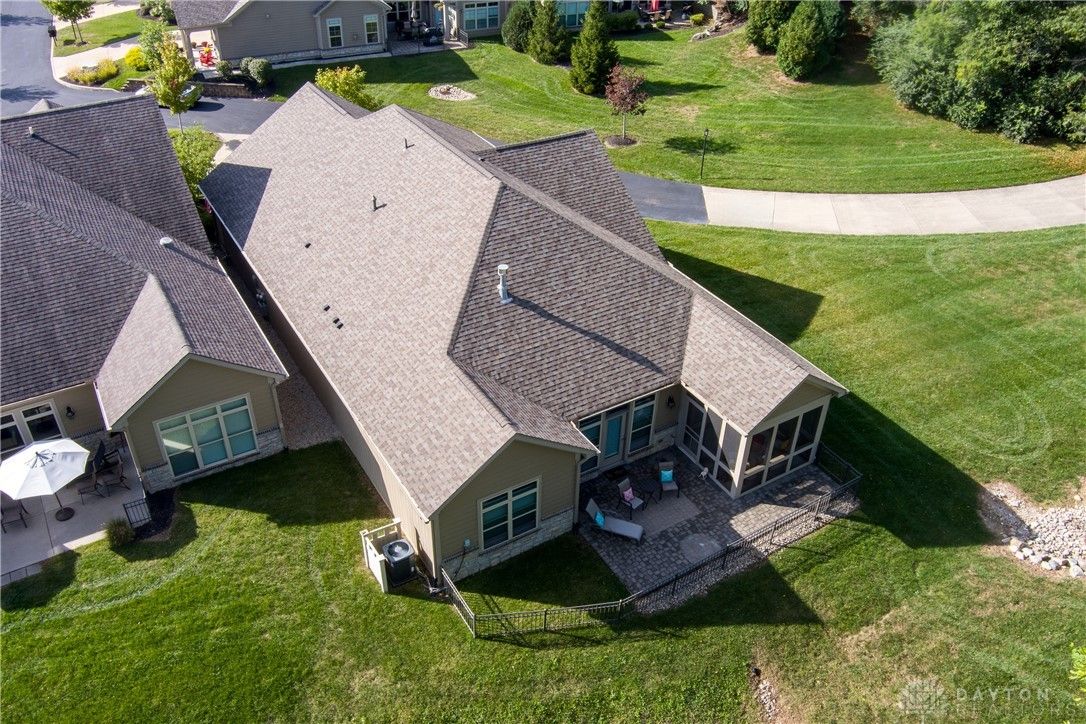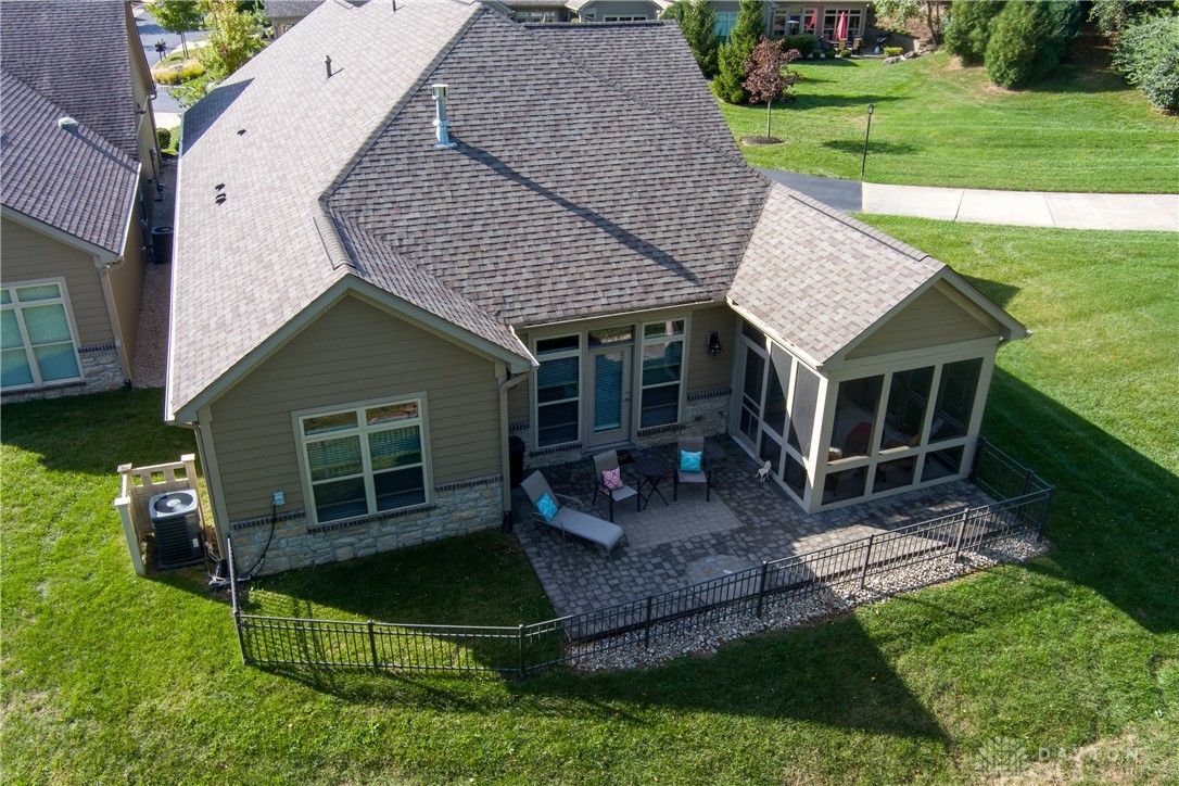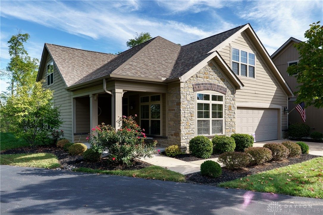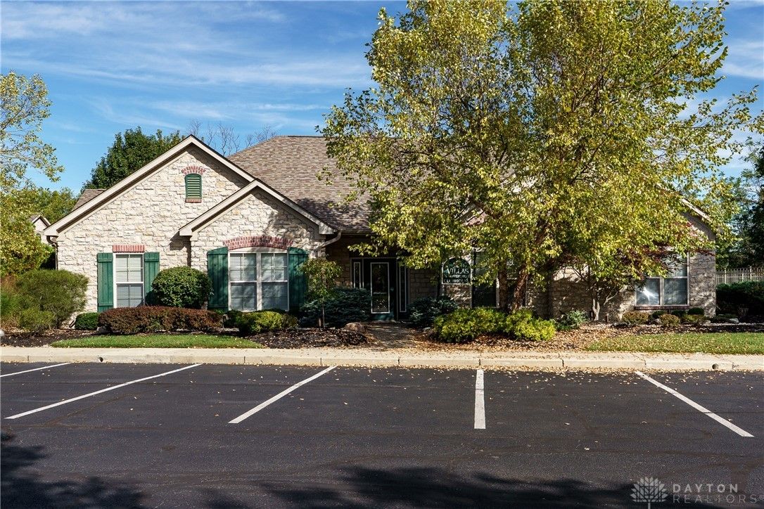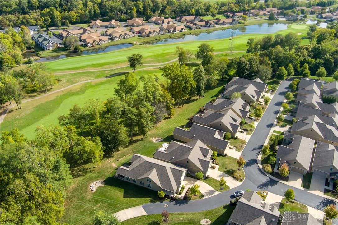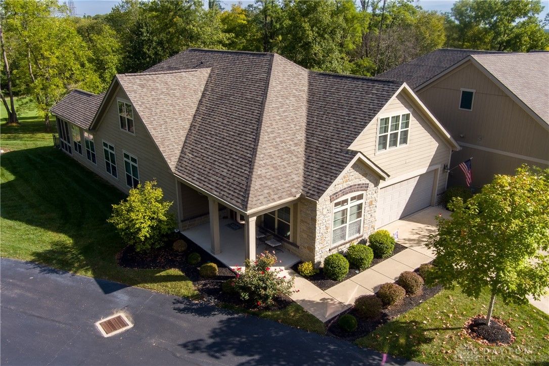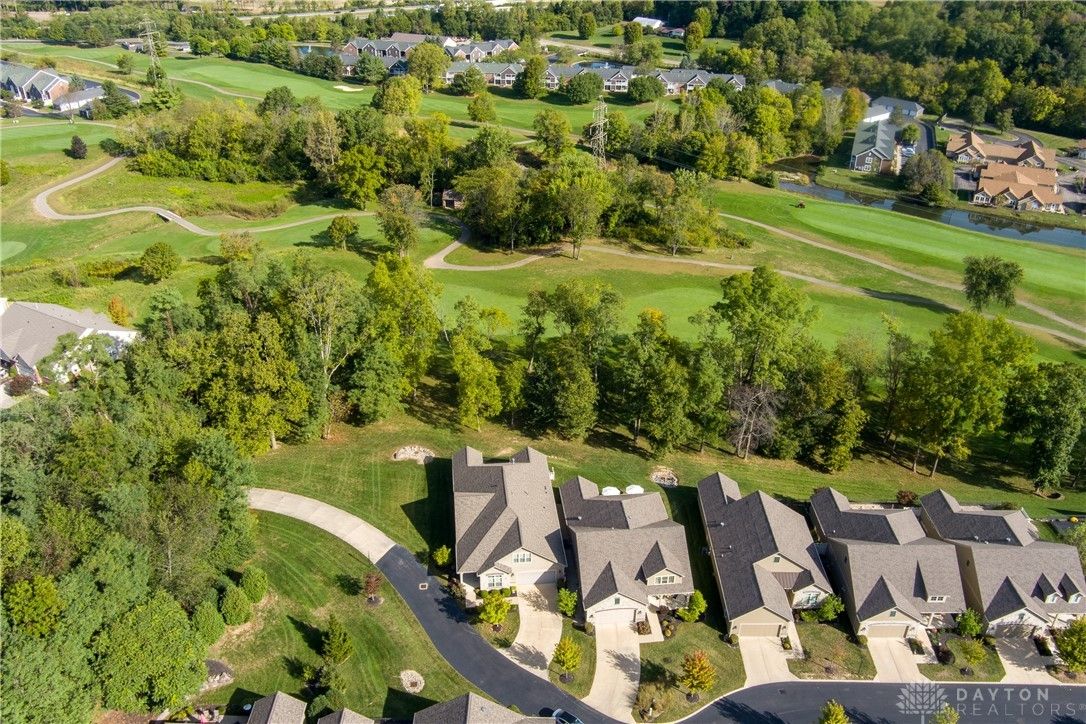 One of a kind view! This custom built condo sits high above the 16th hole of the Beavercreek Golf Course. Shaded by trees, you can enjoy the view from the screened in patio or open terrace. Situated next to a walking path, evening strolls will be a pleasure. Inside you will find an inviting entry, perfect study with tall windows for lots of light. A guest bedroom, full guest bath and laundry are also on the first floor. The kitchen, dining area and great room are one open space allowing for conversations, spacious room arrangements and outstanding winter views of the outdoors. Kitchen counters are granite. Fireplace is gas. The primary bedroom is on the first floor with two walk in closets, full bath and its own private view of the hillside. There is a second floor finished into a loft style sitting room and a third bedroom with its own full bath. An ideal space for over night visitors or a private quarters for a family member or care taker. The Villas HOA offers a beautiful clubhouse, pool and work out room. Water and trash are included in the condo fee as well as hazard insurance, lawn care and snow removal. 2833 Hackberry Lane is an easy commute to Wright-Patt AFB, Wright State University, Soin Medical Center and I-675 . This unique condo is well designed and sits in a spectacular setting offering a great place to live and a quiet retreat.
