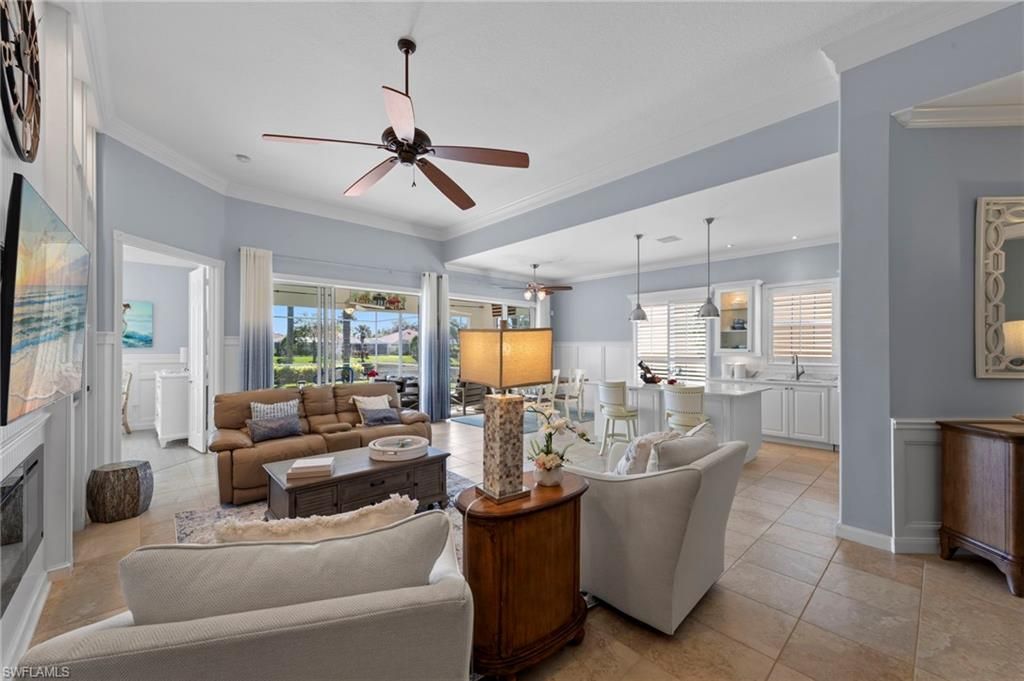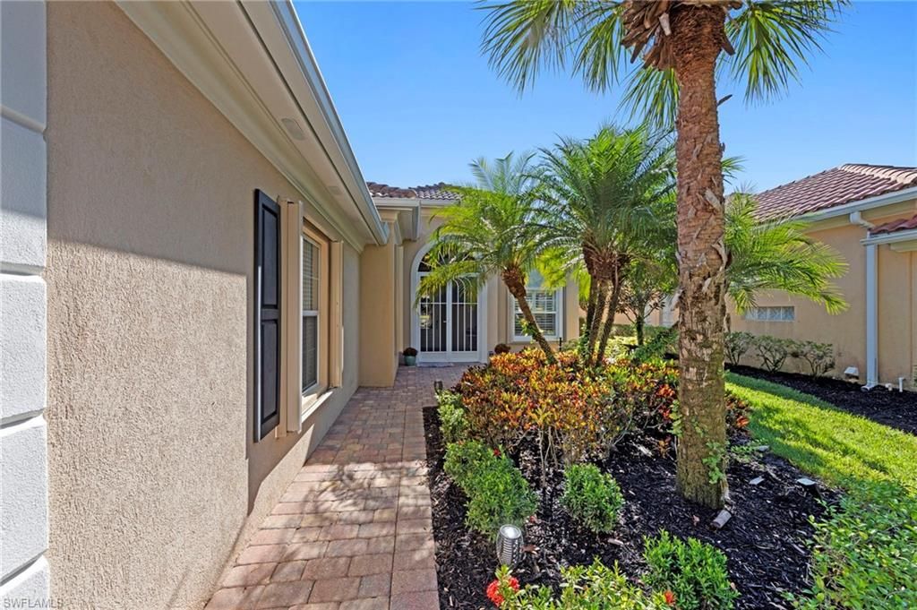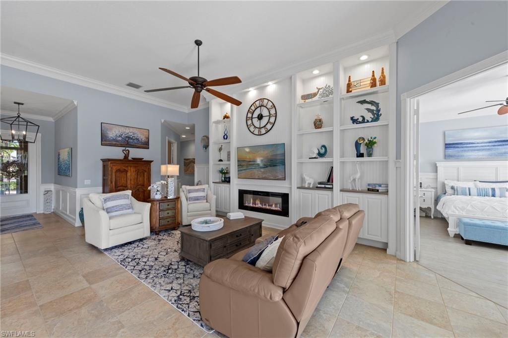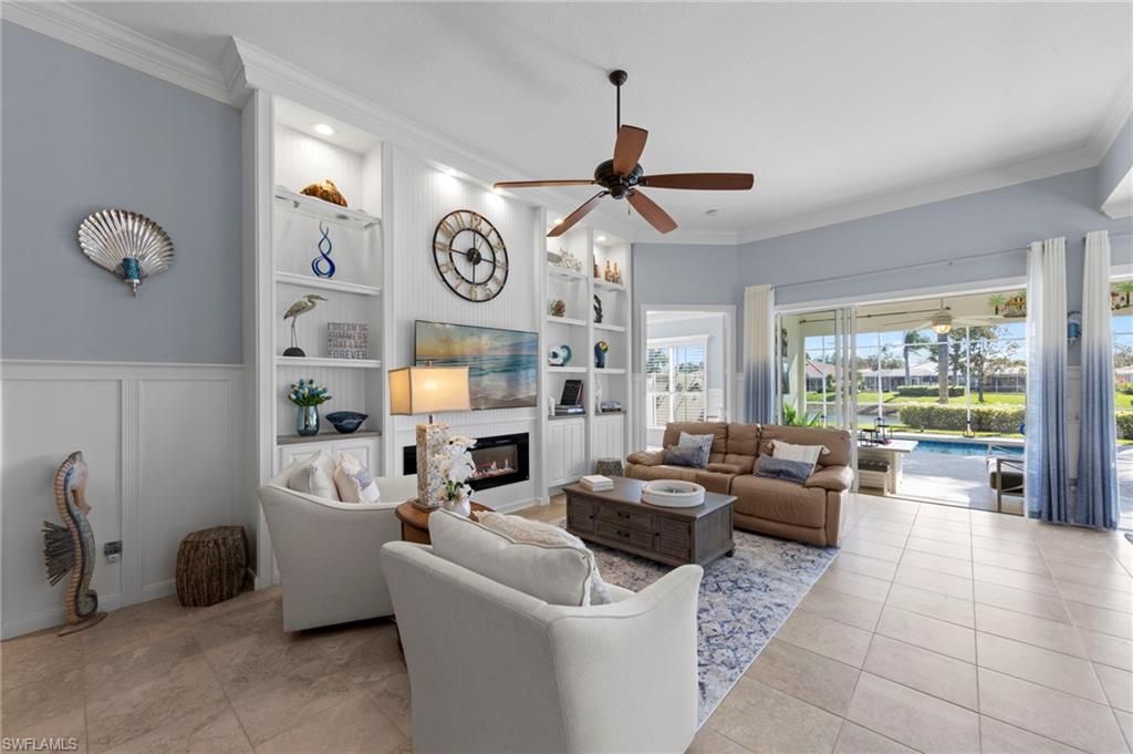 This is the home you’ve been waiting for. Combining quality upgrades, a prime setting, and outstanding amenities, this home represents one of the most compelling opportunities in the community. Perfectly positioned on a premium, east-facing lot, this exceptional Oakmont offers a private pool, a serene backyard setting, and sweeping water views. Three Bedrooms plus a den, furnished, From the spacious covered lanai enjoy a beautiful sunrise over morning coffee or afternoon cocktails around the fire pit wrapping up another glorious day. Thoughtfully maintained and lightly used, the home features a NEW ROOF and BRAND NEW AIR CONDITIONER, along with upgraded easy finger touch hurricane shutters & power hurricane curtains to quickly seal up your home. The interior has been tastefully updated with newer fans and lighting, $70,000 custom woodwork in every room, plantation shutters, and a striking custom wall cabinet with fireplace. The beautifully remodeled kitchen is a standout, featuring quartz countertops, quality cabinetry, upgraded appliances, and an oversized custom island ideal for gatherings. renovated guest bathroom adds to the home’s move-in-ready appeal. Designed for comfort and versatility, the expanded great room and open floor plan fill the home with natural light throughout the day. The layout includes three bedrooms plus a den, offering flexible space for a home office or guests. Select quality furnishings may be negotiable. Located in the highly sought-after community of Village Walk, residents enjoy resort-style amenities including multiple pools, a fitness center, bocce, pickleball, tennis, two on-site restaurants, a gas station, car wash, and miles of scenic walking paths. Cable, internet, and fiber optics are included in the HOA fees. Open House Sunday 12-28th come see for yourself.