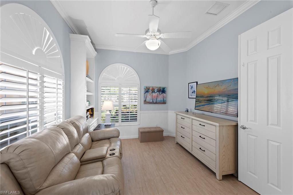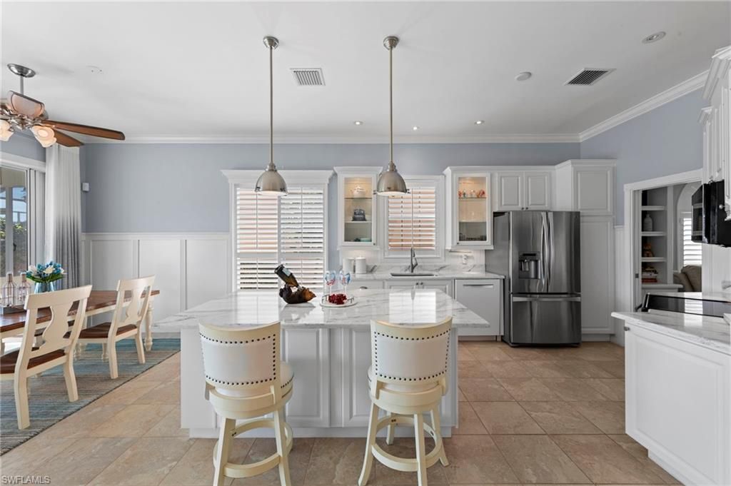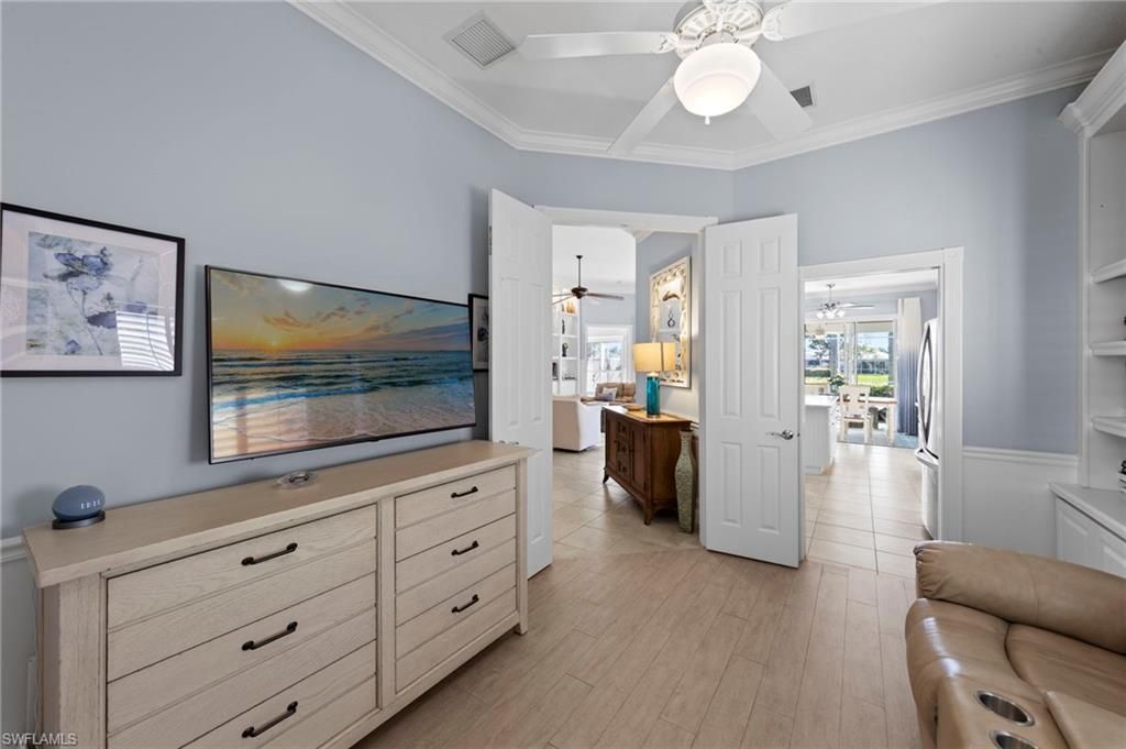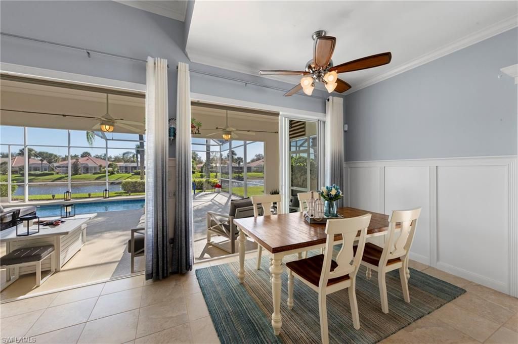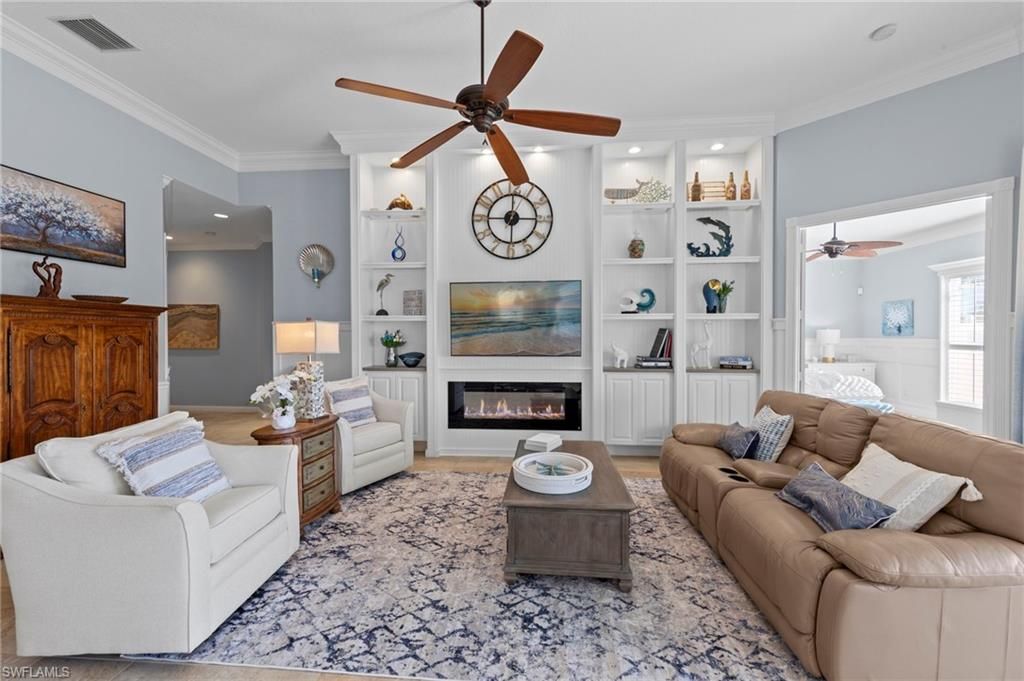 This is the home you’ve been waiting for. Combining quality upgrades, a prime setting, and outstanding amenities, this home represents one of the most compelling opportunities in the community. Perfectly positioned on a premium, east-facing lot, this exceptional Oakmont offers a private pool, a serene backyard setting, and sweeping water views. Three Bedrooms plus a den, furnished, From the spacious covered lanai enjoy a beautiful sunrise over morning coffee or afternoon cocktails around the fire pit wrapping up another glorious day. Thoughtfully maintained and lightly used, the home features a NEW ROOF and BRAND NEW AIR CONDITIONER, along with upgraded easy finger touch hurricane shutters & power hurricane curtains to quickly seal up your home. The interior has been tastefully updated with newer fans and lighting, $70,000 custom woodwork in every room, plantation shutters, and a striking custom wall cabinet with fireplace. The beautifully remodeled kitchen is a standout, featuring quartz countertops, quality cabinetry, upgraded appliances, and an oversized custom island ideal for gatherings. renovated guest bathroom adds to the home’s move-in-ready appeal. Designed for comfort and versatility, the expanded great room and open floor plan fill the home with natural light throughout the day. The layout includes three bedrooms plus a den, offering flexible space for a home office or guests. Select quality furnishings may be negotiable. Located in the highly sought-after community of Village Walk, residents enjoy resort-style amenities including multiple pools, a fitness center, bocce, pickleball, tennis, two on-site restaurants, a gas station, car wash, and miles of scenic walking paths. Cable, internet, and fiber optics are included in the HOA fees. Open House Sunday 12-28th come see for yourself.