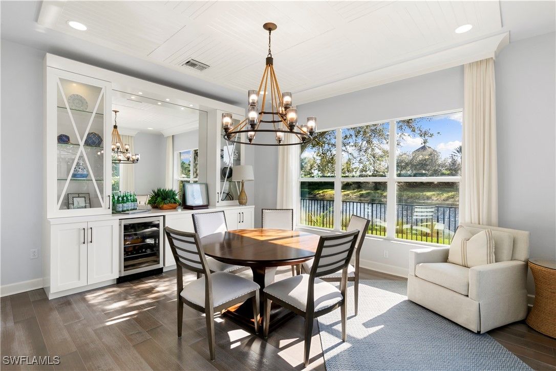 Prepare to be captivated by this fresh-to-market former Charleston Grande decorated model by GL Homes, an unparalleled opportunity to acquire a residence on Valencia Bonita’s most prestigious "model row", a turnkey piece of real estate that secured the esteemed Superior Home Award, and where brand-new quality meets design-forward living. Step into a space curated by professional designers, featuring furnishings so new that many still have their original tags—meaning you can enjoy the prestige and perfection of a decorated model from day one. The impressive layout features three bedrooms, a large bonus room/den, and an abundance of differentiated space, including a sitting room, formal living room, breakfast room, and formal dining room. Throughout this award-winning residence, discerning eyes will appreciate the superior craftsmanship, notably the detailed woodwork, including striking coffered ceilings, custom wainscoting, and accent walls that define the home's high-end aesthetic. The property’s ultimate private retreat awaits outdoors. The screened lanai hosts a desirable summer kitchen and a comfortable seating area, leading to an open lanai with a custom pool, sun shelf, and a coveted private backdrop overlooking a serene lake and lush landscaping—ensuring tranquil views and premium privacy. The master suite offers a sanctuary of convenience and quality, appointed with electric shades and custom closet systems. This is your chance to secure an architecturally significant, move-in-ready home that offers both the status of model row living and the absolute assurance of new-build excellence. Community Life: Exclusive Valencia Bonita Amenities Life at Valencia Bonita extends far beyond your beautiful residence and offers an extraordinary, directed 55+ lifestyle. Homeowners gain exclusive access to the state-of-the-art 45,000 sq. ft. Clubhouse, the epicenter of social activity. Enjoy exceptional dining with both indoor and outdoor options, notably featuring NO Food and Beverage minimum—a significant financial advantage! The vibrant social calendar is managed for you, offering over 50 active clubs to join, dedicated creative spaces like a cooking studio and pottery/art program, plus a comprehensive schedule of fitness classes. For the active resident, the racquets program is robust and acclaimed! With a dedicated pro shop, Valencia Bonita supports competitive traveling teams for tennis and pickleball, alongside programming for all skill levels, ensuring that whether you're seeking competition or "fun over winning," this community perfectly matches your active interests.