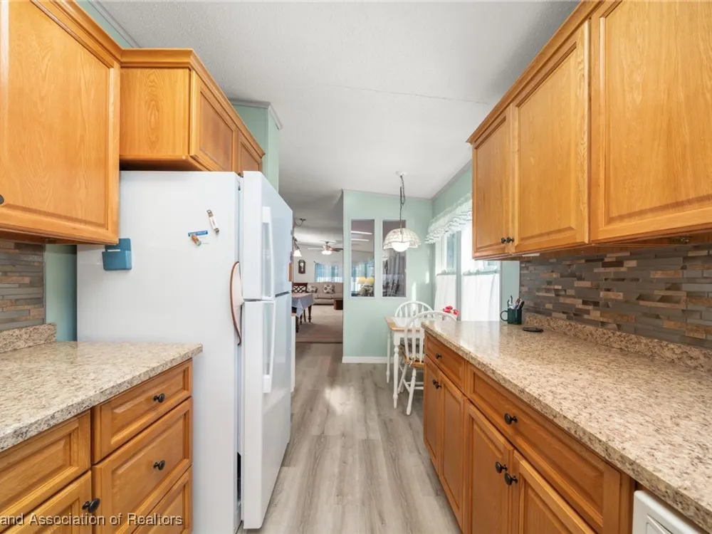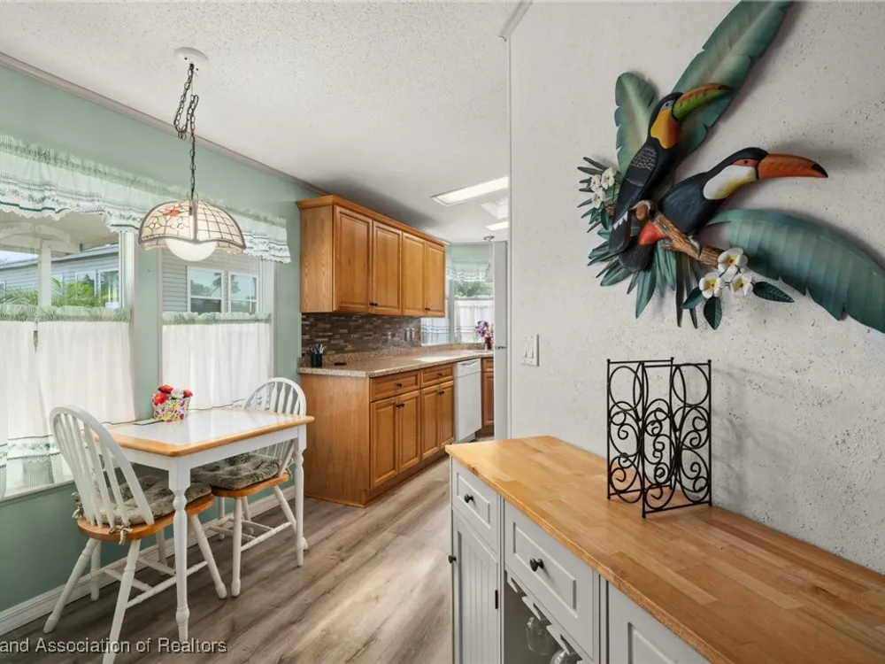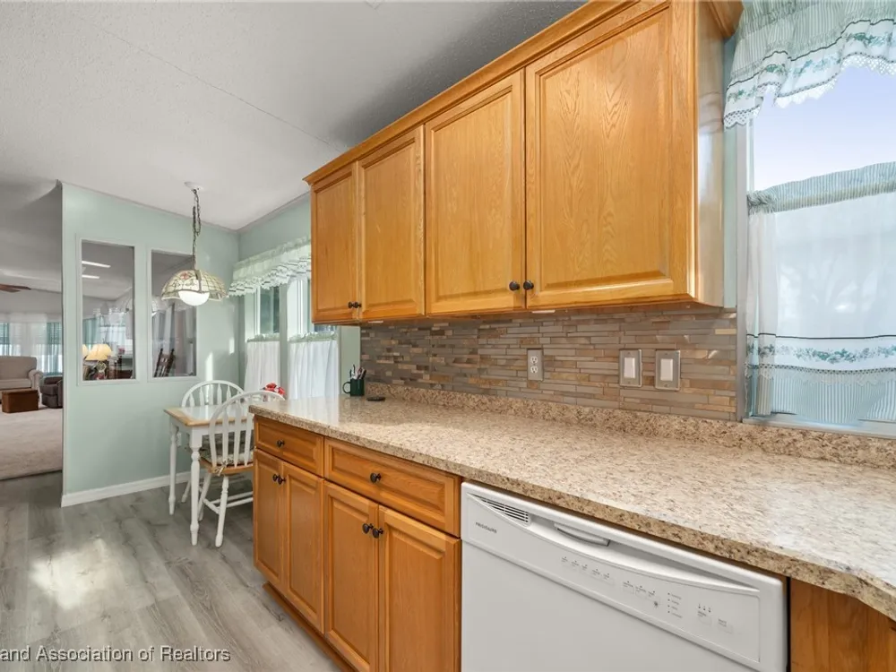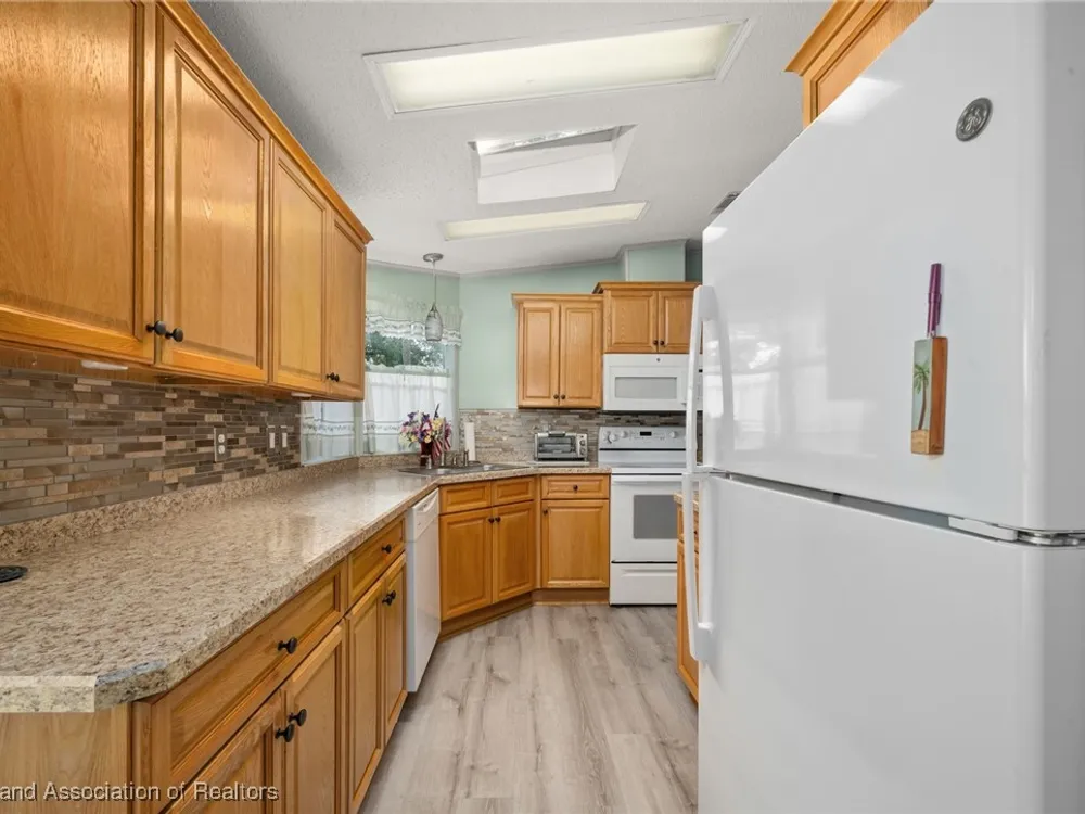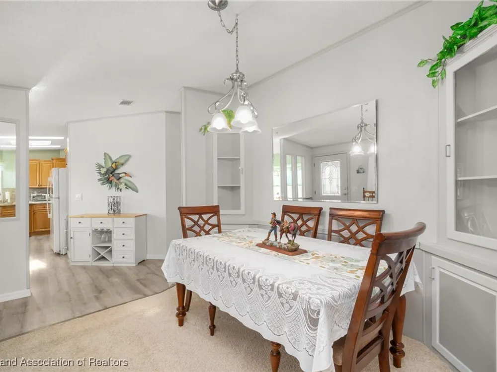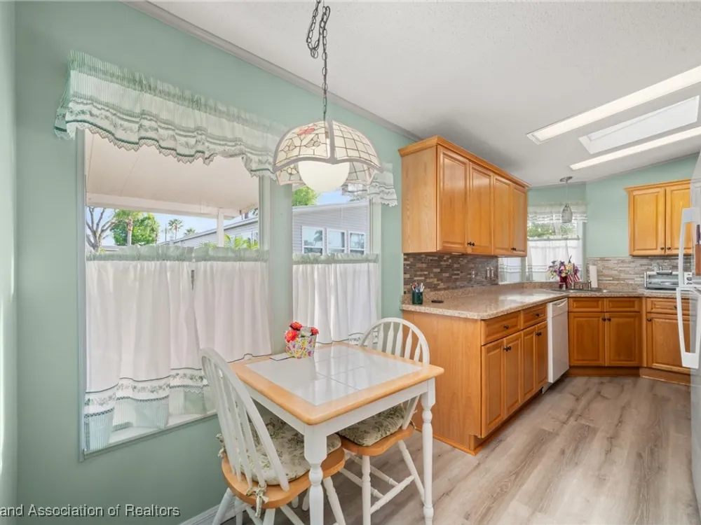Escape to tranquility at Highlands Ridge Marina Cove with this charming, fully furnished 2-bedroom, 2-bath mobile home! Built in 1994, this spacious 1200 sq ft residence offers comfortable living on rented land. Enjoy peace of mind with recent updates including a 2021 roof, 2019 AC, new plumbing, and fresh flooring in the kitchen and bathrooms. Gutter guards protect against debris, and the remodeled kitchen features updated cabinets and countertops from 2016. Both bathrooms have also been tastefully remodeled. For added convenience, a portable generator is included, and the attached 2-car garage provides ample storage. Don't miss this opportunity to embrace a relaxed lifestyle in a serene marina community!