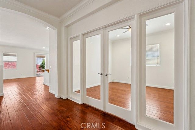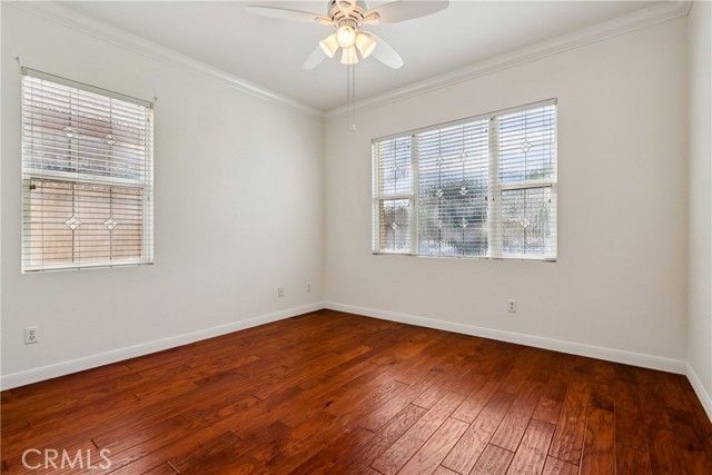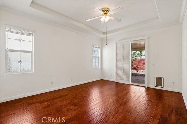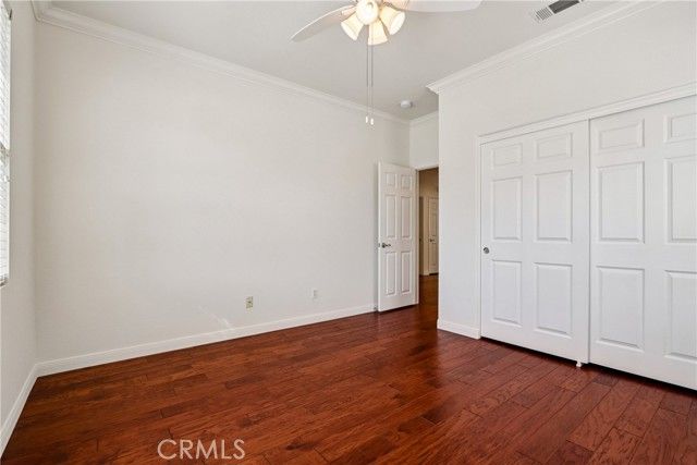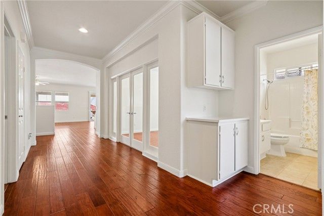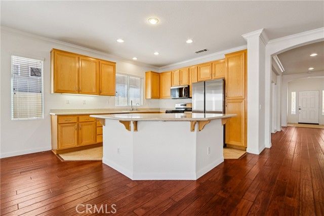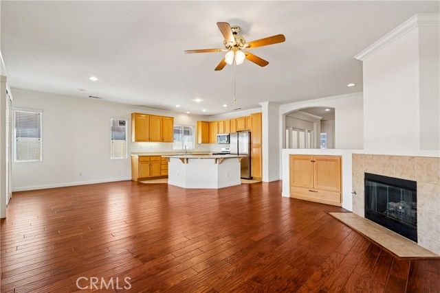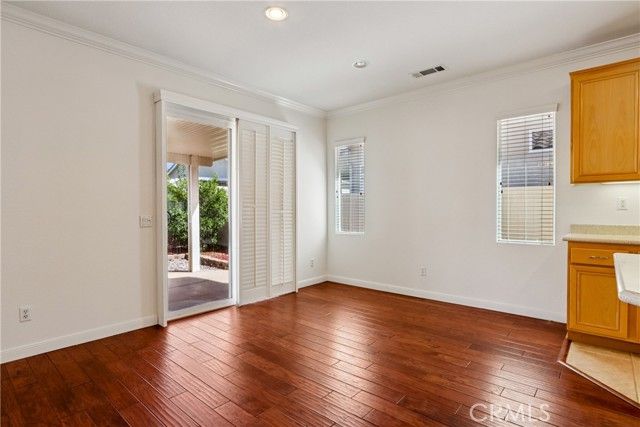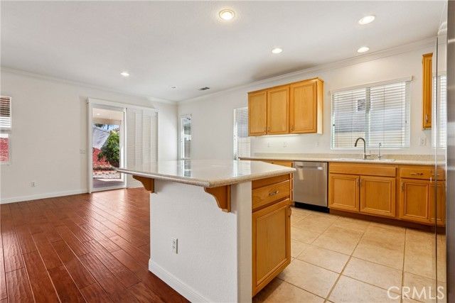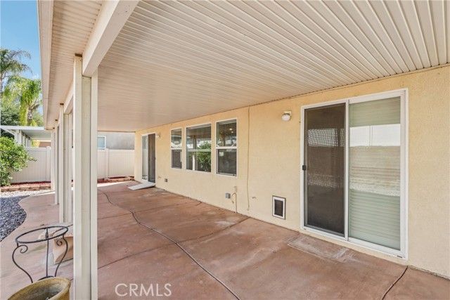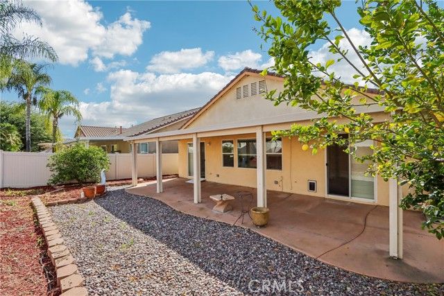 Welcome to resort-style living in the highly desirable Oasis 55+ community — where comfort, convenience, and low-maintenance living come together beautifully. This meticulously maintained home offers 2 bedrooms plus an optional 3rd bedroom with elegant French doors — perfect for a home office, den, hobby room, or guest space. With 2 full bathrooms, including a spacious primary bath with dual sinks and tub/shower combo, the layout is both functional and inviting. Step through the welcoming entry hallway into a light-filled great room with fireplace and built-in media niche, creating the perfect space to relax or entertain. The kitchen opens seamlessly to the dining area and features upgraded cabinetry, BRAND NEW stainless steel appliances, a large island, and light Corian countertops — ideal for gatherings or casual meals. Sliding doors lead to a covered patio, extending your living space outdoors. Throughout the home, you’ll find real scraped hickory hardwood floors, crown molding, plantation shutters, ceiling fans with remote controls in every room, and thoughtful custom touches that elevate the space. The spacious primary suite includes a walk-in closet and private patio access, while the secondary bedroom offers its own private bath — perfect for guests. Additional highlights include: Extra cabinetry in the laundry room; Oversized garage with custom built-in storage; Dedicated space for a golf cart; Beautifully maintained with high-end finishes. Enjoy the benefits of LOW taxes and NO Mello-Roos, plus HOA amenities that include front yard maintenance and trash service — making everyday living easy and stress-free. Located with convenient access to golf, lakes, walking trails, and community amenities, this is more than a home — it’s a lifestyle upgrade. Don’t miss this opportunity to live the good life in Oasis. This is truly not a drive-by — you must see it in person to appreciate all it offers.