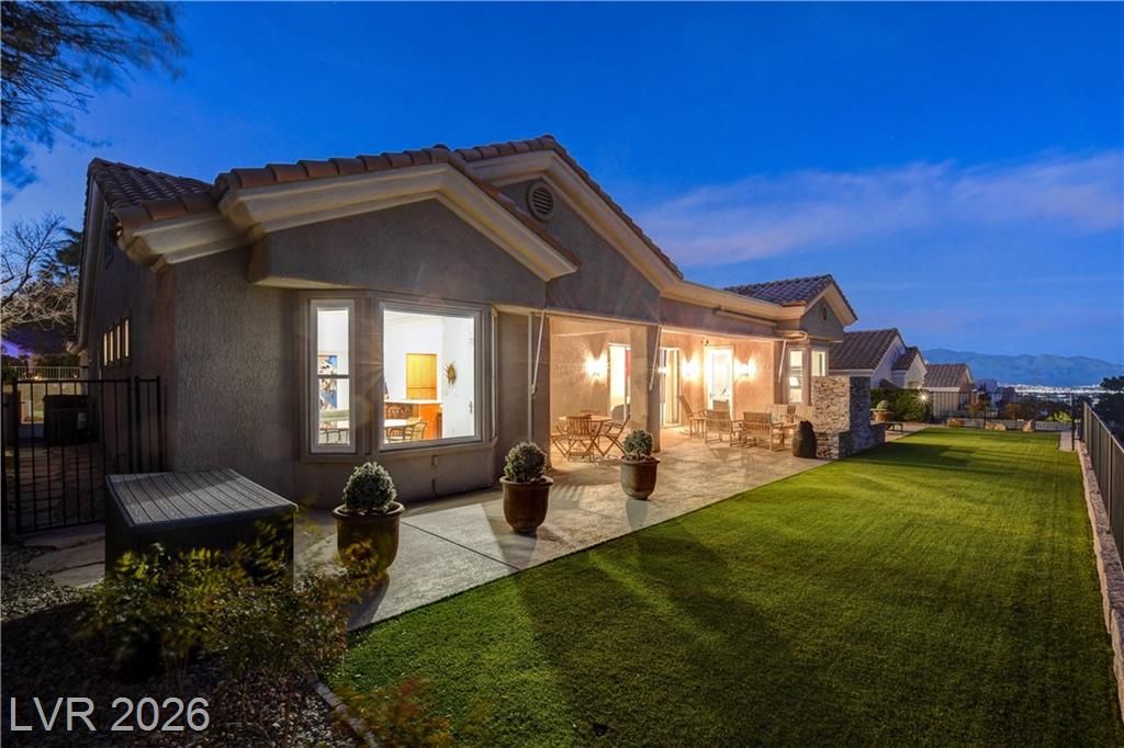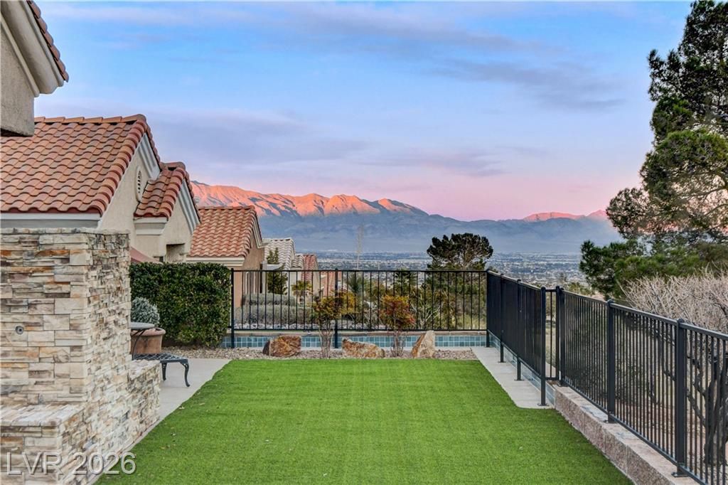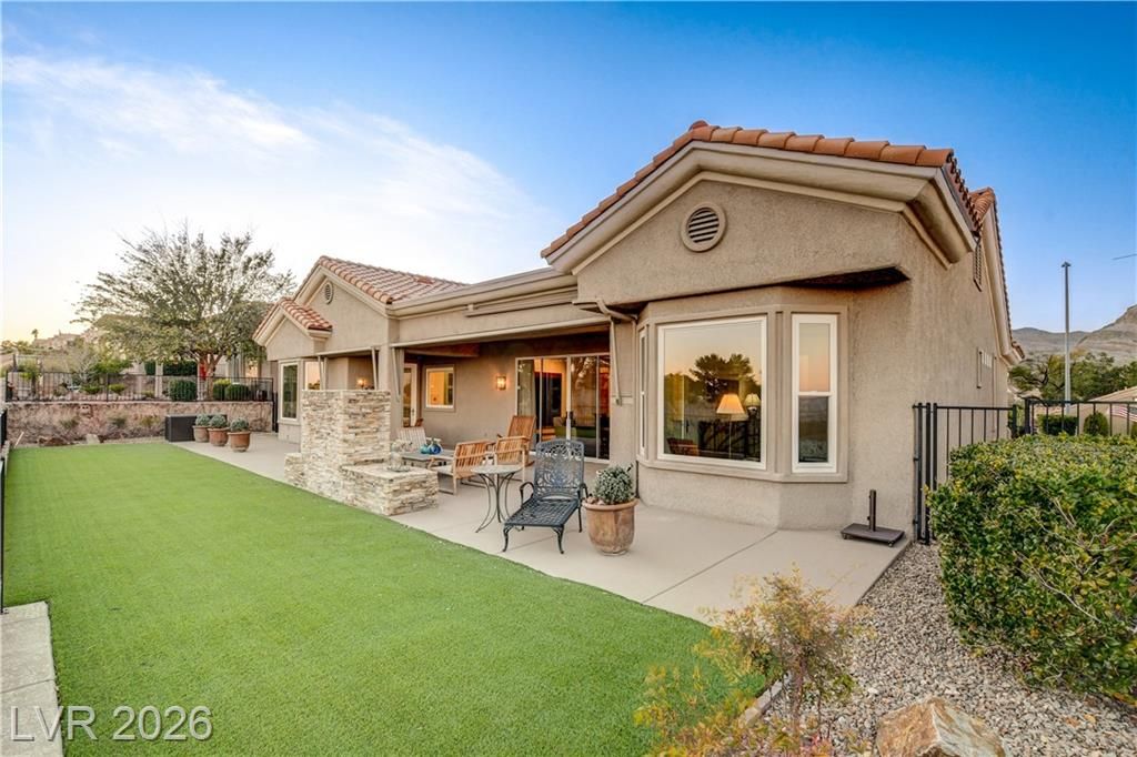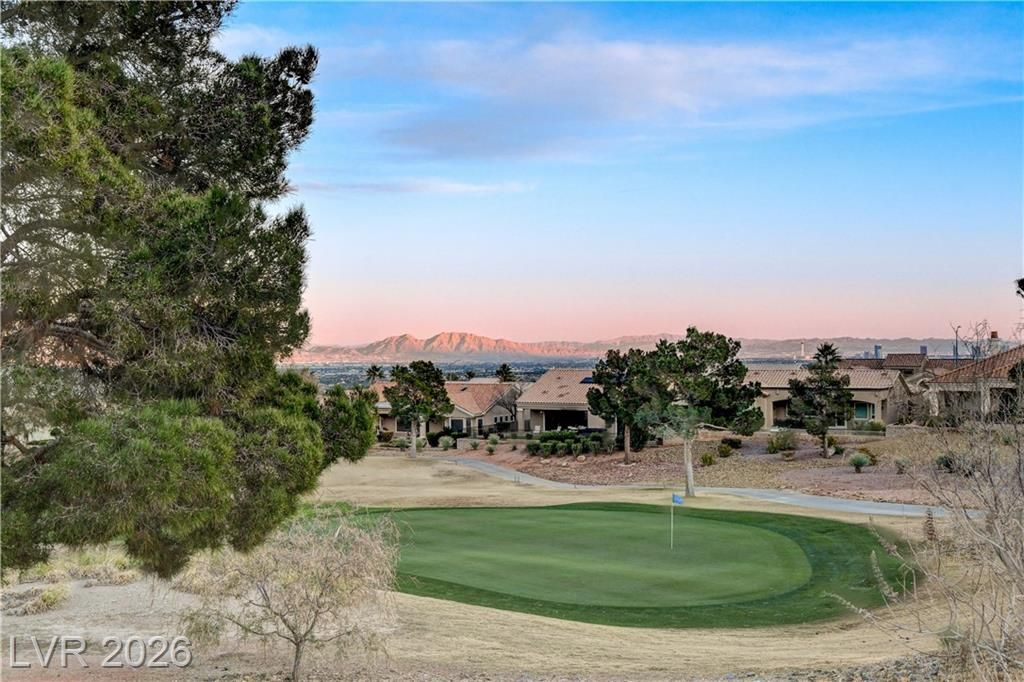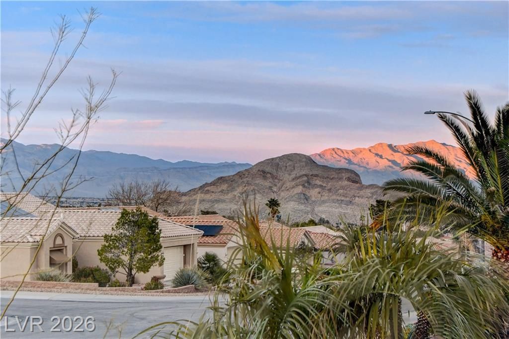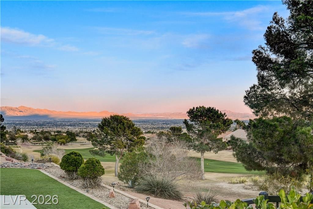 This exclusive home, located in one of the most desirable locations in Sun City Summerlin, offers beautiful views of the golf course & city to the east, and magnificent mountain views to the north & west. It is a unique, single-story customized home designed by a prominent Chicago architect/owner, who made significant enhancements during construction, including adding 600 SF to the family room & extending the ceiling feature to the newly styled & impressive entryway. Over the past 28 years, the current owners have been the only ones to inhabit the home & they have continued to make improvements. Notable features include stunning ceramic floors throughout, building a custom-designed office with bookshelves in the 3rd bedroom, and a fireplace in the backyard. The home has been impeccably maintained, resulting in a truly stunning property as showcased in the photos. Don't miss your chance to see this desirable home—schedule your appointment today, as it will not stay on the market long!