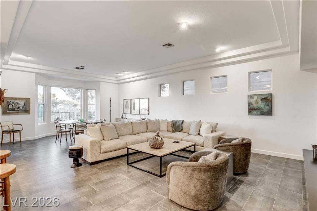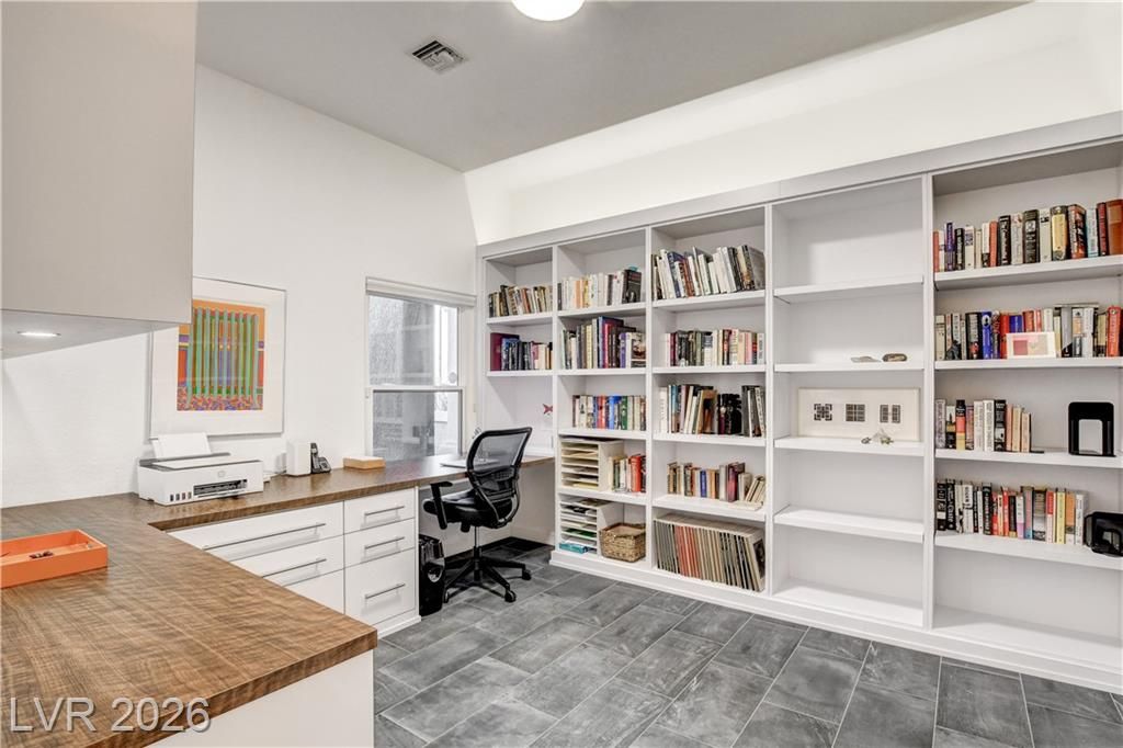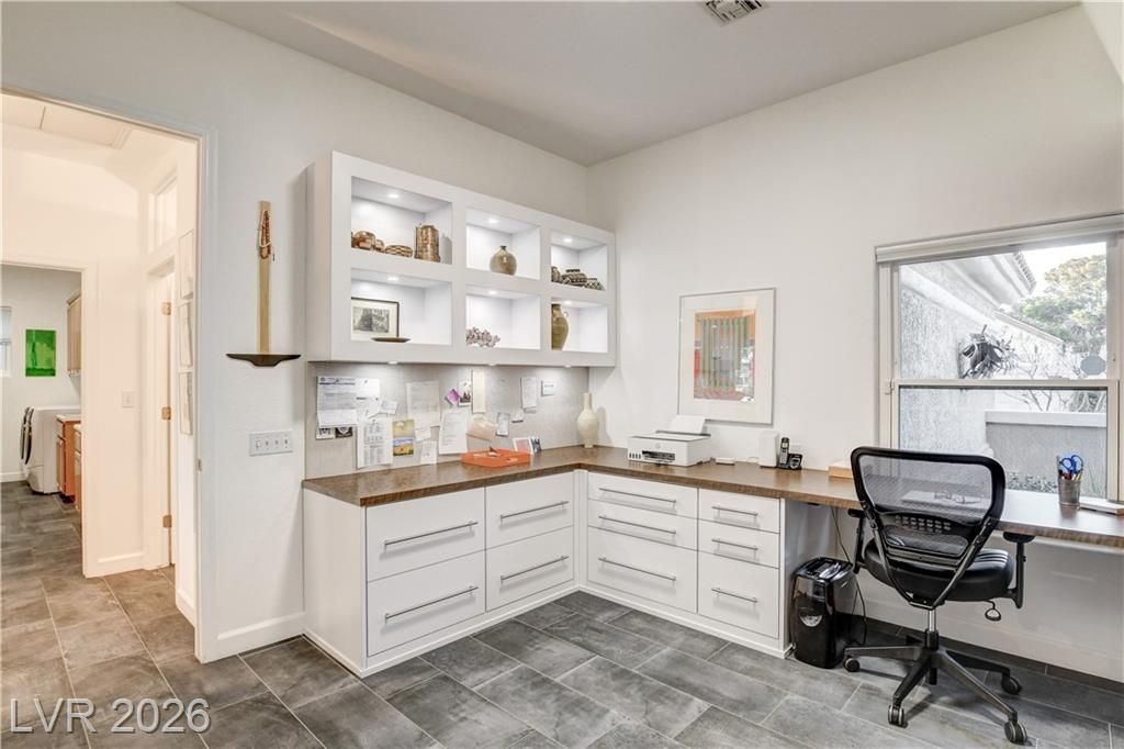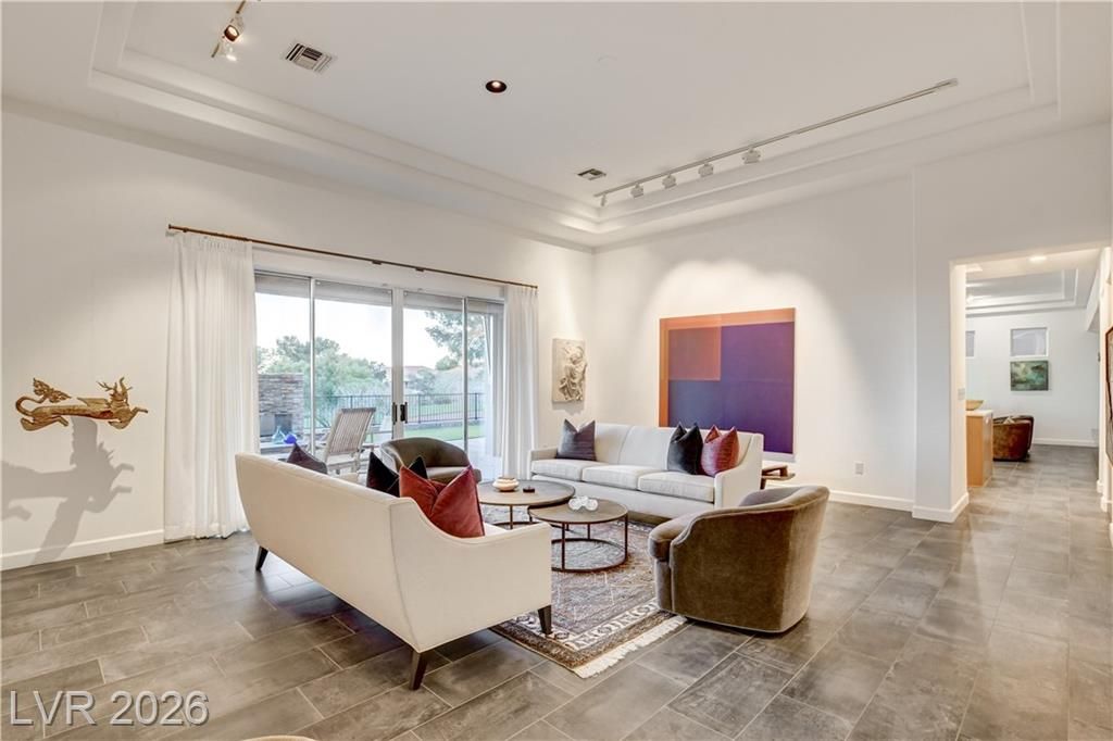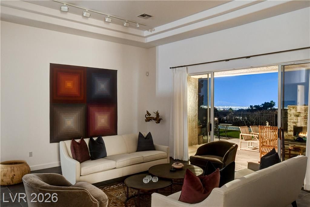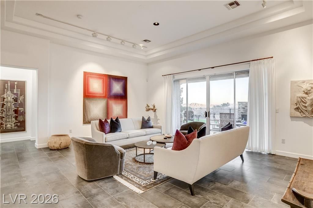 This exclusive home, located in one of the most desirable locations in Sun City Summerlin, offers beautiful views of the golf course & city to the east, and magnificent mountain views to the north & west. It is a unique, single-story customized home designed by a prominent Chicago architect/owner, who made significant enhancements during construction, including adding 600 SF to the family room & extending the ceiling feature to the newly styled & impressive entryway. Over the past 28 years, the current owners have been the only ones to inhabit the home & they have continued to make improvements. Notable features include stunning ceramic floors throughout, building a custom-designed office with bookshelves in the 3rd bedroom, and a fireplace in the backyard. The home has been impeccably maintained, resulting in a truly stunning property as showcased in the photos. Don't miss your chance to see this desirable home—schedule your appointment today, as it will not stay on the market long!