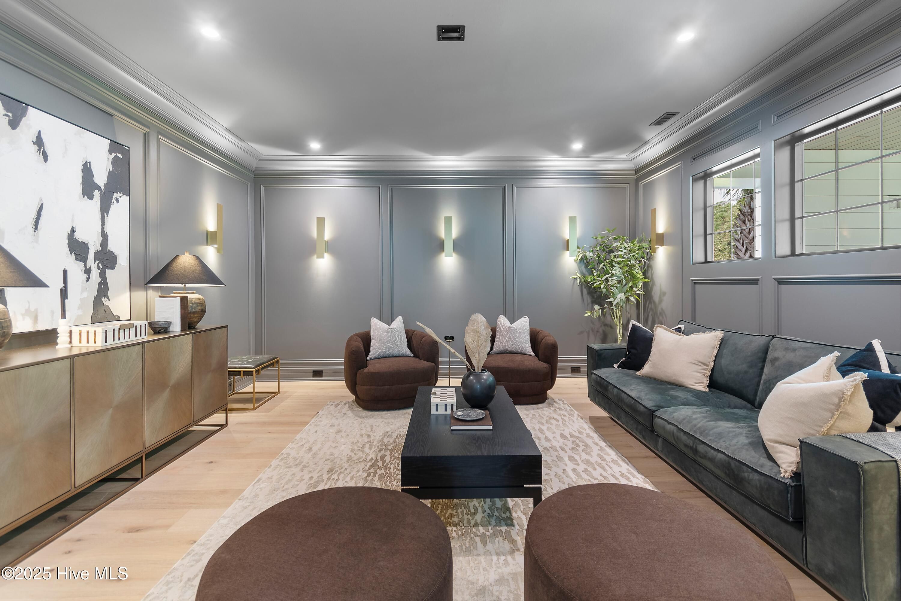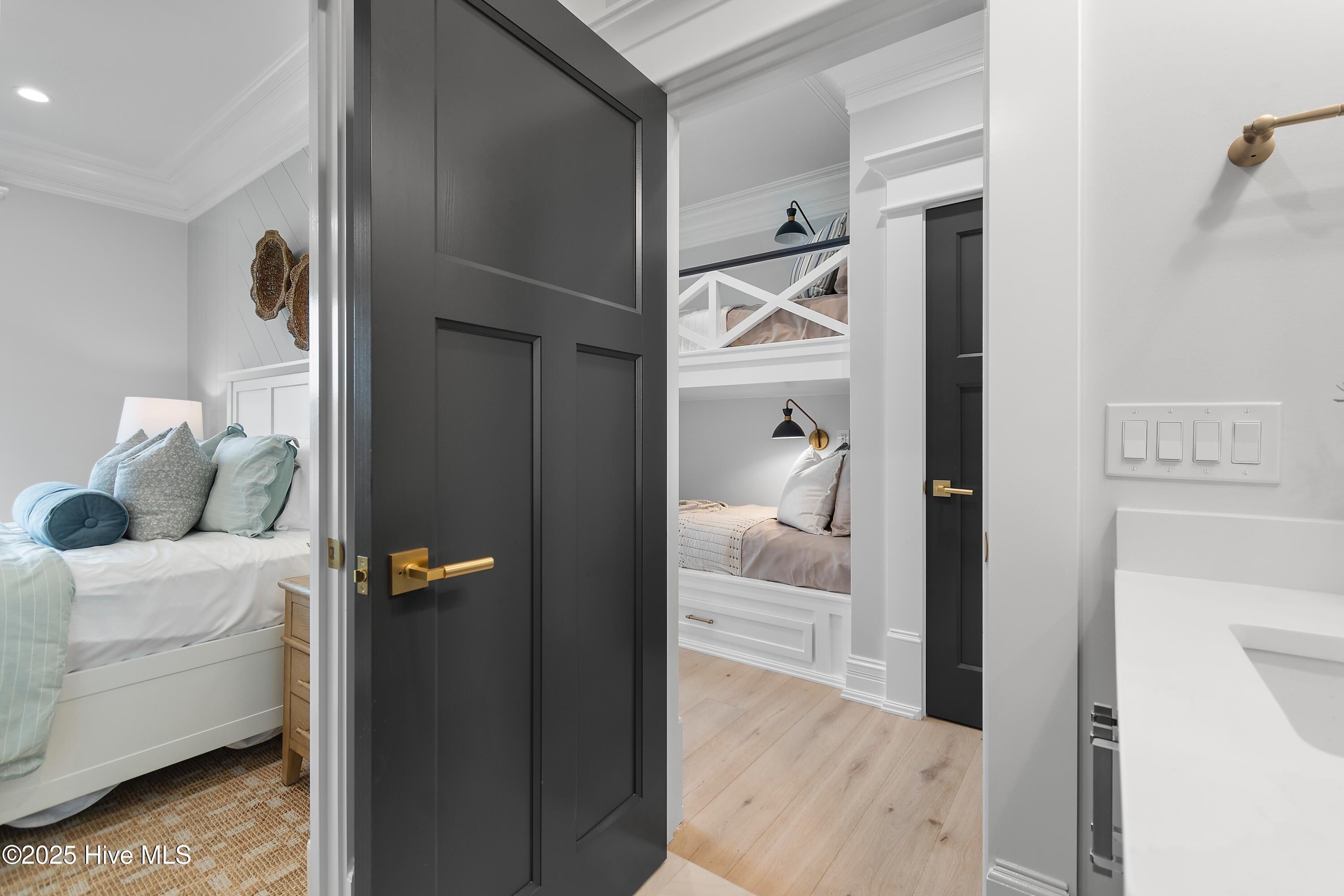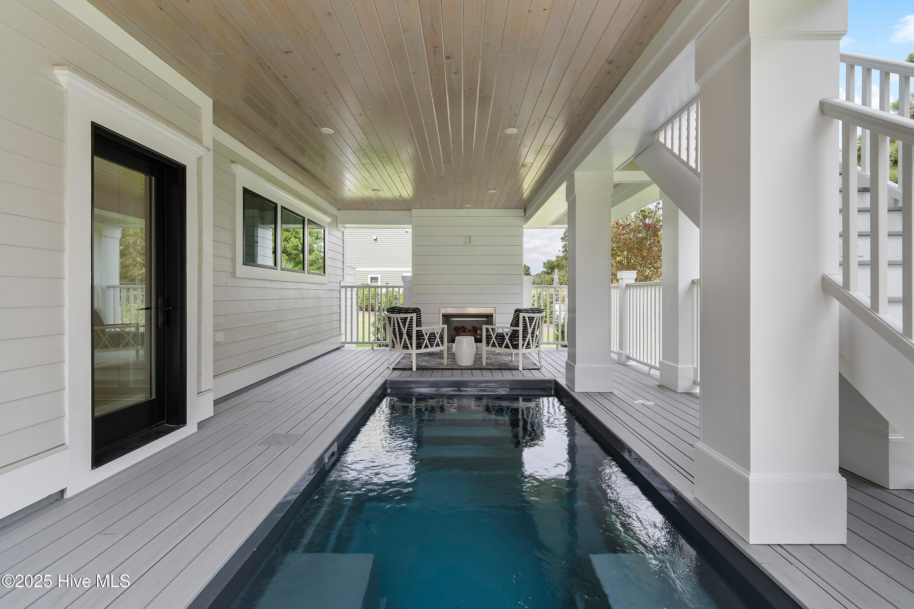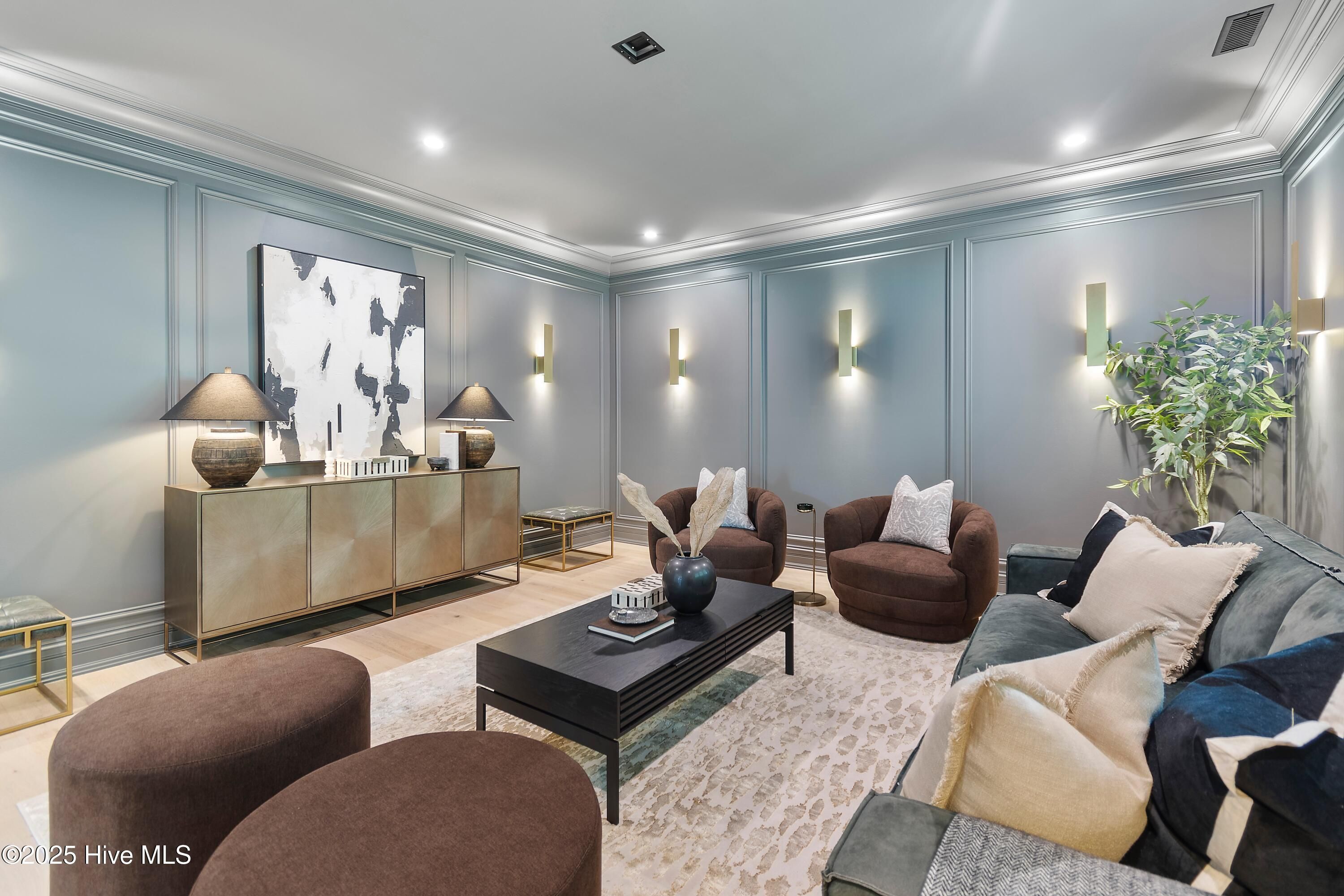 2025 Diamond Award Winner for the Brunswick County Parade of Homes! This stunning custom home, meticulously designed and crafted by Schiano Development, offers the perfect blend of luxury and functionality. This residence boasts 3,291 square feet with a three-story reverse floor plan, plunge pool, theatre room, wolf appliances and an elevator for easy access. This premier homesite is on a street that fronts the Intracoastal Waterway. The first floor features a theater room, providing a dedicated space for cinematic enjoyment, perfect for family movie nights or entertaining guests. There is also a comfortable and private guest bedroom with an en-suite bathroom, ideal for visitors. Additionally, the rear patio offers a serene outdoor oasis for relaxation and enjoyment, featuring a plunge pool, fireplace, and screened-in porch. The second floor includes a welcoming entry with a versatile office space. The master bedroom serves as a spacious and elegant retreat featuring a beautiful beam ceiling, accompanied by a large master bath with luxurious amenities and a walk-in closet offering ample storage. Additionally, there is a fun and functional bunk area with built-in beds for additional sleeping arrangements. Bedroom number three is well-appointed with a walk-in closet. Completing this floor is an expansive rear deck, perfect for relaxing and entertaining. The third floor boasts a great room with a fireplace and a diamond-shaped coffered ceiling, creating an impressive space for gathering. Adjacent is a sitting room with a built-in wet bar and wine cooler, perfect for hosting and enjoying refreshments. The dining area provides an inviting space for meals and celebrations.