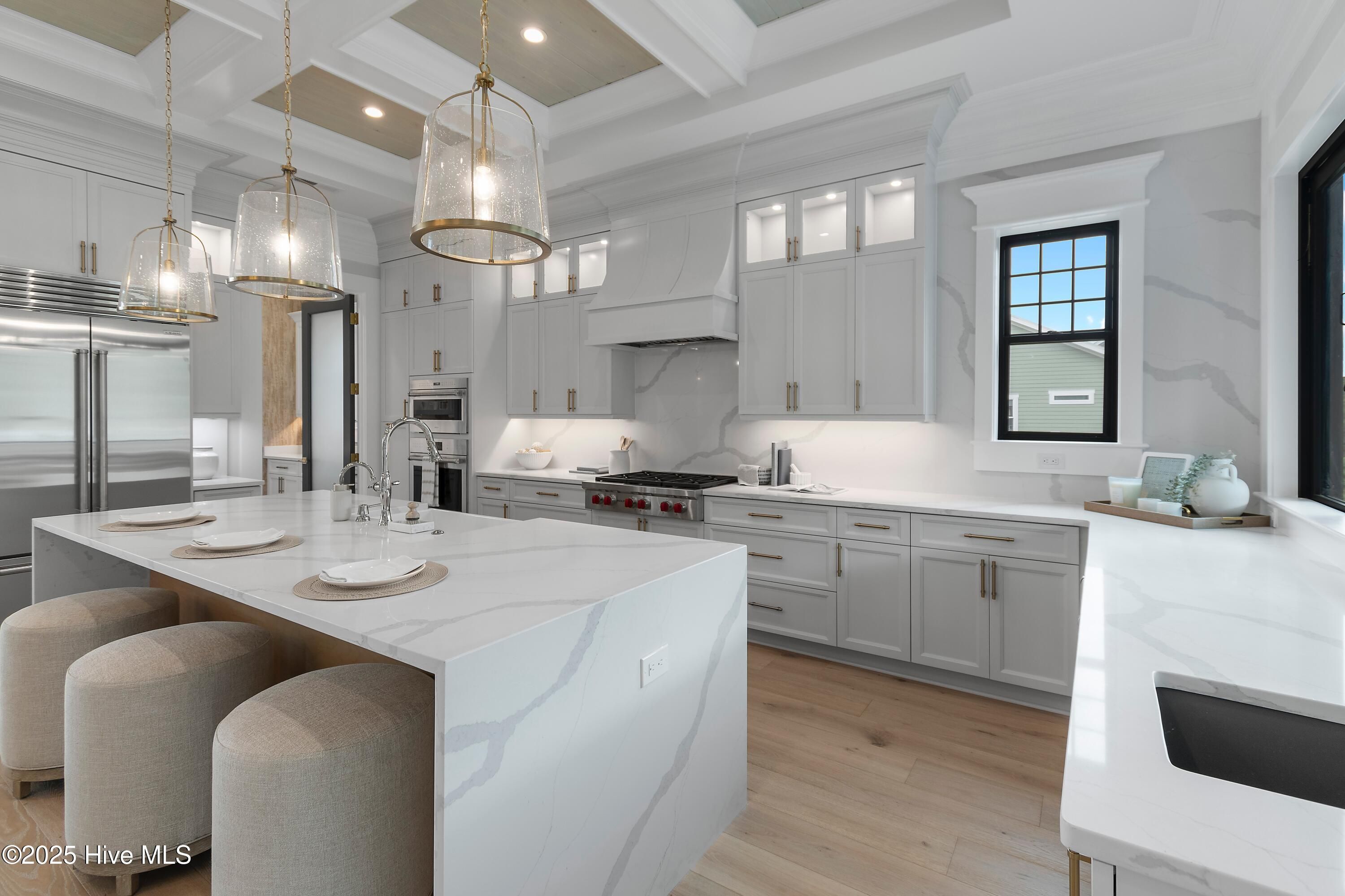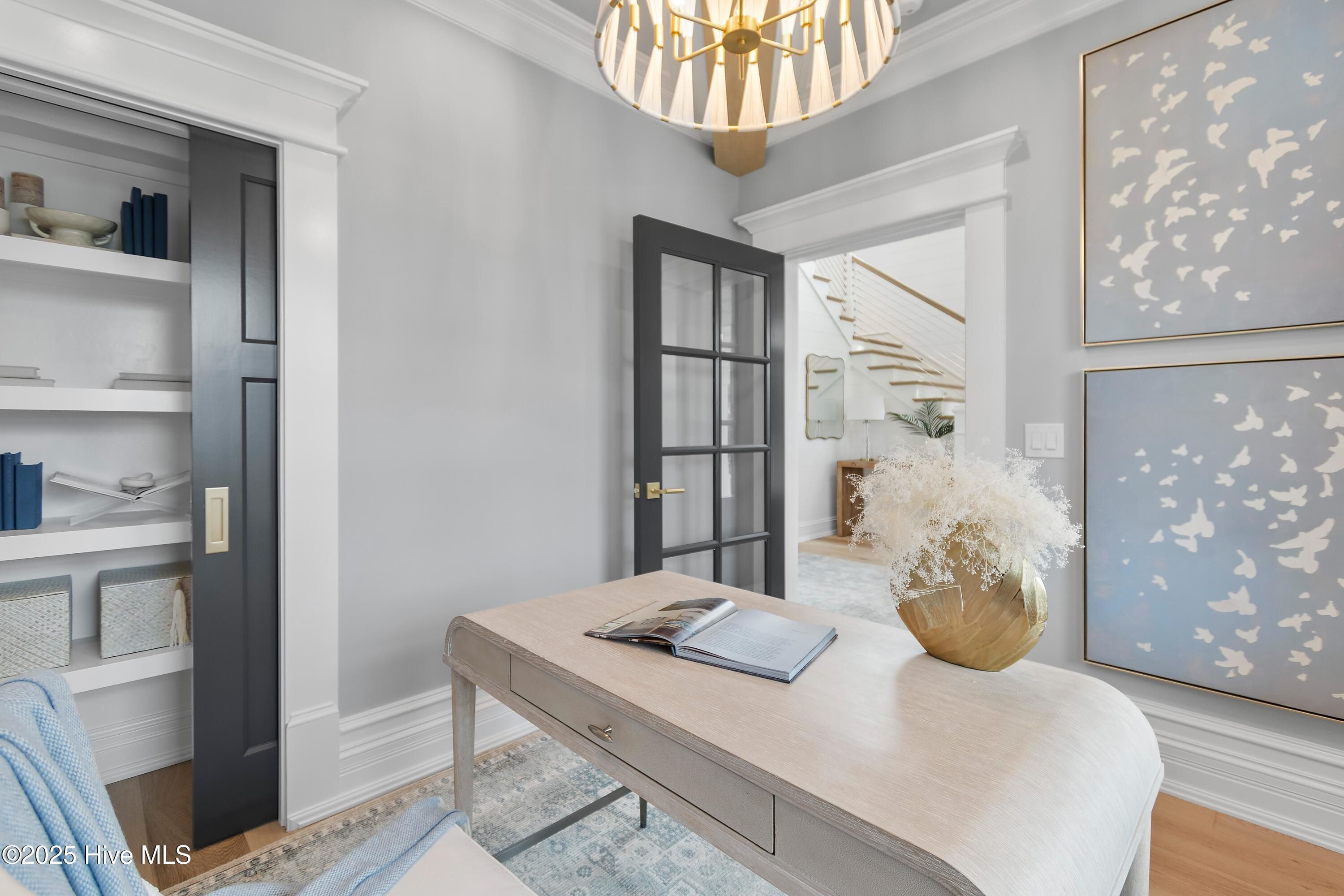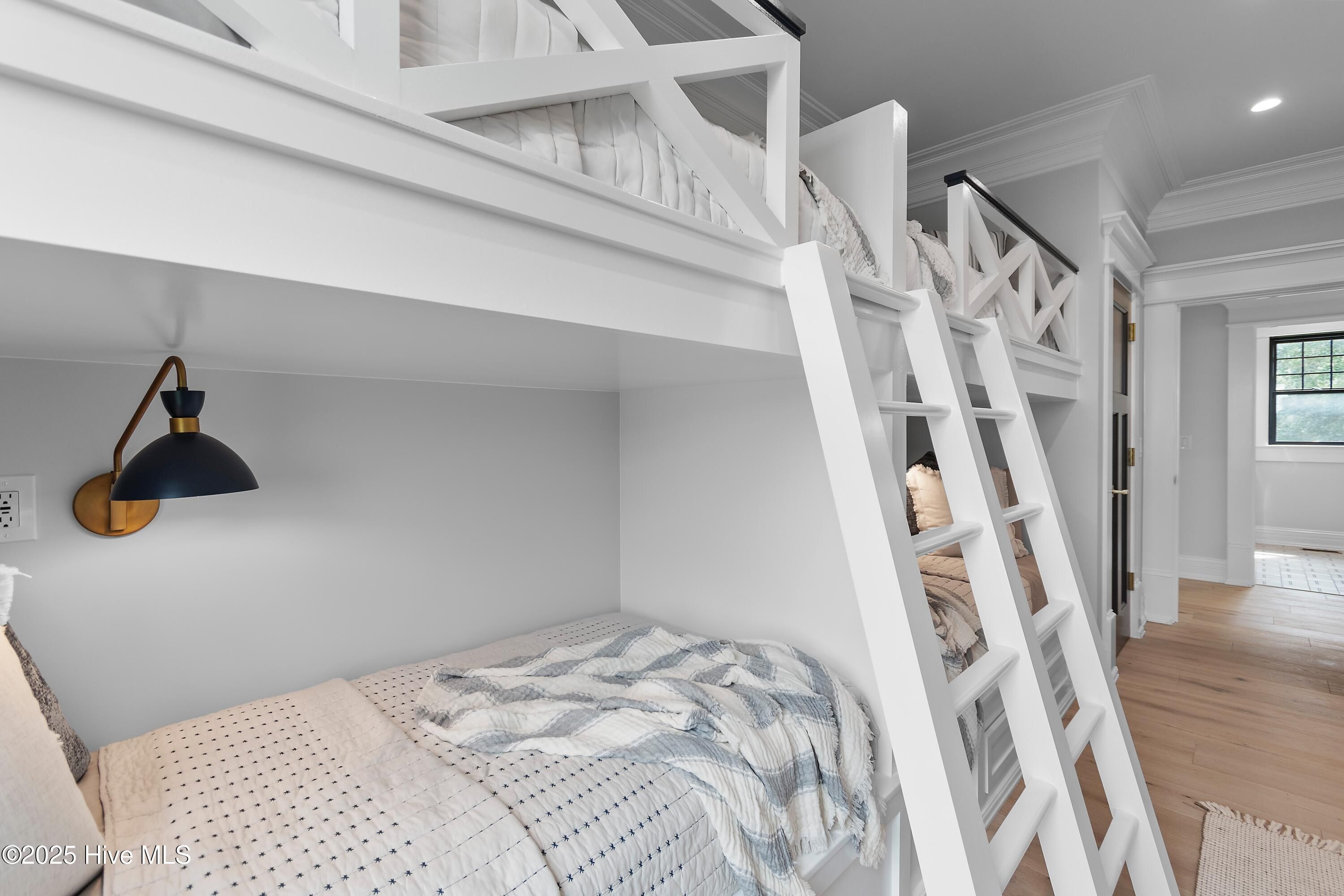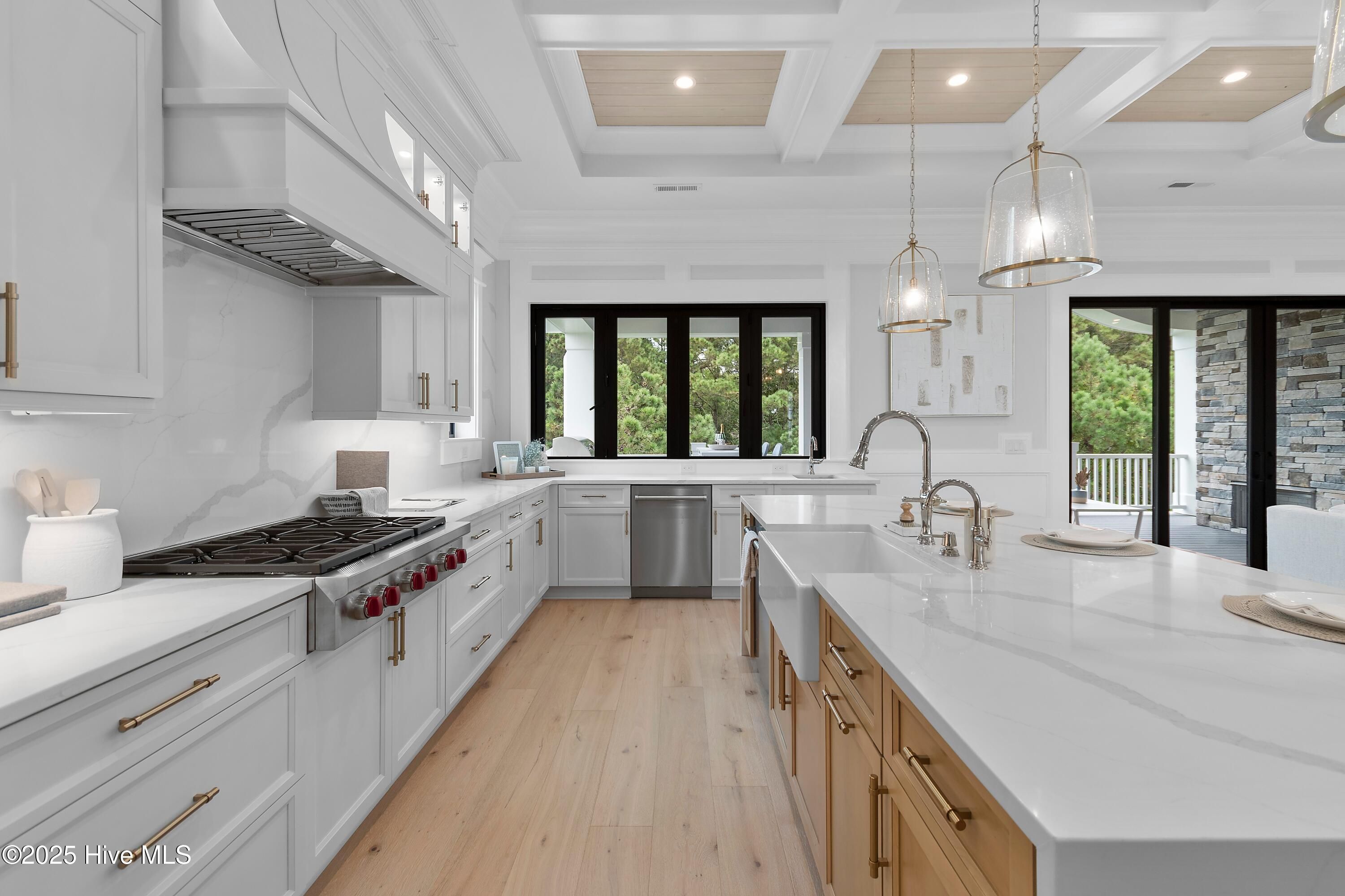 2025 Diamond Award Winner for the Brunswick County Parade of Homes! This stunning custom home, meticulously designed and crafted by Schiano Development, offers the perfect blend of luxury and functionality. This residence boasts 3,291 square feet with a three-story reverse floor plan, plunge pool, theatre room, wolf appliances and an elevator for easy access. This premier homesite is on a street that fronts the Intracoastal Waterway. The first floor features a theater room, providing a dedicated space for cinematic enjoyment, perfect for family movie nights or entertaining guests. There is also a comfortable and private guest bedroom with an en-suite bathroom, ideal for visitors. Additionally, the rear patio offers a serene outdoor oasis for relaxation and enjoyment, featuring a plunge pool, fireplace, and screened-in porch. The second floor includes a welcoming entry with a versatile office space. The master bedroom serves as a spacious and elegant retreat featuring a beautiful beam ceiling, accompanied by a large master bath with luxurious amenities and a walk-in closet offering ample storage. Additionally, there is a fun and functional bunk area with built-in beds for additional sleeping arrangements. Bedroom number three is well-appointed with a walk-in closet. Completing this floor is an expansive rear deck, perfect for relaxing and entertaining. The third floor boasts a great room with a fireplace and a diamond-shaped coffered ceiling, creating an impressive space for gathering. Adjacent is a sitting room with a built-in wet bar and wine cooler, perfect for hosting and enjoying refreshments. The dining area provides an inviting space for meals and celebrations.