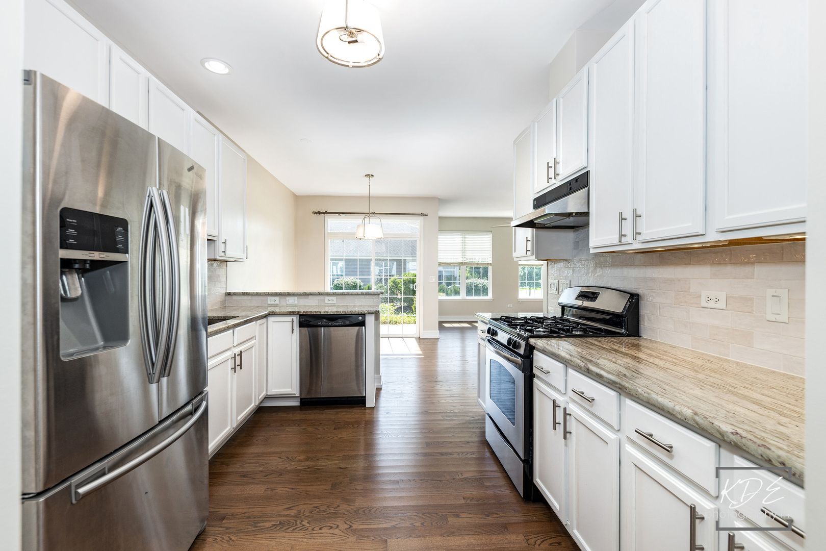 - Range, Dishwasher, Refrigerator, Washer, Dryer, Disposal, Stainless Steel Appliance(s), Range Hood
