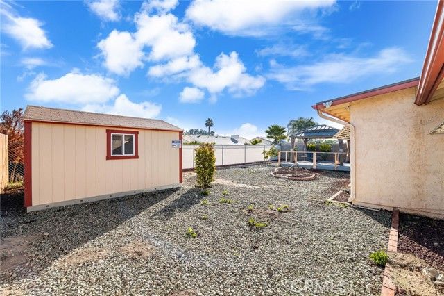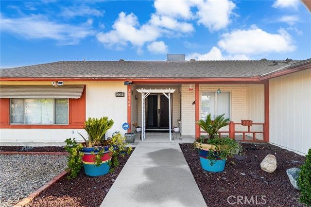 Recently upgraded from top to bottom, this lovely 55+ Sun City single-story home features two newly remodeled bathrooms, a new roof, new HVAC system with new ductwork, a whole-house fan, stainless steel ceiling fans, and new granite countertops paired with new stainless steel kitchen appliances including microwave, oven/electric range, 5-burner cooktop, and dishwasher. Additional improvements include a new wooden deck with lighted gazebo, new TUFF storage shed, newer washer and dryer, new water heater, and newly planted fruit trees—orange, lime, fig, and pomegranate. Charming curb appeal welcomes you with a drought-tolerant front yard accented by colorful rock landscaping and resilient plantings, plus a cozy front porch. Step through the protective metal dual-screen security door into a tiled entry leading to a spacious carpeted family room and dining area just off the kitchen. The fireplace dining space flows into an open, efficiently designed kitchen featuring granite countertops, dual stainless steel sink, ample cabinetry, and a cozy seating area that opens to the sunroom with built-in bar and storage cabinetry. The hallway off the kitchen leads to the laundry room with newer washer and dryer and direct access to the 2-car garage, which offers remote entry, abundant built-in long storage cupboards, and a convenient workbench area. The bright sunroom, complete with a new ceiling fan and bar area, adds valuable living space and opens to the attached patio, backyard deck, gazebo, and TUFF shed. Both the kitchen and sunroom feature plentiful windows with shade awnings overlooking the patio, gazebo, and fruit trees. Inside, you’ll find a comfortable guest bedroom and a beautifully remodeled bath with new tile flooring, vanity, mirror, lighting, added storage cupboard, and walk-in shower. The spacious primary bedroom features mirrored closet doors and a fully renovated en-suite bath with wood-look tile flooring, dual vanities, new lighting, and toilet. The drought-tolerant backyard offers a patio area, fruit trees, and a generous wooden deck crowned by a new lighted gazebo—perfect for relaxing or entertaining.Low HOA dues and low property taxes make this home an exceptional value.