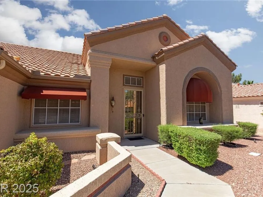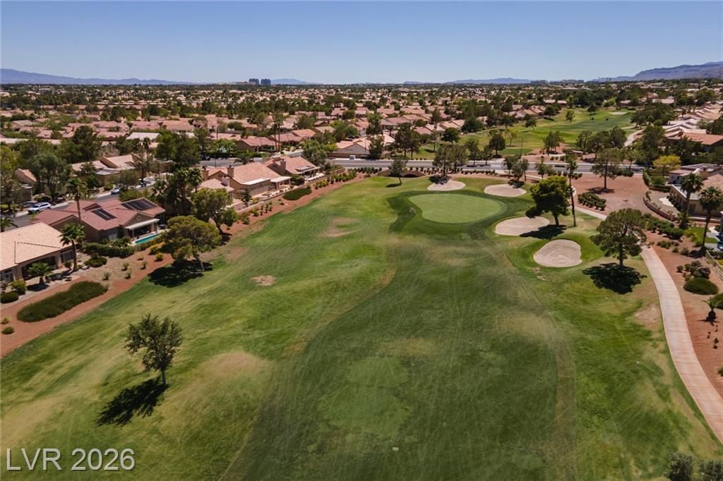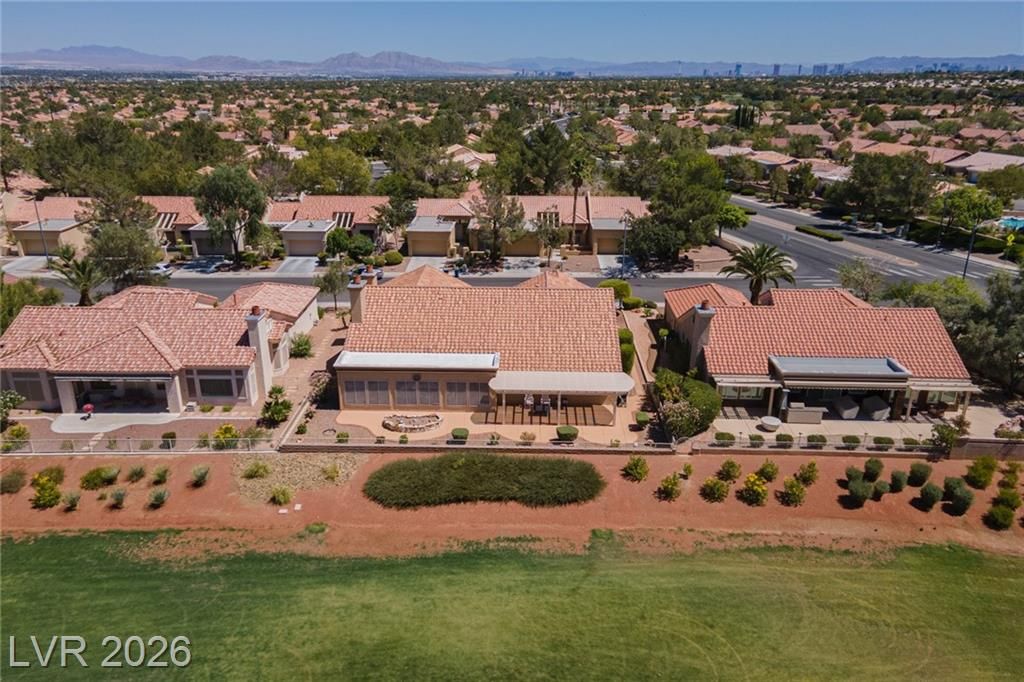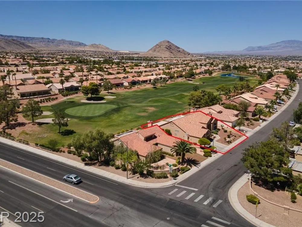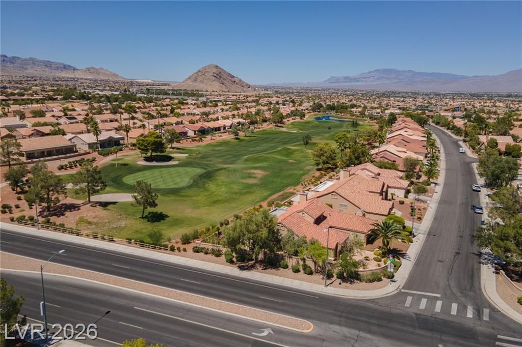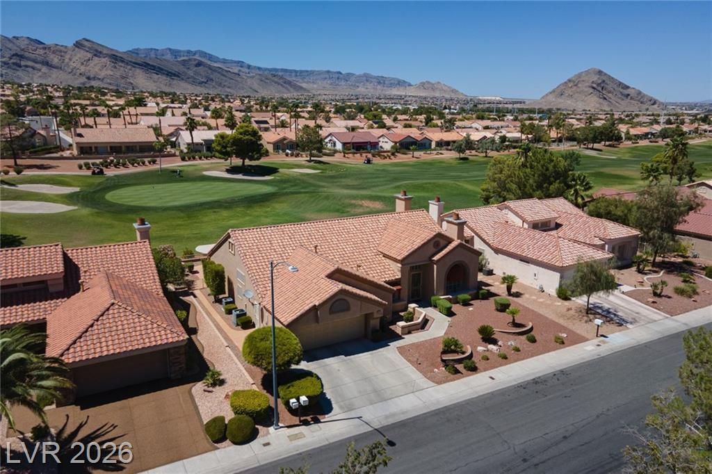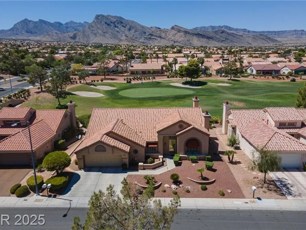 Experience LUXURY LIVING on the *GREEN* at the **5TH HOLE OF PALM VALLEY GOLF COURSE** in Sun City Summerlin with *STUNNING VIEWS OF THE COURSE AND MOUNTAINS!** This beautifully designed 3 bedroom single-story home open floor plan is perfect for daily living and entertaining. Relax in the private sunroom with stunning views of the putting green and breathtaking mountain backdrop. The large kitchen features stainless steel appliances, an island, ample counter space, and plenty of storage. Additional upgrades include a water filtration system, water conditioner, and a 2-car garage with cabinets and epoxy flooring. Located in one of Las Vegas’ premier 55+ communities, residents enjoy three championship golf courses, four clubhouses, pools, fitness centers, a theater, and over 80 clubs—all with a low monthly HOA.