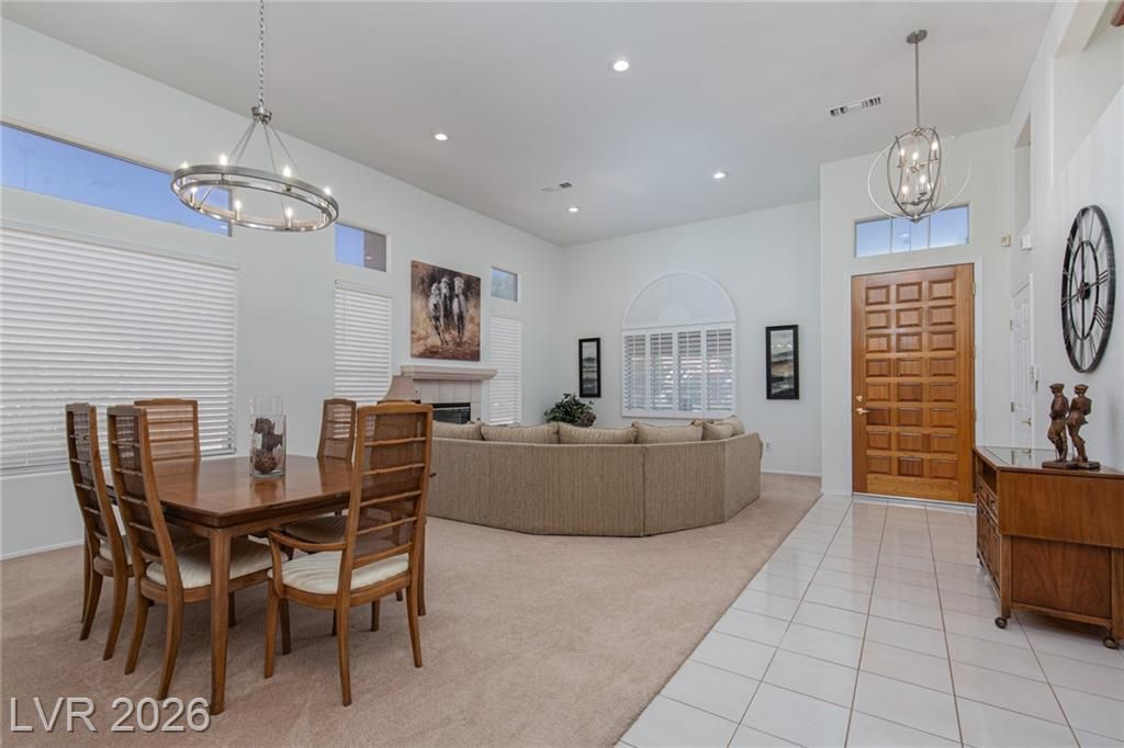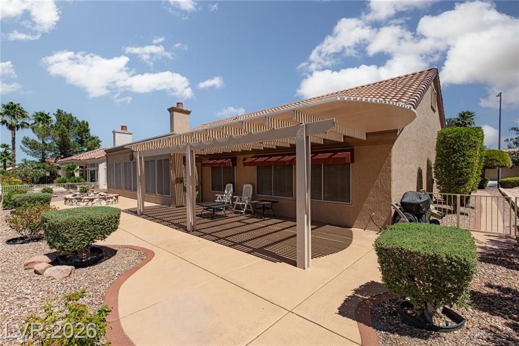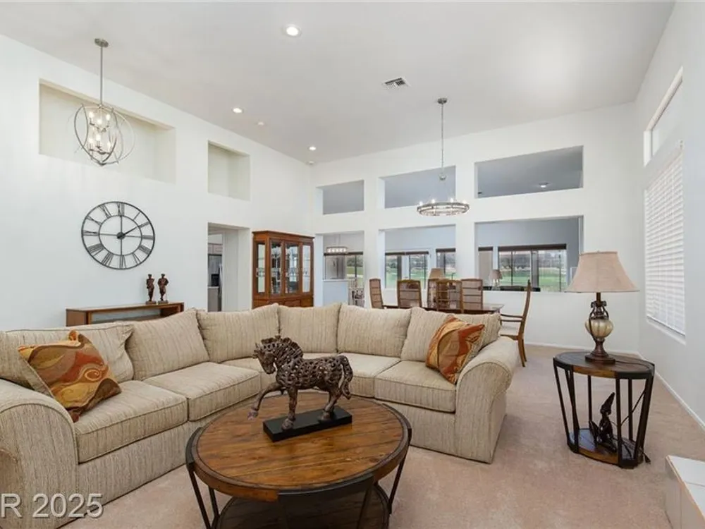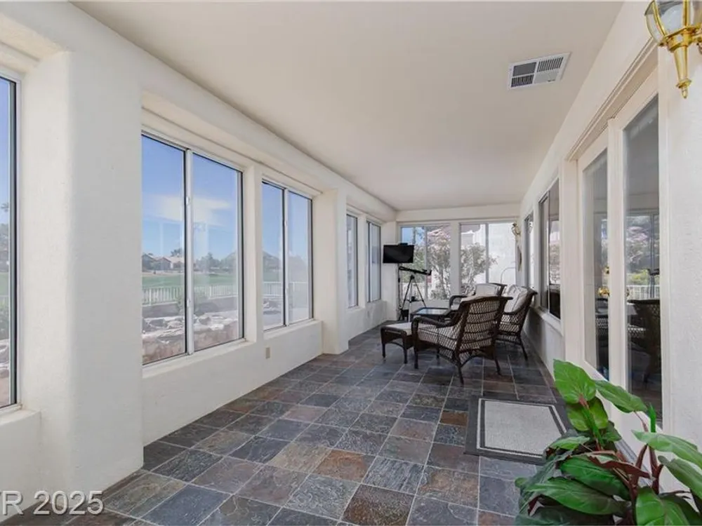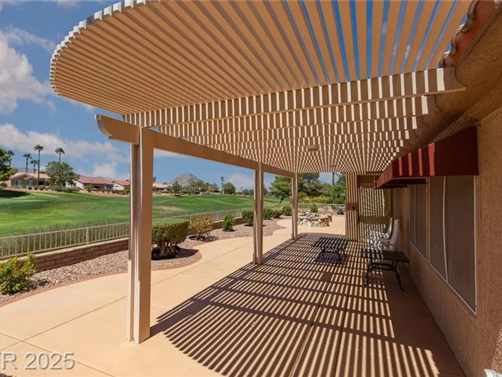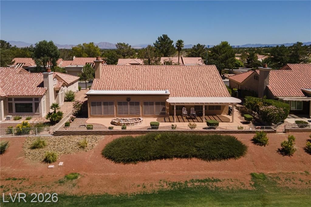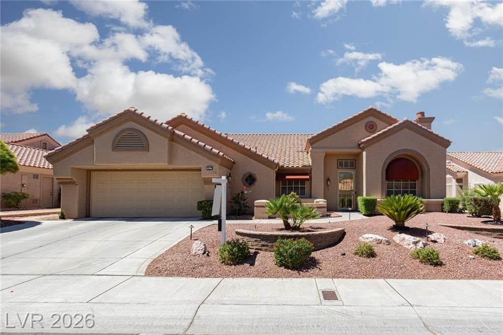 Experience LUXURY LIVING on the *GREEN* at the **5TH HOLE OF PALM VALLEY GOLF COURSE** in Sun City Summerlin with *STUNNING VIEWS OF THE COURSE AND MOUNTAINS!** This beautifully designed 3 bedroom single-story home open floor plan is perfect for daily living and entertaining. Relax in the private sunroom with stunning views of the putting green and breathtaking mountain backdrop. The large kitchen features stainless steel appliances, an island, ample counter space, and plenty of storage. Additional upgrades include a water filtration system, water conditioner, and a 2-car garage with cabinets and epoxy flooring. Located in one of Las Vegas’ premier 55+ communities, residents enjoy three championship golf courses, four clubhouses, pools, fitness centers, a theater, and over 80 clubs—all with a low monthly HOA.