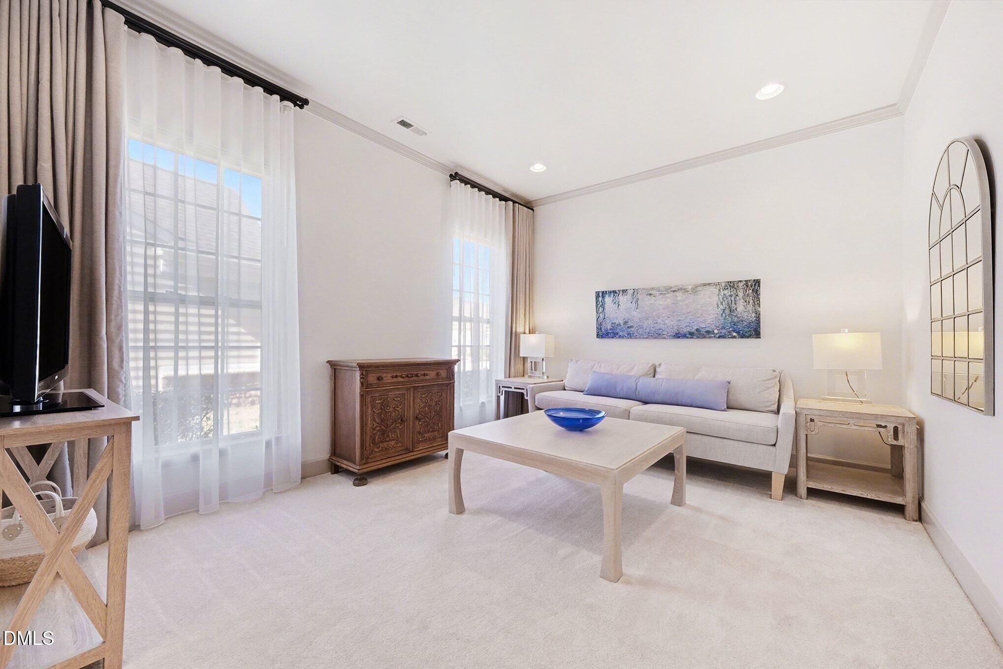 Original owner offering a rare opportunity to live on one of the most coveted streets in Carolina Preserve. The highly sought-after Morningside Lane floor plan is the largest single-story layout in the community--and this home stands apart with upgrades you won't find elsewhere. Situated on an oversized lot with large side yard, the property is a gardener's dream featuring mature landscape beds, expansive yard space, and a private, flat backyard ideal for relaxing or entertaining. Enjoy true one-level living with no stairs from either the front entry or garage for everyday convenience and long-term accessibility. Inside, the home has been thoughtfully enhanced to maximize openness and natural light. The sun room--fully enclosed under air--has been reconfigured by removing structural arches, creating a bright, spacious living area that flows seamlessly from the living room. Designed with efficiency and comfort in mind, the home includes Icynene spray foam insulation throughout all roof decking and above the garage ceiling, helping maintain consistent indoor temperatures and lower energy costs. Additional upgrades include an Aquasana whole-house water filtration system and a Rinnai tankless natural gas water heater for continuous hot water. The HVAC system (replaced in 2020) is equipped with an Aprilaire whole-house dehumidifier, fresh air intake, dual-zone thermostats with dampers, and a UV light system for enhanced air quality. A unique and flexible layout allows the secondary bedroom wing to function as a private suite--ideal for guests or a full-time caretaker--with a separate entry from the main living area and independent climate control. Separate laundry room with sink and ample counter space. Lovingly maintained, this home is ready for its next chapter--welcoming new owners to create lasting memories of their own! Carolina Preserve offers residents a 35,000 sq ft club house, state of the art fitness center, tennis (clay), pickleball and bocce courts, indoor and outdoor pools, pottery and dance studios along with over 120 clubs. Enjoy the lifestyle and community you deserve!