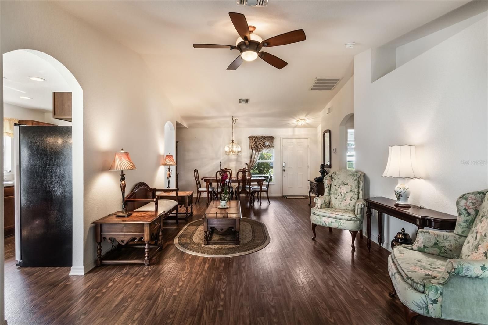 - Ceiling Fan(s), Eat-in Kitchen, Living/Dining Room, Open Floorplan, Main Level Primary, Split Bedrooms, Vaulted Ceiling(s), Walk-In Closet(s)