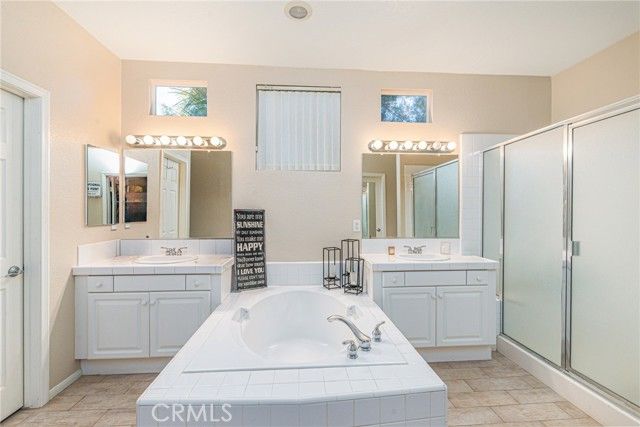 Check out this beautiful and RARE MILANO model Floor Plan in the 55+ Gate Guarded Community of the OASIS! A premium corner lot location on a short private cul de sac with a coveted courtyard entry! Enter your home through a lush and private courtyard into a grand entry and opens to a large dining room on your left and access to the front bedroom and bonus room on the right. This home features a full 3 bedrooms and 3 full bathrooms as well as a bonus room accessible from the front hallway, or from the master en suite bathroom. It can function as craft room as the current owner has it configured, or could be a retreat off the master suite. The open and spacious great room features huge windows and a built in entertainment center adjacent to a cozy fireplace with mantle. The massive kitchen features custom white cabinetry with loads of counter space and storage and a convenient island and breakfast bar. Upstairs you'll find a large loft, massive mini-suite bedroom and full bathroom. This space would be ideal for a tenant to live in their own private space separate from those who reside downstairs! The beautifully landscaped property includes mature trees and shrubs, combo patio of concrete and pavers. The backyard also features a huge side yard with a lawn and trees which would make a great garden, quiet sitting area or a dog run. HOA covers front yard water and maintenance as well as the trash service. The OASIS is an active adult community of 1,158 homes located behind private gates. The community social and activities calendar in The OASIS is constantly filled with exciting activities, events and classes. There are over two-dozen clubs and interest groups that meet regularly. Whether you enjoy arts and crafts, Bingo, card games, or RV'ing, you are sure to find other like-minded residents who share your passions. Fitness conscious residents enjoy a variety of instructor-led classes such as low-impact aerobics, Zumba, Yoga, Tai Chi, dance classes and aqua fitness. Golfers at The OASIS have convenient access to the adjacent 36-hole Menifee Lakes Country Club. The Ted Robinson designed course features true-rolling greens and playable fairways, with more than 100 strategically placed bunkers.