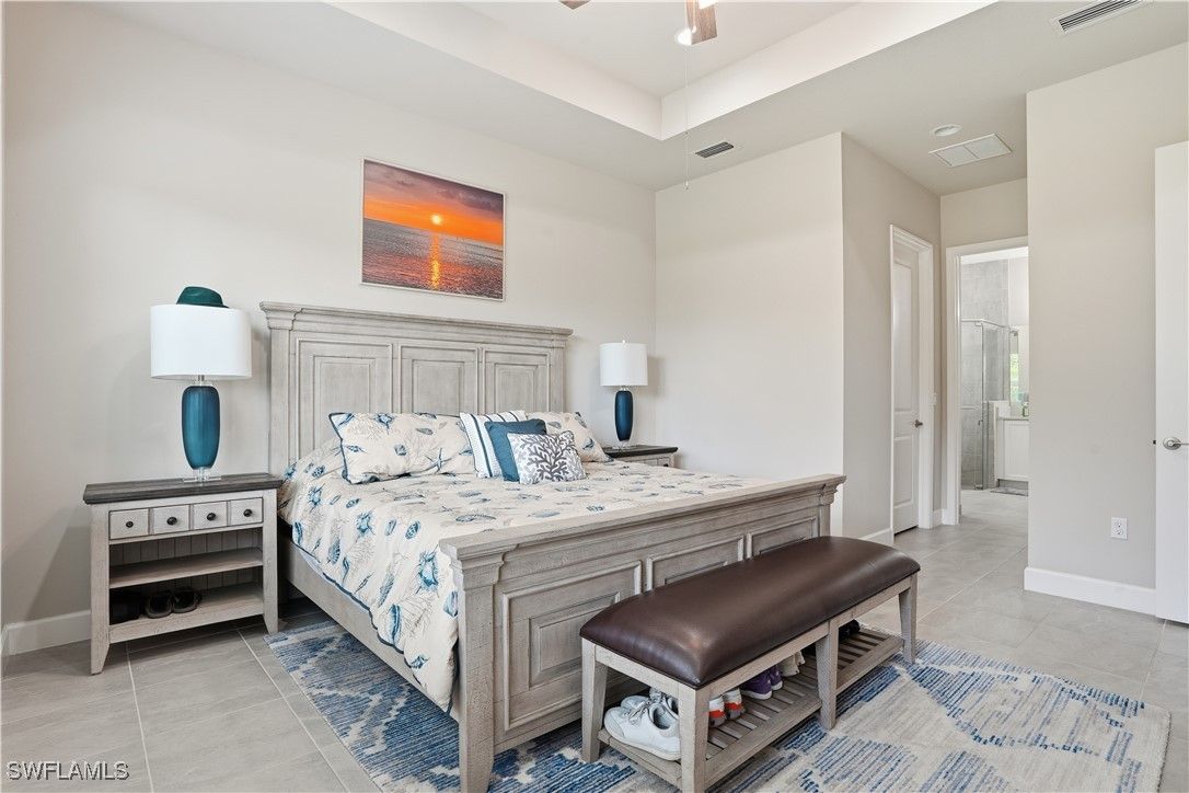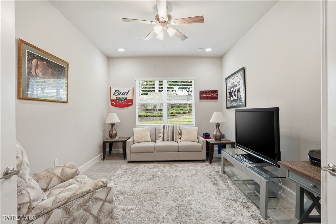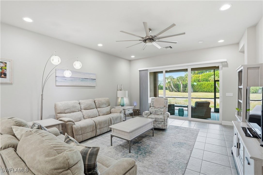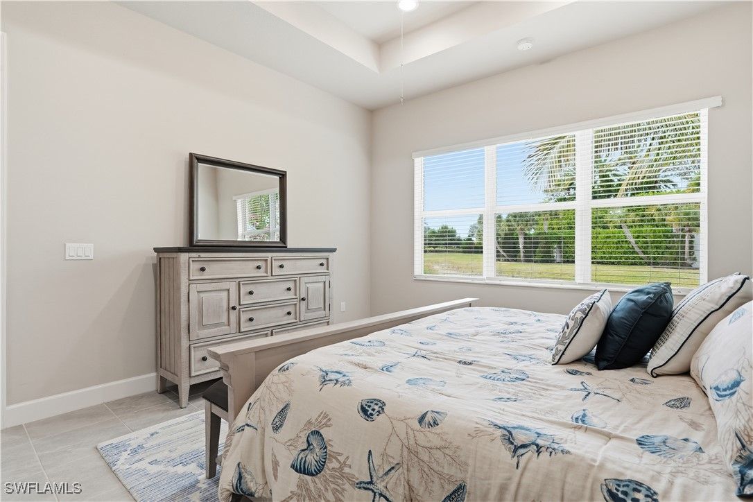 Rarely available and exceptionally private, this elegant 2-bedroom + den residence is perfectly positioned at the end of a quiet street in the prestigious 55+ community of Valencia Bonita. One of the most desirable homesites in the community, it offers unmatched privacy with no neighboring homes on the side or rear, set within a serene, park-like setting with tranquil water views. The thoughtfully designed interior features tasteful, neutral décor and refined finishes throughout, creating a sophisticated yet inviting ambiance. Truly move-in ready and offered fully furnished for immediate enjoyment, including a back up generator. The versatile den provides ideal flex space for a home office, media room, or guest retreat. Residents enjoy Valencia Bonita’s award-winning, resort-style amenities including a grand clubhouse, pools, fitness center, tennis, pickleball, and a vibrant social calendar. Ideally located near upscale shopping, fine dining, and the newly developing Midtown Bonita, with a straight drive to Gulf beaches—this is a unique opportunity to own a premier homesite offering privacy, luxury, and lifestyle.