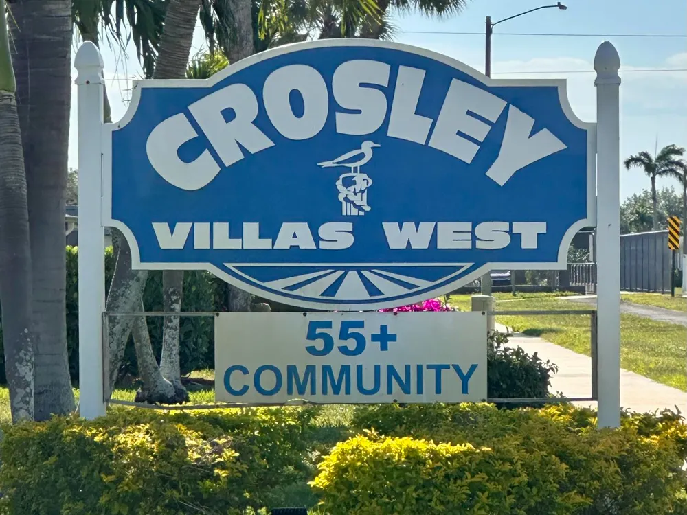Cozy 1 bedroom, 1.5 bathroom (furnished optional bonus) villa nestled in the sought after 55+ community of Crosley West. TILE throughout, RENOVATED bathrooms, large primary closet. Enclosed patio and storage area with hurricane shutters. Well kept. Common laundry just steps away. Lifestyle amenities included; pool, fitness center, library, card room, shuffle board, events, social gatherings and much more! New roof and internet is included in the condo Fees. The community is close to shopping and Airport, and beaches.