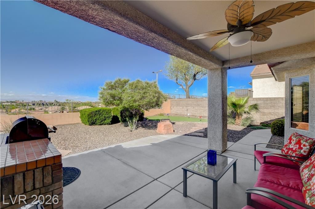 This clean and inviting single-story home sits in Sun City Anthem with incredible mountain and city views! It features 3 bedrooms including a casita - perfect for visitors to have their own space!. In total the home has 3 bathrooms, a 2-car garage with a golf cart parking spot, an open floorplan, and a large backyard with an oversized covered patio, built-in barbecue, and putting green. The neighborhood also has direct access to the golf cart parth. Enjoy everything Sun City Anthem has to offer, including walking trails, a clubhouse, community pool, golf, and more!