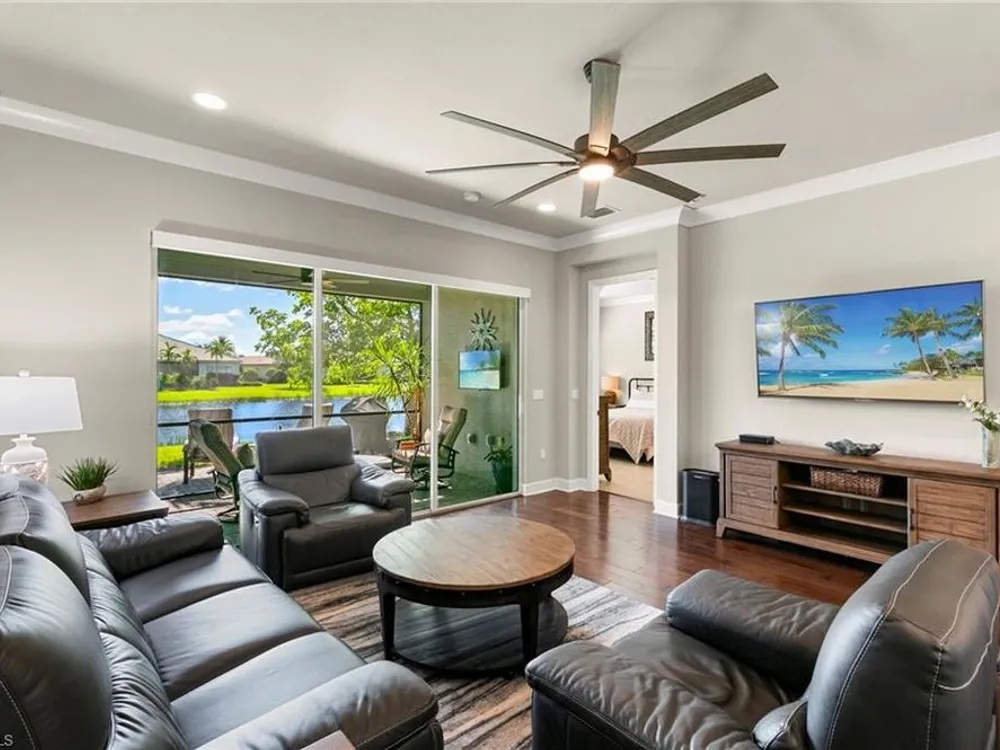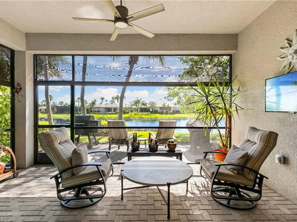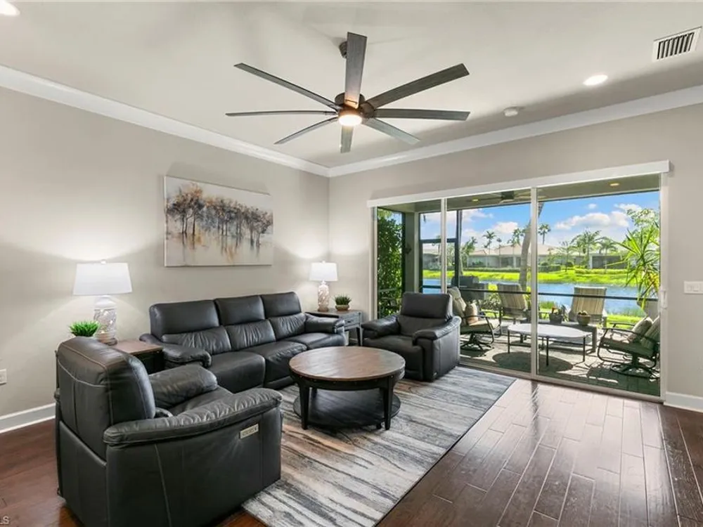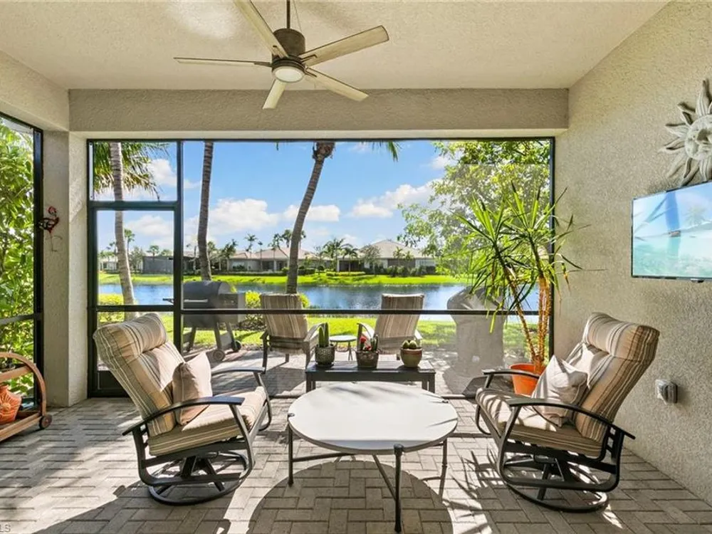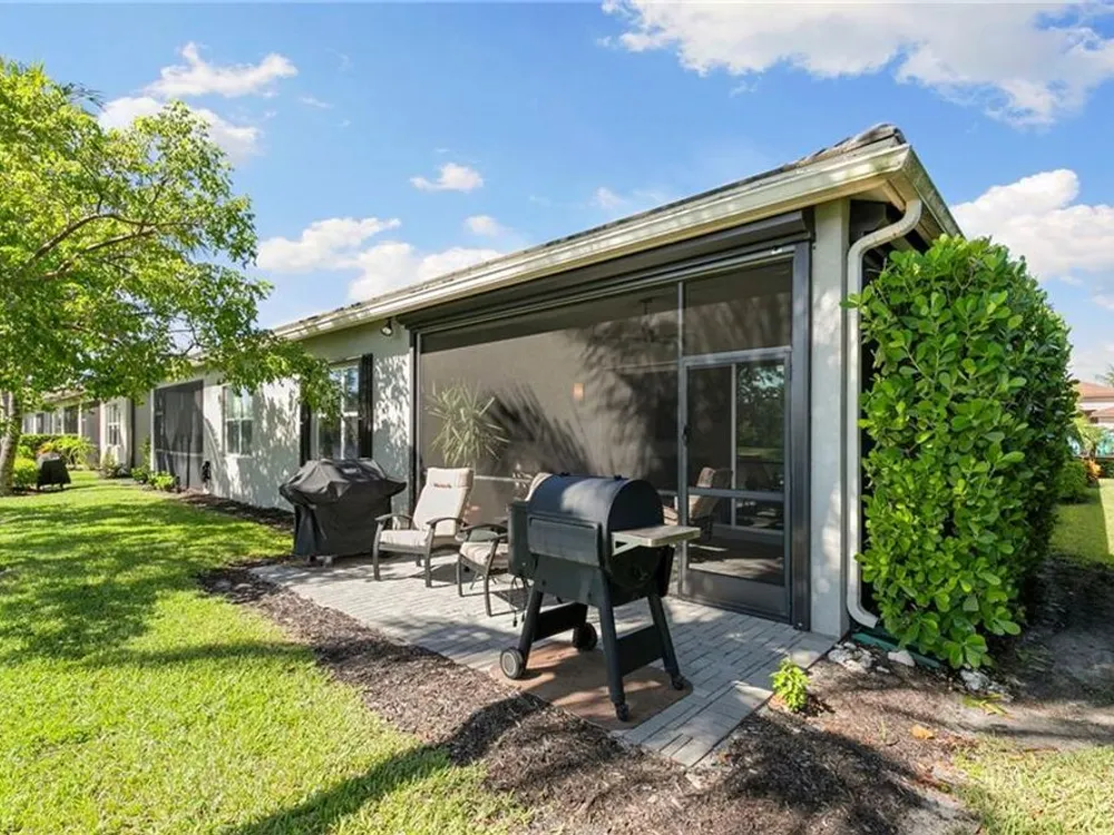 Luxury lakeside living awaits you at 28433 Abruzzo Drive, a stunning Nantucket model attached villa in the sought-after Valencia Bonita community. This exquisite home, built by renowned GL Homes, offers a sophisticated and tranquil lifestyle with over $50,000 in post-closing upgrades.Step inside to a home designed for effortless luxury. You'll immediately notice the upgraded hardwood floors that flow seamlessly throughout, creating a warm and elegant ambiance. The open-concept living area is framed by crown molding, adding a touch of classic refinement. The living room and kitchen overlook a breathtaking lake, offering a picturesque backdrop for everyday life and entertaining. The gourmet kitchen boasts top-of-the-line stainless steel appliances, pristine white cabinetry, and beautiful granite countertops, perfect for the home chef.The true highlight of this property is the expansive outdoor space. The lanai has been professionally upgraded with a 7-foot patio extension and Storm Smart screens, providing a perfect blend of indoor-outdoor living and hurricane protection. Imagine sipping your morning coffee or hosting a sunset barbecue with serene lake views. The front patio also features a screen enclosure, offering another private space to relax.For added peace of mind and convenience, this home includes a whole-home generator, ensuring you're never without power. The two-car garage is a tinkerer's dream, featuring epoxy flooring and professional storage racks, providing a clean, organized, and functional space.Location is everything, and this home is a gem. Situated on Abruzzo Drive, you're just a short, peaceful walk across the street to the spectacular 45,000 square foot clubhouse. Here, you'll find an unparalleled resort lifestyle with amenities that include multiple pools, a state-of-the-art fitness center, a spa, a restaurant, tennis and pickleball courts, and a full calendar of social activities, and a social club for all of your interests. You get all the convenience without the noise of being on the main thoroughfare.The community of Valencia Bonita caters to the 55+ active adult, offering a vibrant and engaging social scene. Beyond the community, the location is unbeatable. Enjoy easy access to the Logan Blvd Extension for walking, jogging, or biking and connection to Naples, and explore the future Midtown at Bonita, a new development promising a lively mix of dining, shopping, and entertainment.