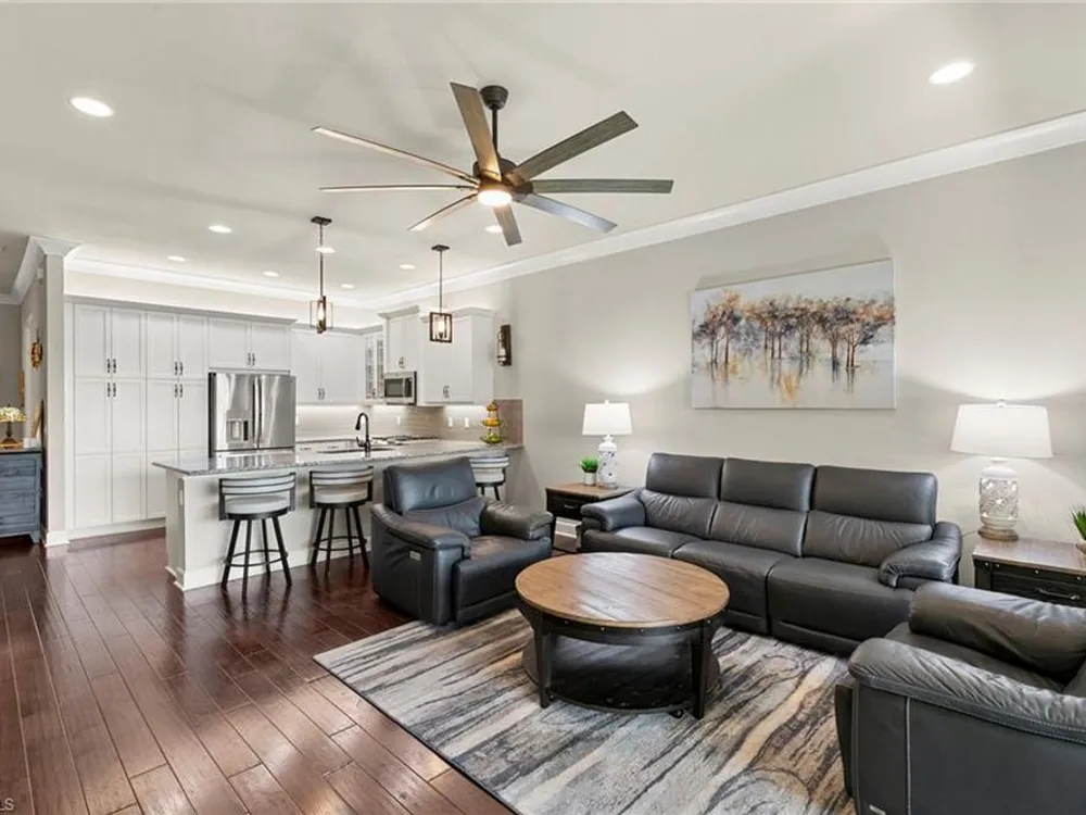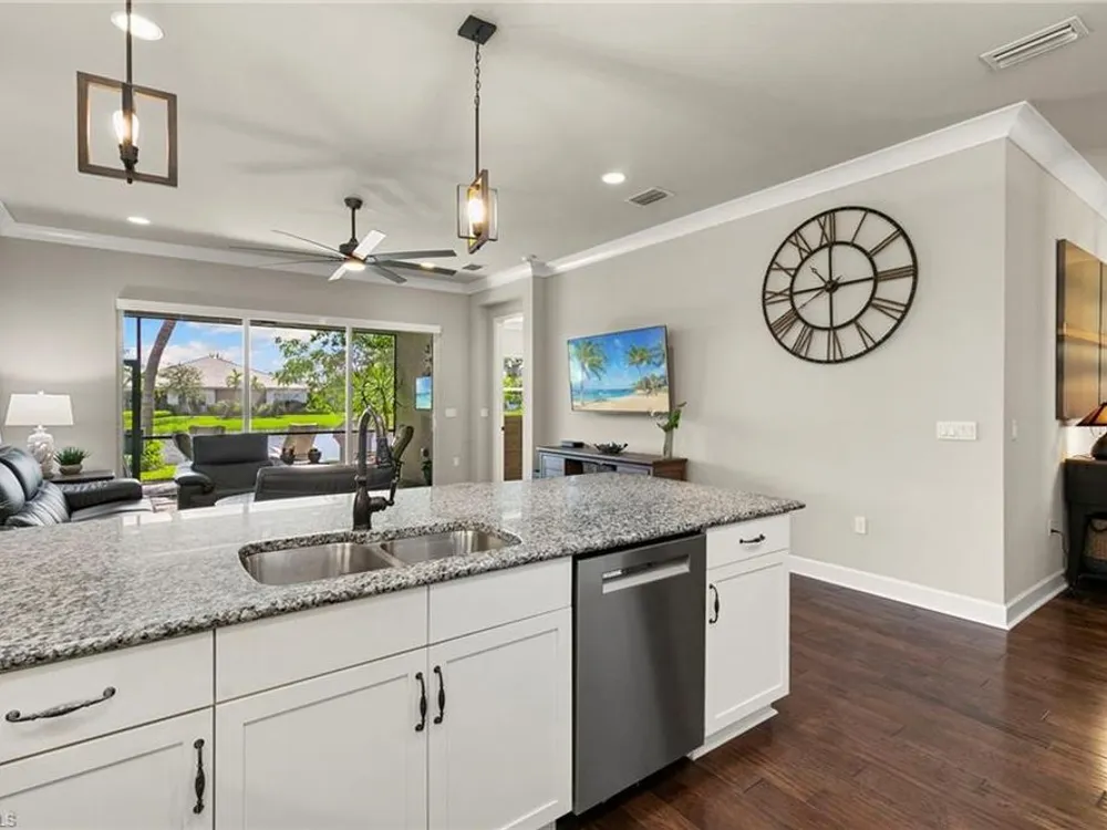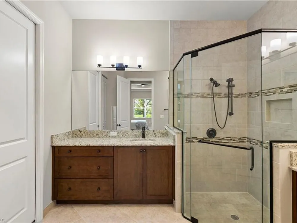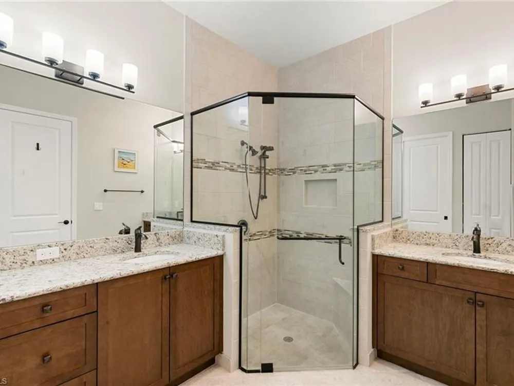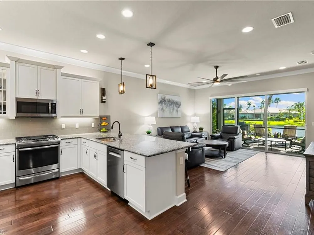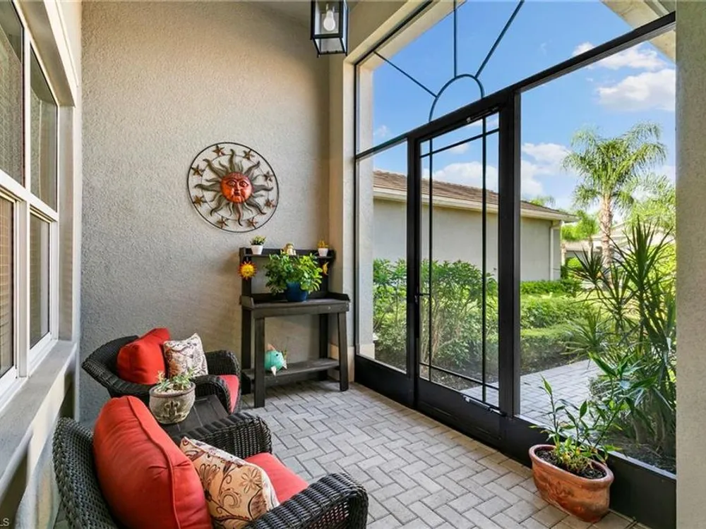 Luxury lakeside living awaits you at 28433 Abruzzo Drive, a stunning Nantucket model attached villa in the sought-after Valencia Bonita community. This exquisite home, built by renowned GL Homes, offers a sophisticated and tranquil lifestyle with over $50,000 in post-closing upgrades.Step inside to a home designed for effortless luxury. You'll immediately notice the upgraded hardwood floors that flow seamlessly throughout, creating a warm and elegant ambiance. The open-concept living area is framed by crown molding, adding a touch of classic refinement. The living room and kitchen overlook a breathtaking lake, offering a picturesque backdrop for everyday life and entertaining. The gourmet kitchen boasts top-of-the-line stainless steel appliances, pristine white cabinetry, and beautiful granite countertops, perfect for the home chef.The true highlight of this property is the expansive outdoor space. The lanai has been professionally upgraded with a 7-foot patio extension and Storm Smart screens, providing a perfect blend of indoor-outdoor living and hurricane protection. Imagine sipping your morning coffee or hosting a sunset barbecue with serene lake views. The front patio also features a screen enclosure, offering another private space to relax.For added peace of mind and convenience, this home includes a whole-home generator, ensuring you're never without power. The two-car garage is a tinkerer's dream, featuring epoxy flooring and professional storage racks, providing a clean, organized, and functional space.Location is everything, and this home is a gem. Situated on Abruzzo Drive, you're just a short, peaceful walk across the street to the spectacular 45,000 square foot clubhouse. Here, you'll find an unparalleled resort lifestyle with amenities that include multiple pools, a state-of-the-art fitness center, a spa, a restaurant, tennis and pickleball courts, and a full calendar of social activities, and a social club for all of your interests. You get all the convenience without the noise of being on the main thoroughfare.The community of Valencia Bonita caters to the 55+ active adult, offering a vibrant and engaging social scene. Beyond the community, the location is unbeatable. Enjoy easy access to the Logan Blvd Extension for walking, jogging, or biking and connection to Naples, and explore the future Midtown at Bonita, a new development promising a lively mix of dining, shopping, and entertainment.