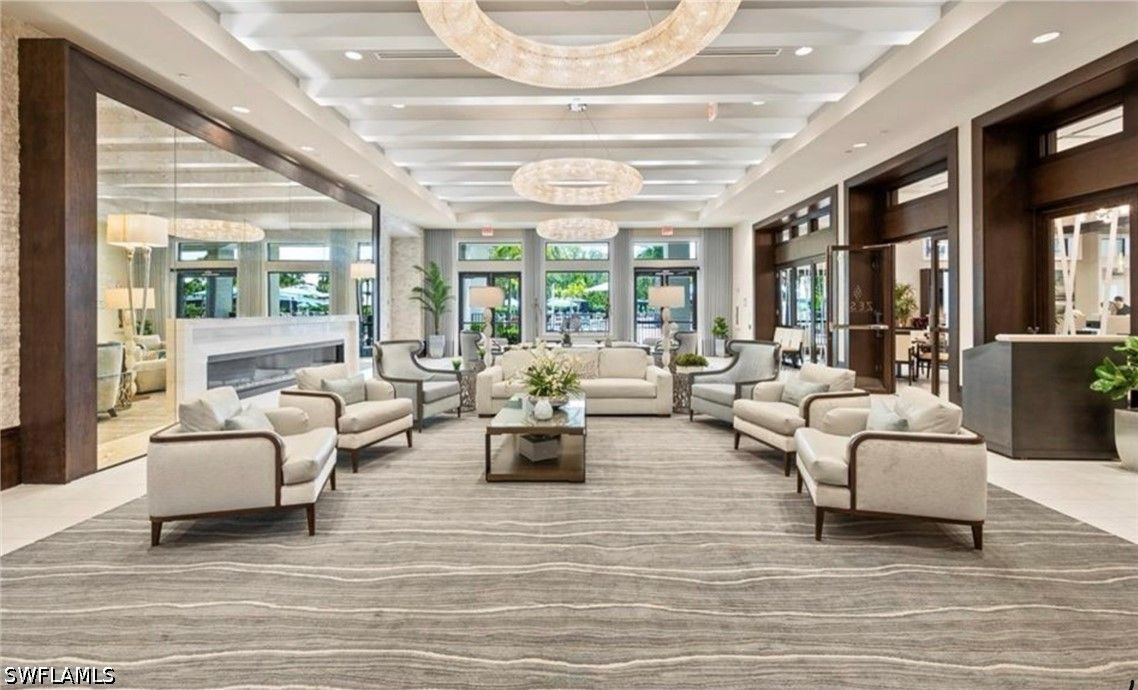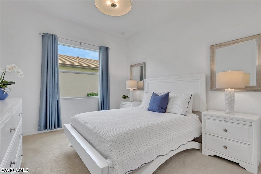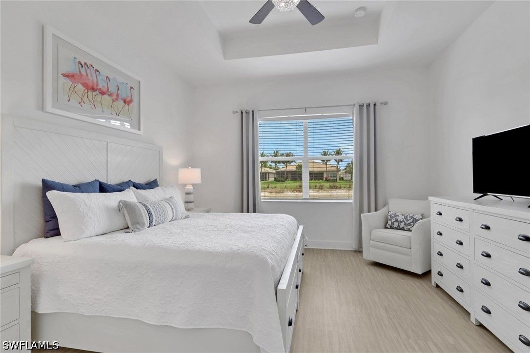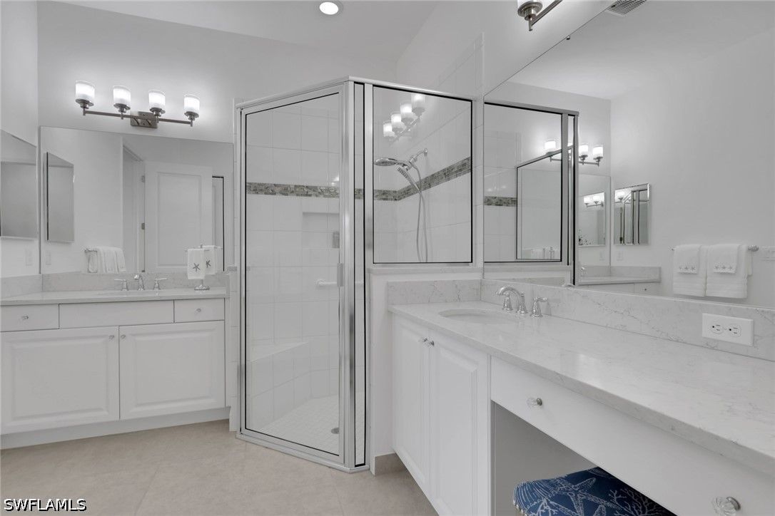 Immaculate “Nantucket” villa in Valencia Bonita, Southwest Florida’s premier 55+ resort-style community. Perfectly positioned on a premium, oversized lakefront lot with an expanded driveway, this residence offers exceptional curb appeal with lush, low-voltage landscape lighting and a welcoming screened entry. Built with IMPACT GLASS throughout, this thoughtfully designed home offers 1,734 square feet under air, featuring 2 bedrooms, 2 baths, a den/office, and a 2-car garage. The private rear screened lanai showcases serene water views—ideal for relaxing or entertaining. The gourmet kitchen is beautifully appointed with quartz countertops, white cabinetry, natural gas cooktop, mosaic tile accents on the peninsula and a breakfast bar with seating for four. The open-concept design flows seamlessly into the dining area and great room, highlighted by sliding glass doors leading to the lanai. The primary suite is a true retreat, featuring a coffered ceiling, tranquil lake views, and two spacious walk-in closets with pocket doors. The en-suite bath offers dual vanities with quartz countertops and a walk-in shower with grab bars. Additional highlights include a guest bedroom with walk-in closet, a den/office with French doors, high-hat lighting, and ceiling fans throughout. Valencia Bonita’s 45,000-square-foot clubhouse delivers an unmatched lifestyle with a grand social hall, indoor/outdoor restaurant and bar, spa and nail salon, resort-style pool, lap and resistance pools, cabanas, and a state-of-the-art fitness center. Residents enjoy tennis, pickleball, bocce, a pro shop, dog parks, billiards, card rooms, a pottery studio, cooking studio, and approximately 50 clubs and activities curated by a full-time lifestyle director.