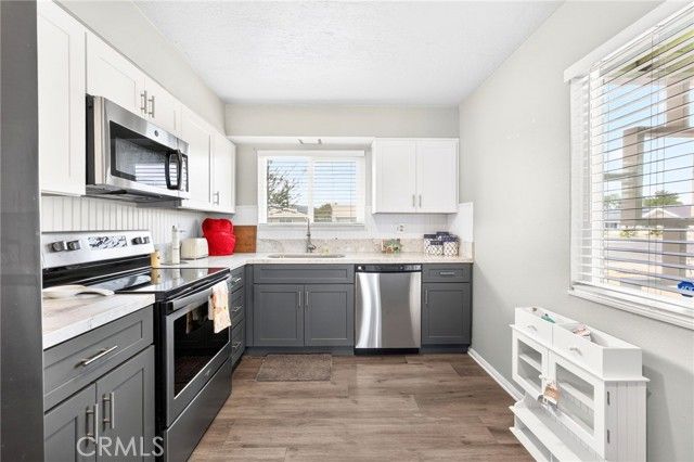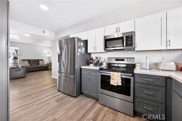 Welcome to this gorgeous and cozy 55+ home located in the heart of Sun City! This recently remodeled, turn-key residence features easy-to-maintain LVP flooring and a newly remodeled, upgraded kitchen equipped with stainless steel appliances. Newer windows enhance energy efficiency and natural light throughout the home. The spacious living room opens to a bright patio sunroom with beautiful views and no rear neighbors, creating the perfect space to relax or entertain. This home offers two bedrooms and two newly remodeled bathrooms, thoughtfully updated for comfort and functionality. Additional highlights include a completely remodeled kitchen, a one-car garage with direct interior access, driveway parking, and a vinyl-fenced backyard with a beautiful view—ideal for weekend BBQs, or enjoying your morning coffee outdoors. Situated in the highly desirable Sun City community, residents enjoy access to HOA amenities including a clubhouse, pool, jacuzzi, and a wide variety of social activities. The HOA conveniently includes: water, sewer, trash, and front yard landscaping. This home is within walking distance to Churches, Walgreens, Stater Bros, Banks, the Post Office, Medical Offices, Restaurants, and Shopping Centers. Don’t miss the opportunity to tour this beautiful home—schedule your showing today!