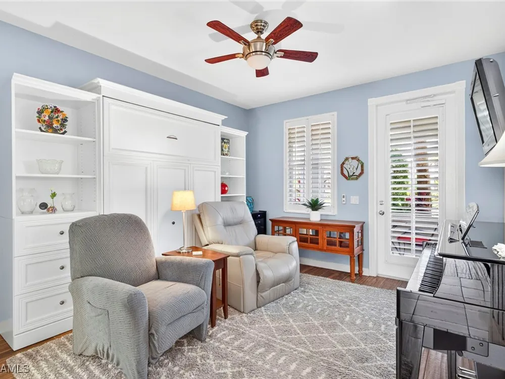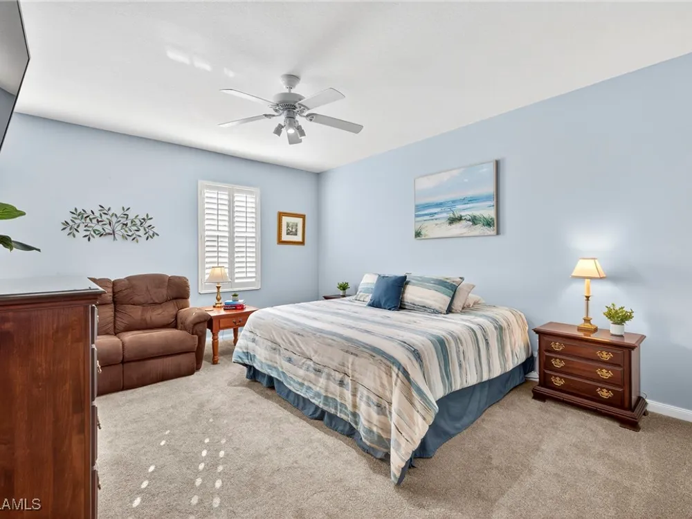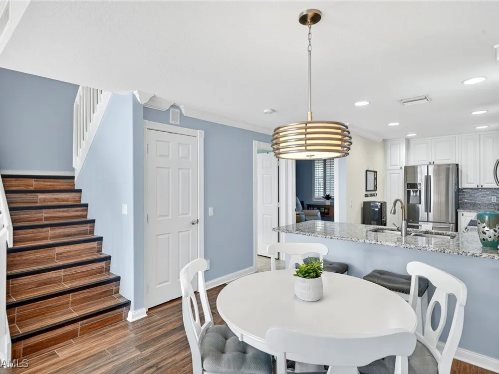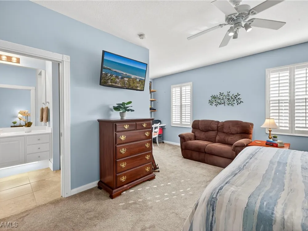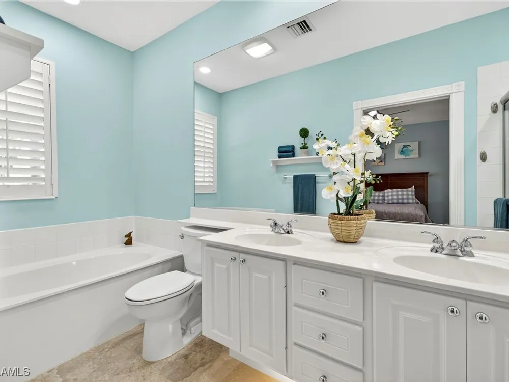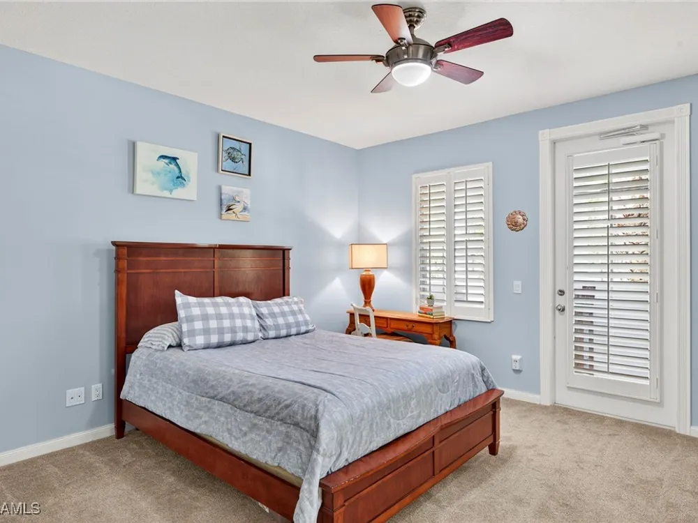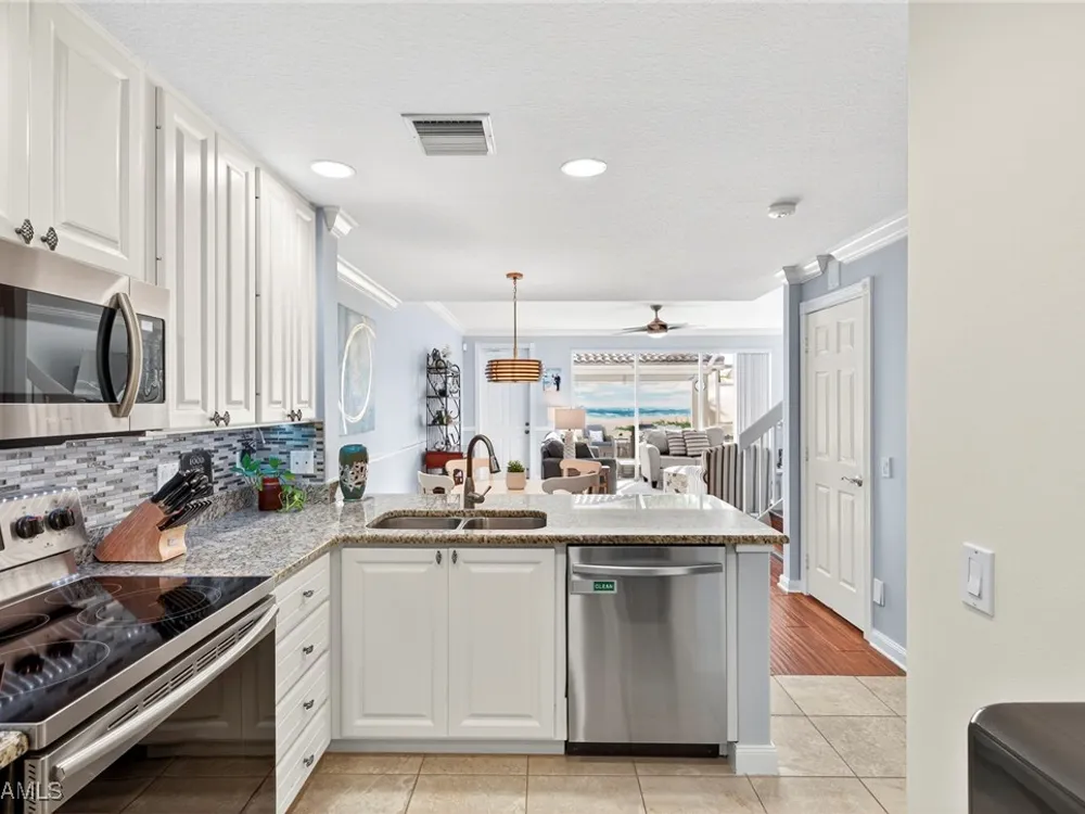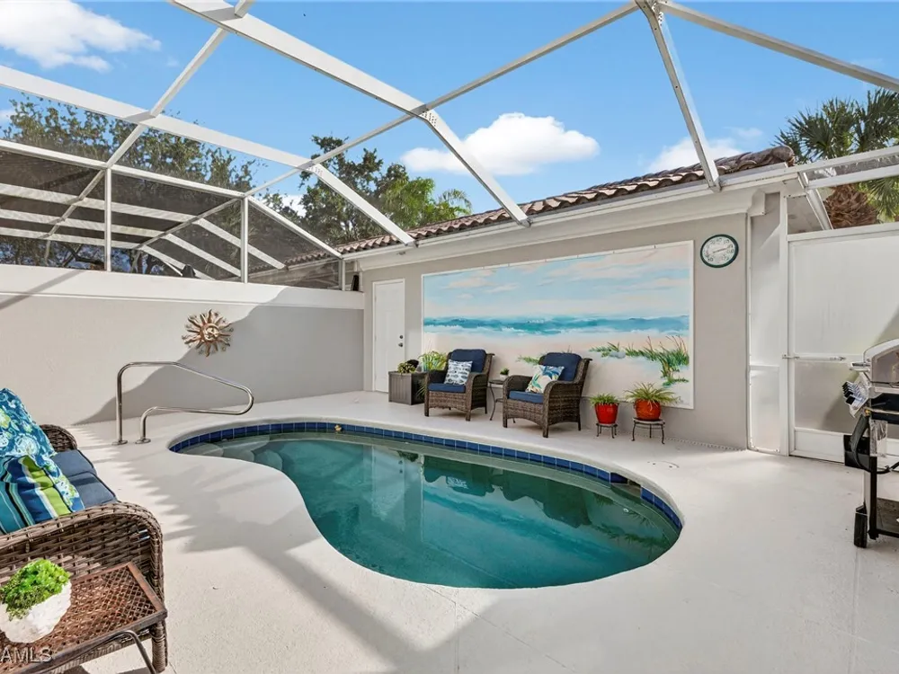 Discover your dream home in sunny Southwest Florida! This beautifully maintained “Cayman” townhouse offers three spacious bedrooms—including a convenient ground-floor suite with a built in Murphy bed and a private porch entry and two upstairs master suites, one featuring its own balcony, 3 full bathrooms and a two-car garage. This property is move-in ready for you to start enjoying the Florida lifestyle. Step inside to find easy to maintain ceramic tile floors on the 1st floor, plantation shutters, and a welcoming Florida color palette accented by crown and chair rail molding. Decorative ceiling fans and stylish light fixtures add comfort and charm throughout the home. The kitchen is perfect for entertaining and family gatherings, boasting island-style granite countertops, ample cabinetry, stainless steel appliances, a modern backsplash, and undercounter lighting for a warm ambiance. The welcoming great room features oversized glass sliding doors leading to the screened lanai, which displays a beautifully hand-painted coastal mural. This space is ideal for enjoying our delightful weather, entertaining guests, relaxing in the heated pool, or unwinding in the shade beneath the electric retractable awning while hosting gatherings with family and friends. Storage is never an issue, thanks to three large walk-in closets with modular organizers, under-stair storage, and plenty of cabinetry in the laundry room. Outside, enjoy fresh paint completed in 2024 and peace of mind with hurricane-ready accordion shutters. To keep you cool new HVAC in 2024. VillageWalk Blvd. is just a short walk, bike or golf cart ride to the amenity rich town center that offers something for everyone: resort style & lap pools, 24/7 fitness center, lighted Har-Tru tennis courts, pickleball center and bocce all with active leagues. In addition, there is a lighted basketball court, tot lot, full-service restaurant w/indoor and outdoor dining, beauty salon, bagel shop, spa, ice cream shop, and lots of planned activities by the full-time activities director. VillageWalk of Bonita is unique with it’s pretty butterfly gardens, miles of lakes, sidewalks, walkways over connecting bridges and impressive wildlife. It’s a great location to our beautiful sandy beaches, SW Florida International Airport, shopping and entertainment destinations. Guard gated, golf cart and pet friendly. Don’t miss your chance to experience the best of Southwest Florida living in this exceptional home!