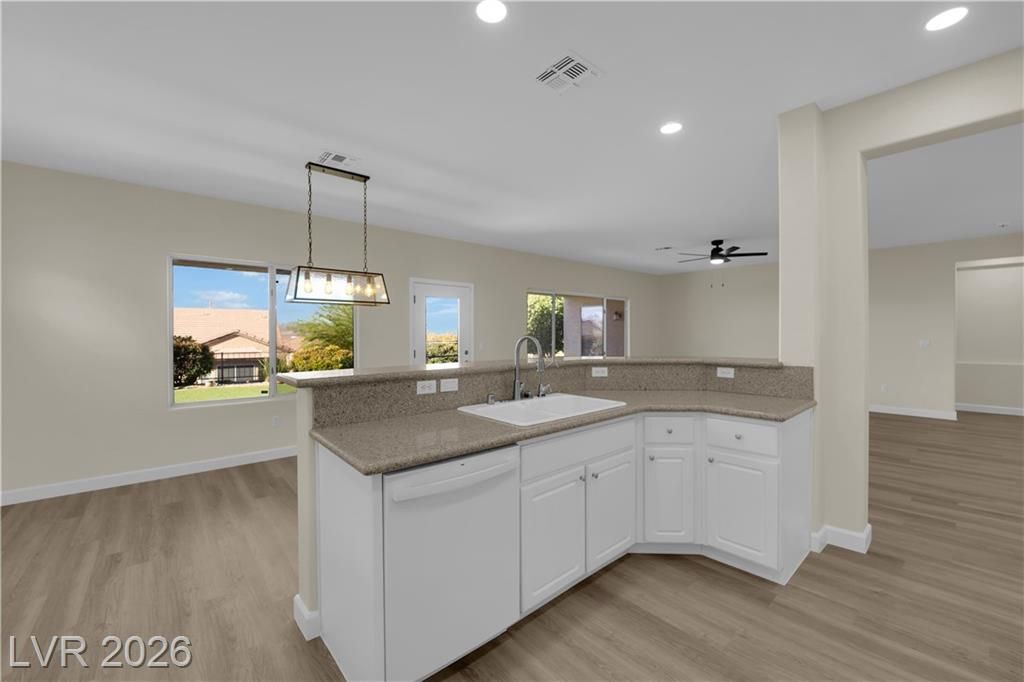 Welcome to this beautifully upgraded Monroe model, perfectly situated on an elevated lot with breathtaking mountain views. This home features luxury vinyl plank flooring throughout, offering both elegance and durability. The spacious kitchen is a chef's dream, complete with a breakfast bar, large island, granite countertops, and all appliances included. Enjoy the convenience of an inside laundry room, and stay comfortable year-round with a newer HVAC unit and ceiling fans in every room. Step outside to your private backyard oasis, featuring a built-in BBQ and a large covered patio—ideal for entertaining or relaxing while taking in the stunning views. A mature fruit tree adds a touch of nature to this serene setting. Don’t miss your chance to own this exceptional home in a vibrant community!
