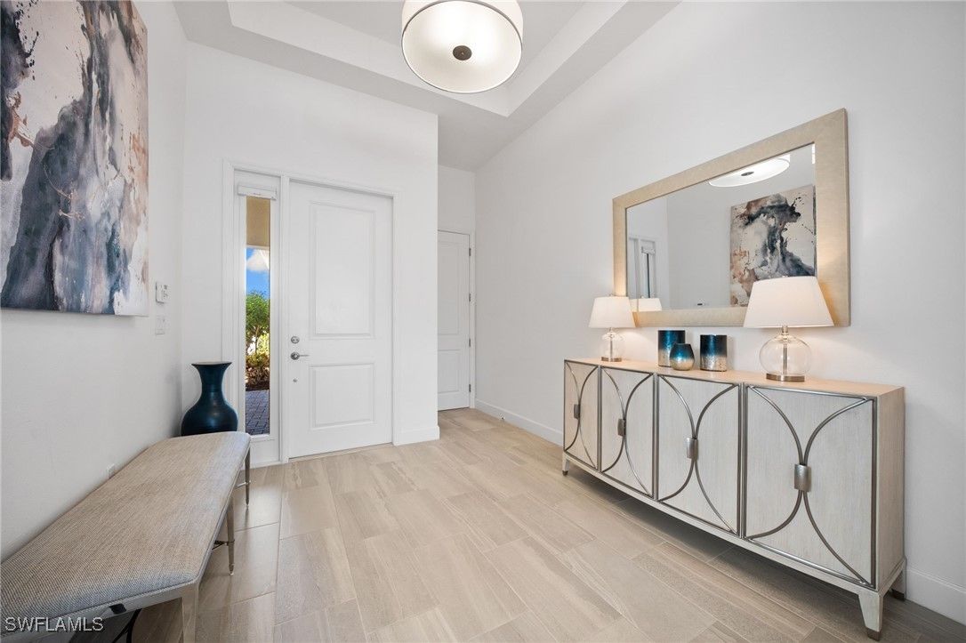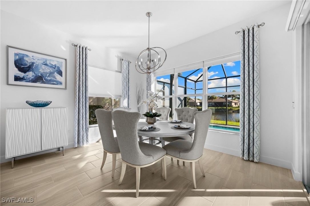 Welcome to luxury living in Valencia Bonita with this highly sought-after Sierra floor plan by GL Homes, ideally positioned on a serene lake view lot. This impeccably upgraded home blends elegant design with resort style comfort, featuring a custom heated saltwater pool perfect for year round enjoyment. Impact resistant hurricane doors and windows provide peace of mind while enhancing energy efficiency and storm protection. Inside, the open concept layout is ideal for both entertaining and everyday living, with upscale finishes and thoughtful upgrades throughout. The seamless indoor-outdoor flow leads to a private backyard oasis overlooking the lake perfect for relaxing or hosting guests. Valencia Bonita offers an unmatched, award winning amenity lifestyle, including pickleball and tennis courts, a full service bar and restaurant, resort style pool, dedicated lap and exercise pools, state of the art fitness center, luxurious spa, and a vibrant social calendar and dog park. Valencia Bonita is not located in a flood zone! *FURNITURE IS NEGOTIABLE*