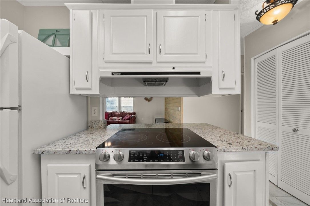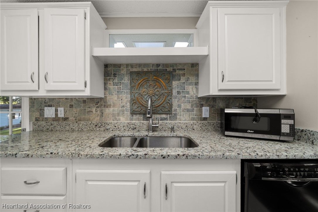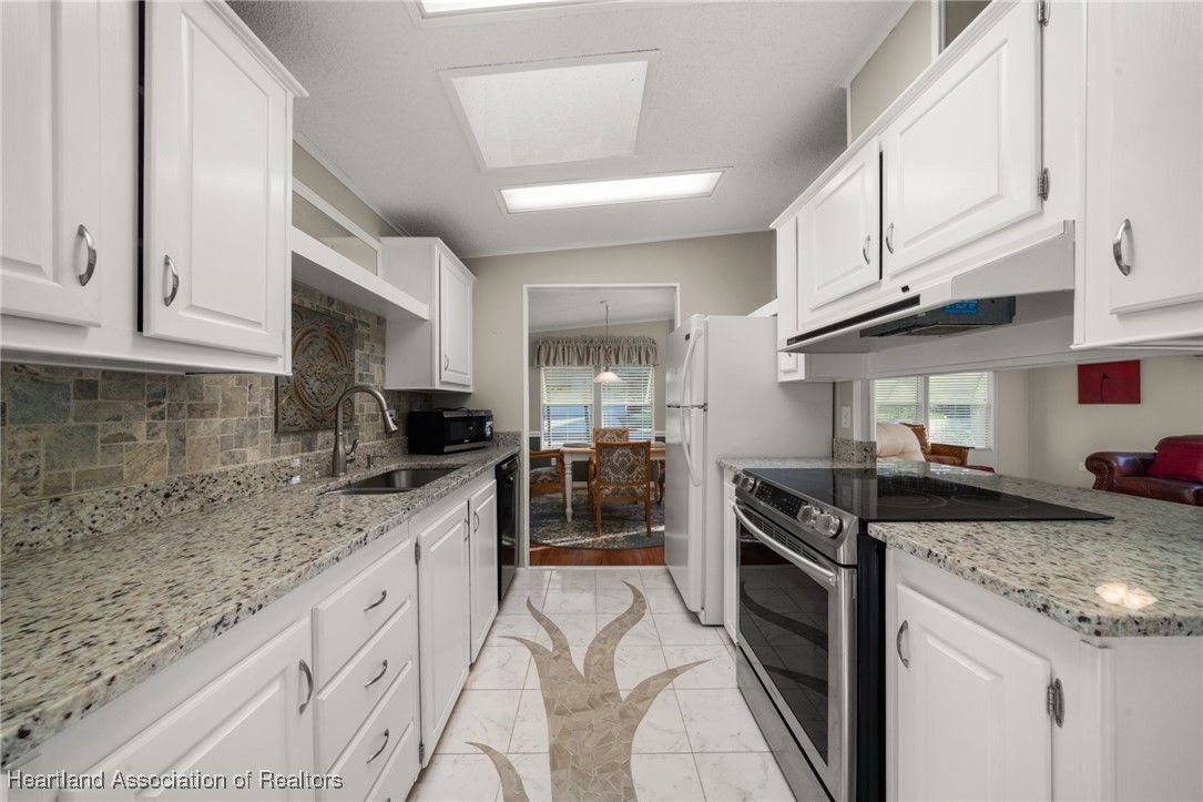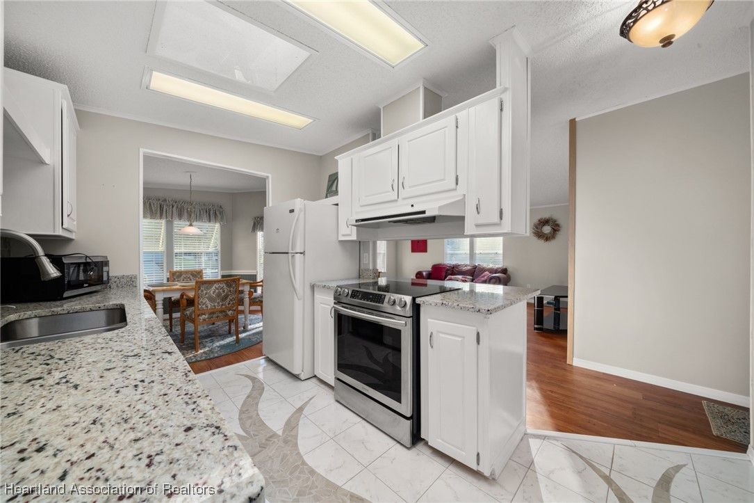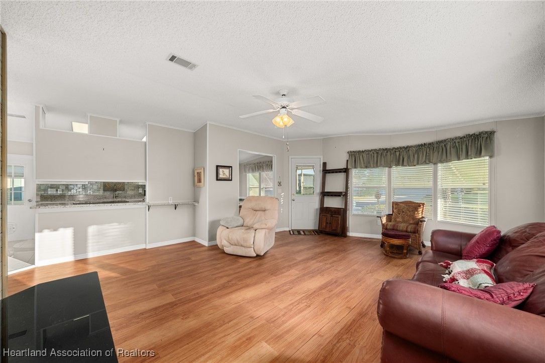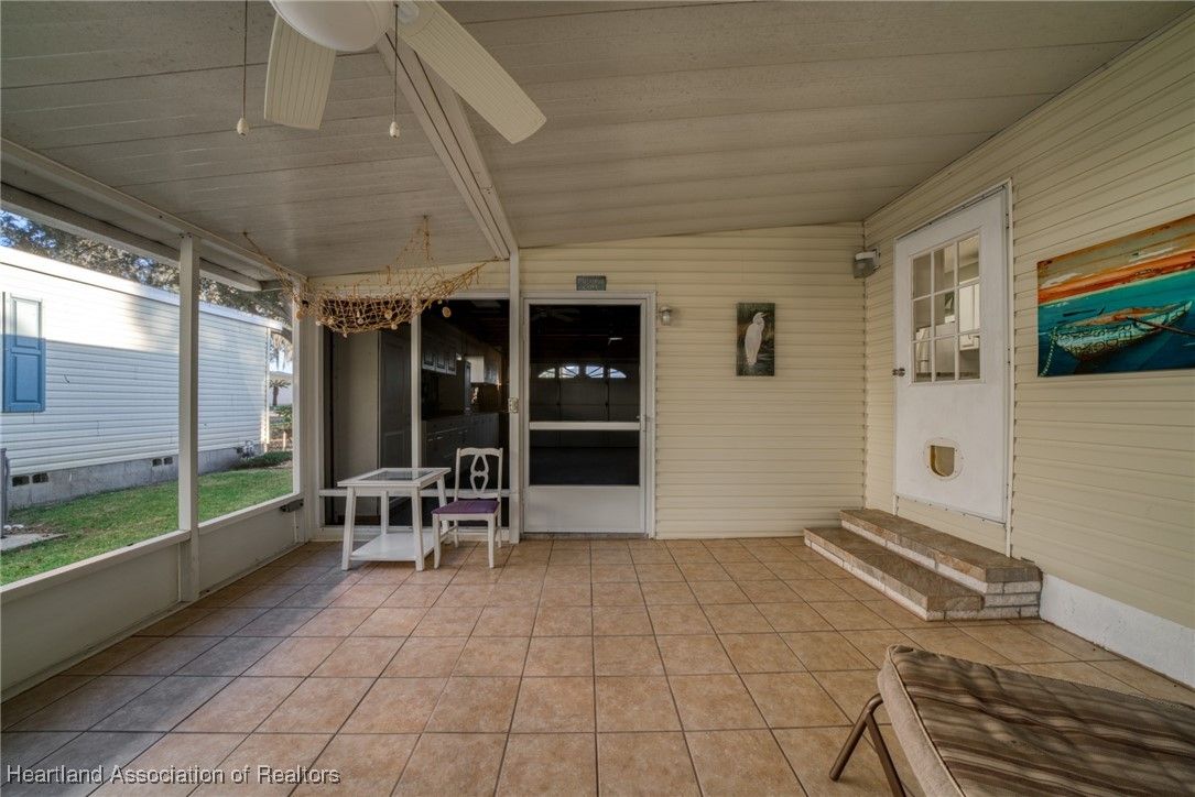 Move-in ready and beautifully updated! This fully furnished 2-bedroom, 2-bath home is located in the popular Marina Cove neighborhood within Highlands Ridge, a premier 55+ golf community. Offering approx. 1,100 sq. ft. of comfortable living space on rented land ($541/month), this home features a remodeled kitchen with granite countertops, stylish new backsplash, and newer appliances. Both bathrooms have been tastefully customized, and new laminate flooring runs throughout for a modern, cohesive feel. Practical upgrades include a new roof in 2021, washer/dryer in a dedicated laundry room, and easy, water-free landscaping for low-maintenance living. Enjoy Florida afternoons on the large screened porch, perfect for relaxing or entertaining. Truly turn-key with tasteful furnishings included, and offering the lifestyle and amenities Highlands Ridge is known for. Golf, clubhouse, and resort-style living right at your doorstep!