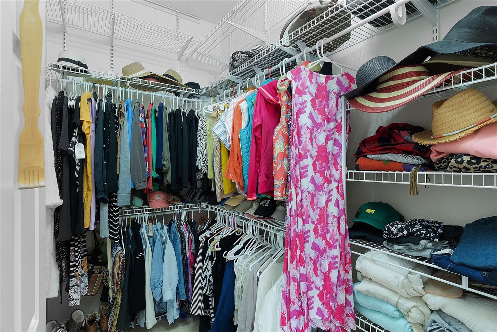 - Ceiling Fan(s), High Ceilings, Living/Dining Room, Open Floorplan, Main Level Primary, Solid Surface Counters, Stone Counters, Thermostat, Walk-In Closet(s), Window Treatments