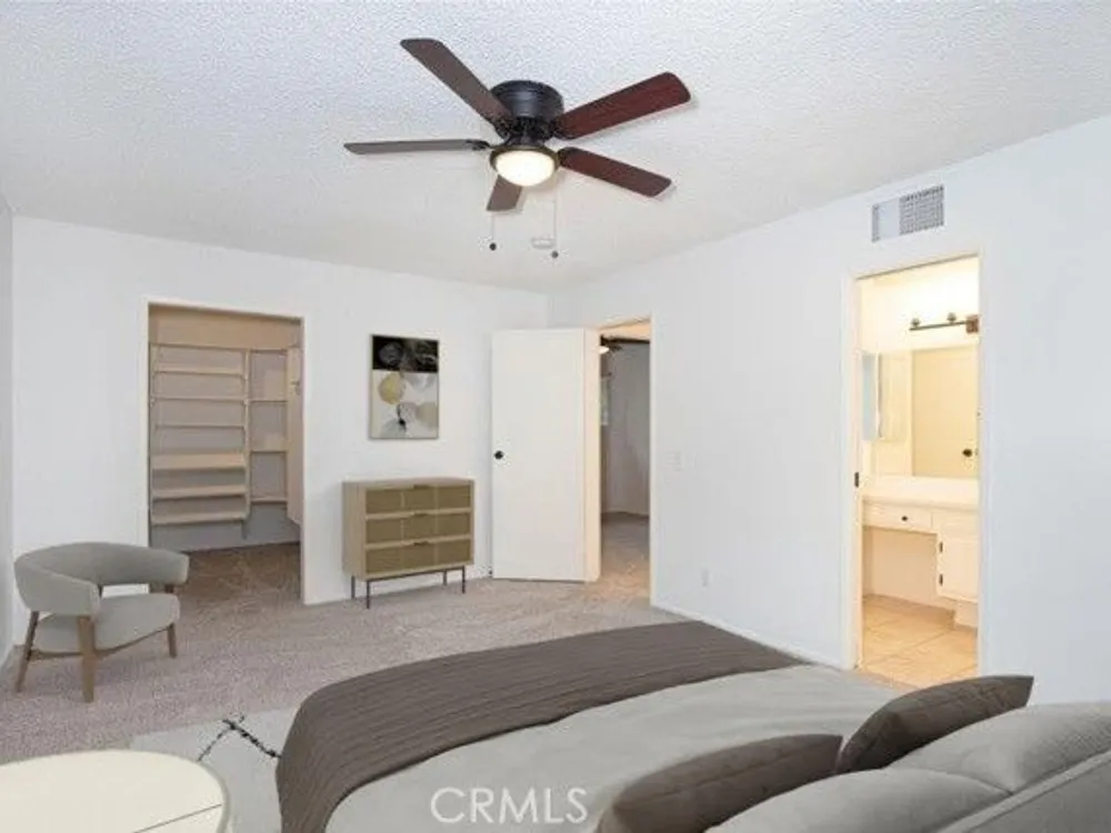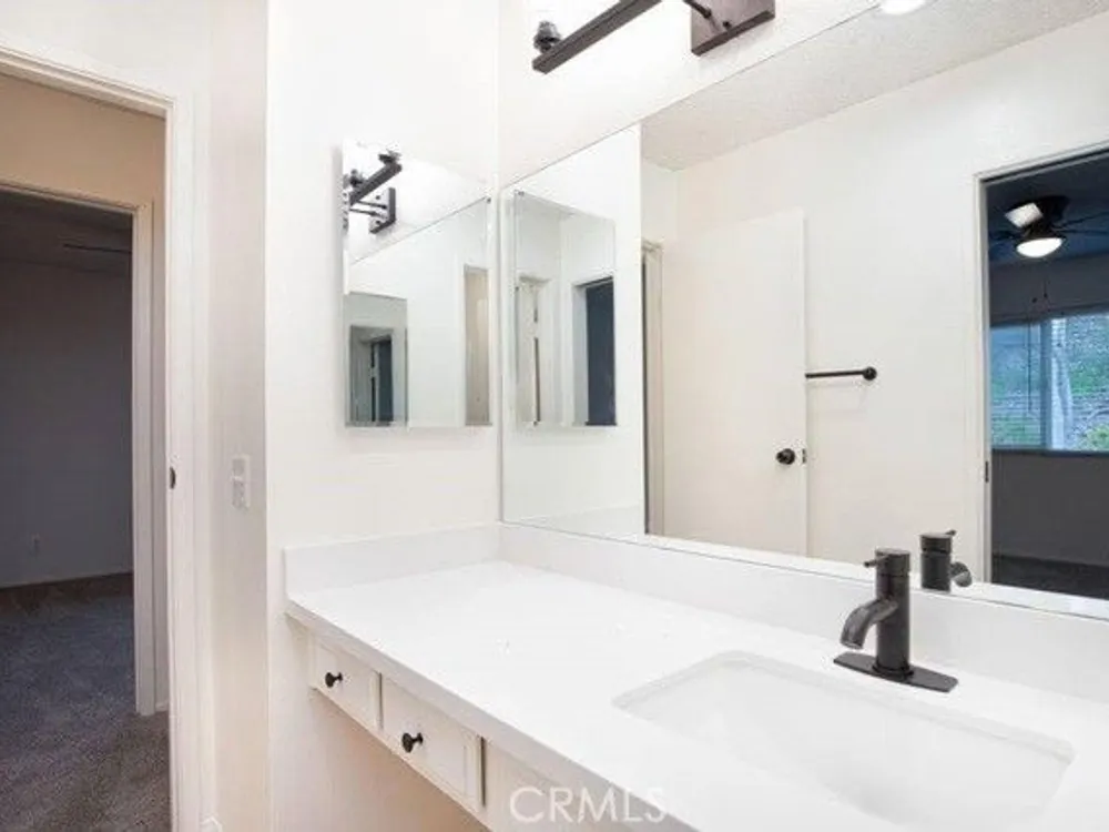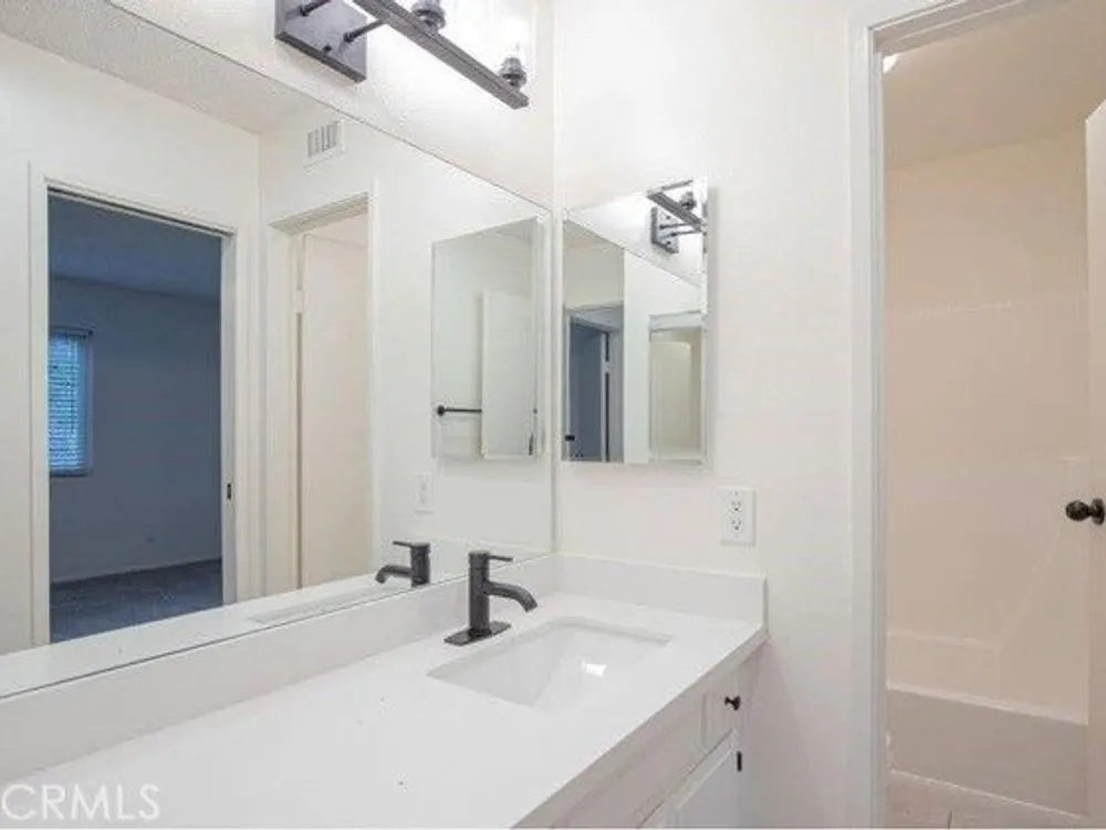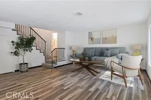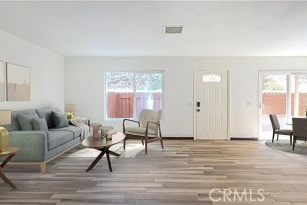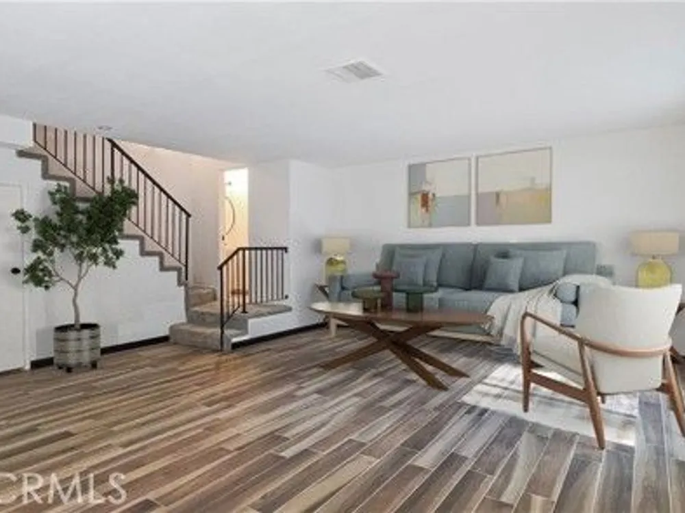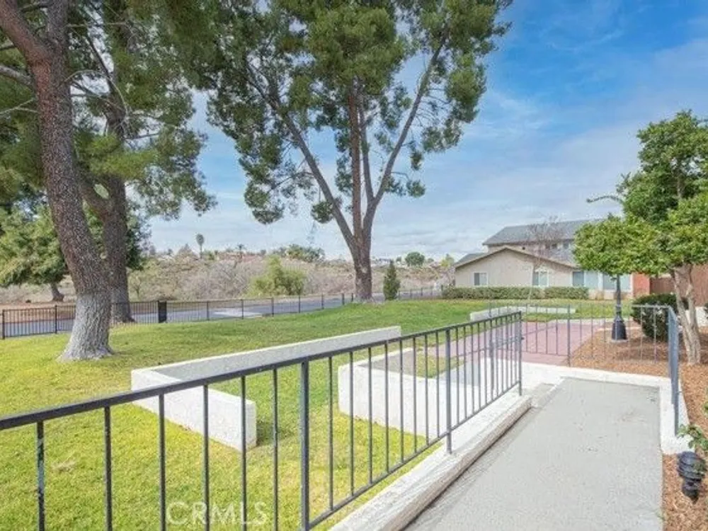 Adorable and Affordable 2 story, 2 bedroom condo in quiet Murrieta neighborhood has been updated and is move-in ready. Private entry, fenced patio off of kitchen with sliding glass door. New plank tile in entry and living room. Owner to leave extra tile for finishing kitchen and dining areas. White cabinetry with new black hardware, quartz countertops with stainless steel farm sink. Newer stainless steel appliances. Washer and Dryer hook-ups off kitchen for convenience. Half-bath on stair case landing for easy access. Extra large storage under stairs. Built in niche in living room can be used for work/craft space. Upstairs are the primary bedroom with private entrance into full bathroom with white cabinetry and quartz countertop, walk-in closet with built-in organizers. Secondary bedroom has nice natural lighting and is spacious. Both bedrooms have ceiling fans/lights. Comes with Nest thermostat. Private lockable storage, shared garage and small community park area. Great opportunity for first time buyers or investors. Close to I-15/I-215, shopping, golfing, medical facilities and wine country close by.