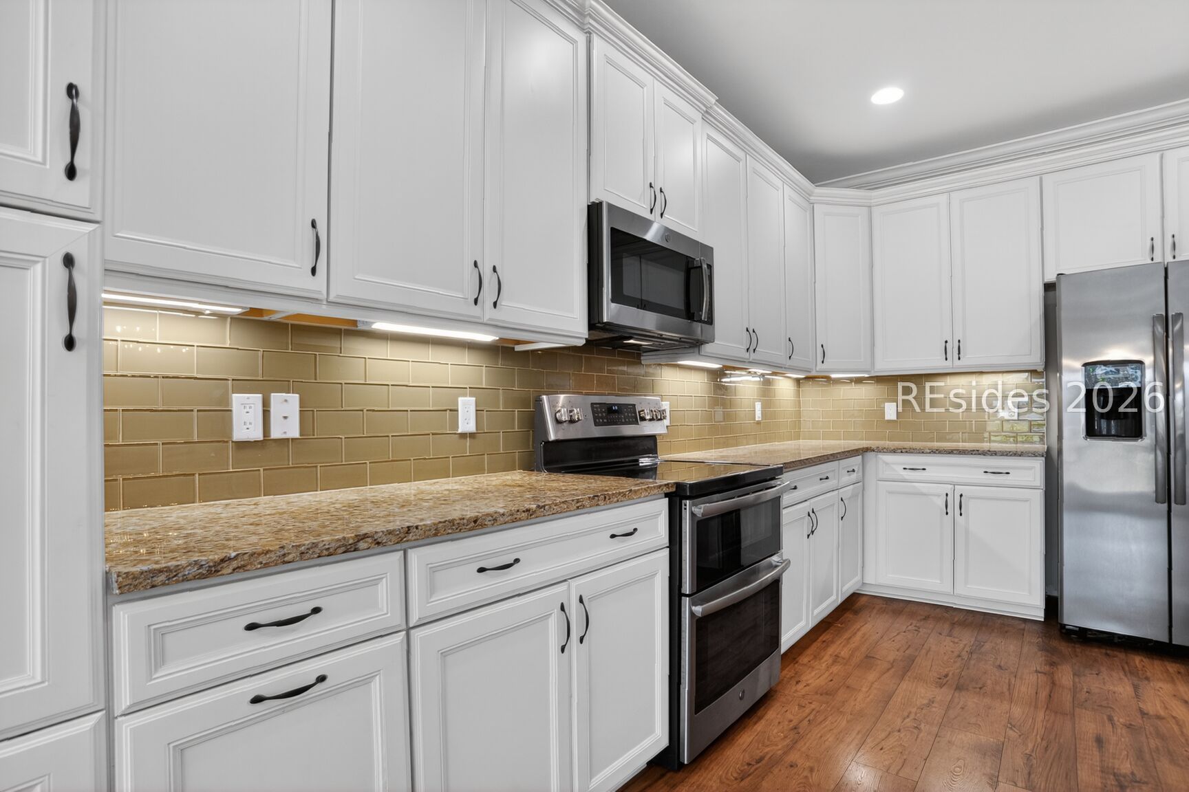 - Double Oven, Dryer, Disposal, Microwave, Range, Refrigerator, Washer, Tankless Water Heater