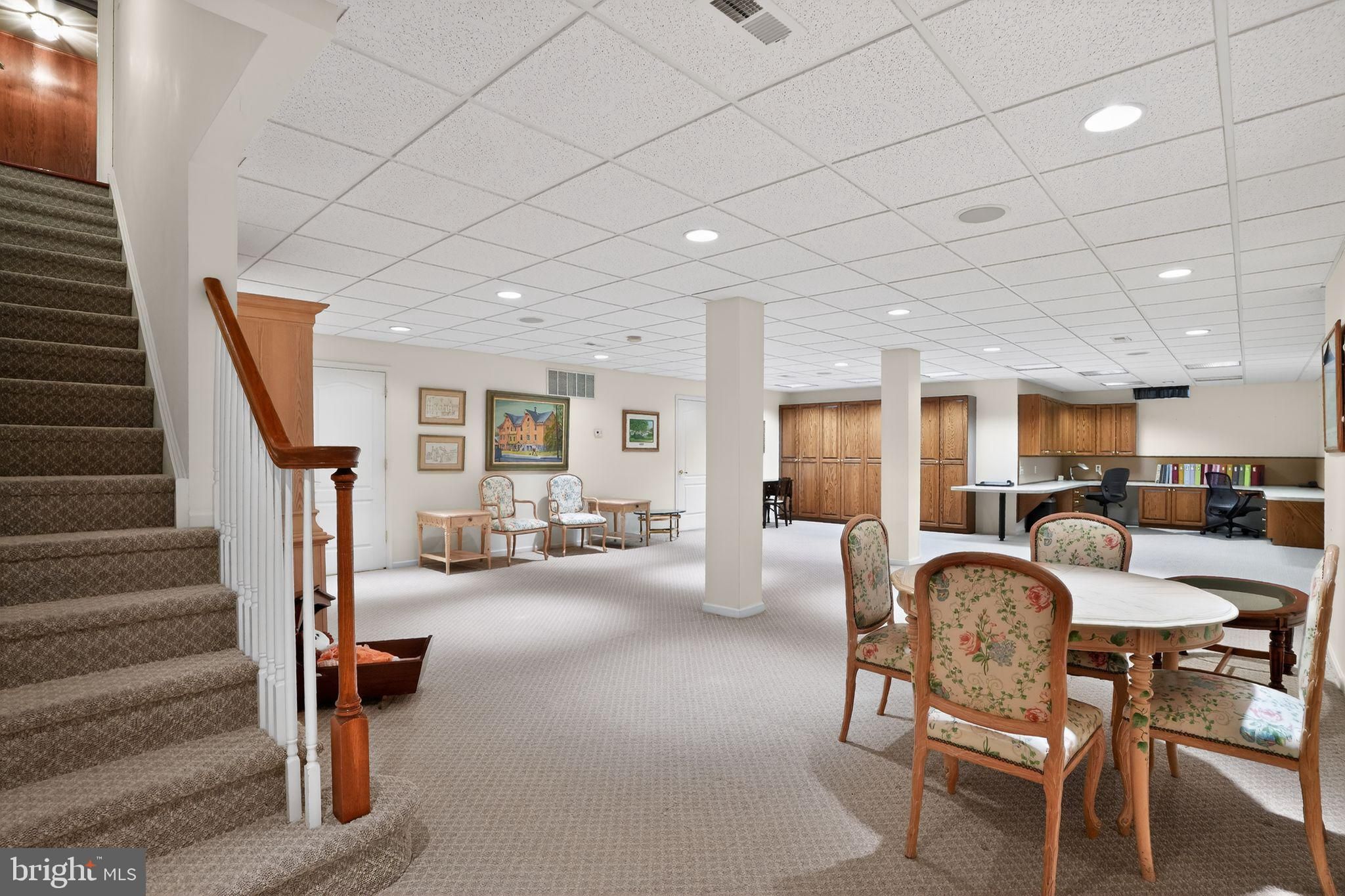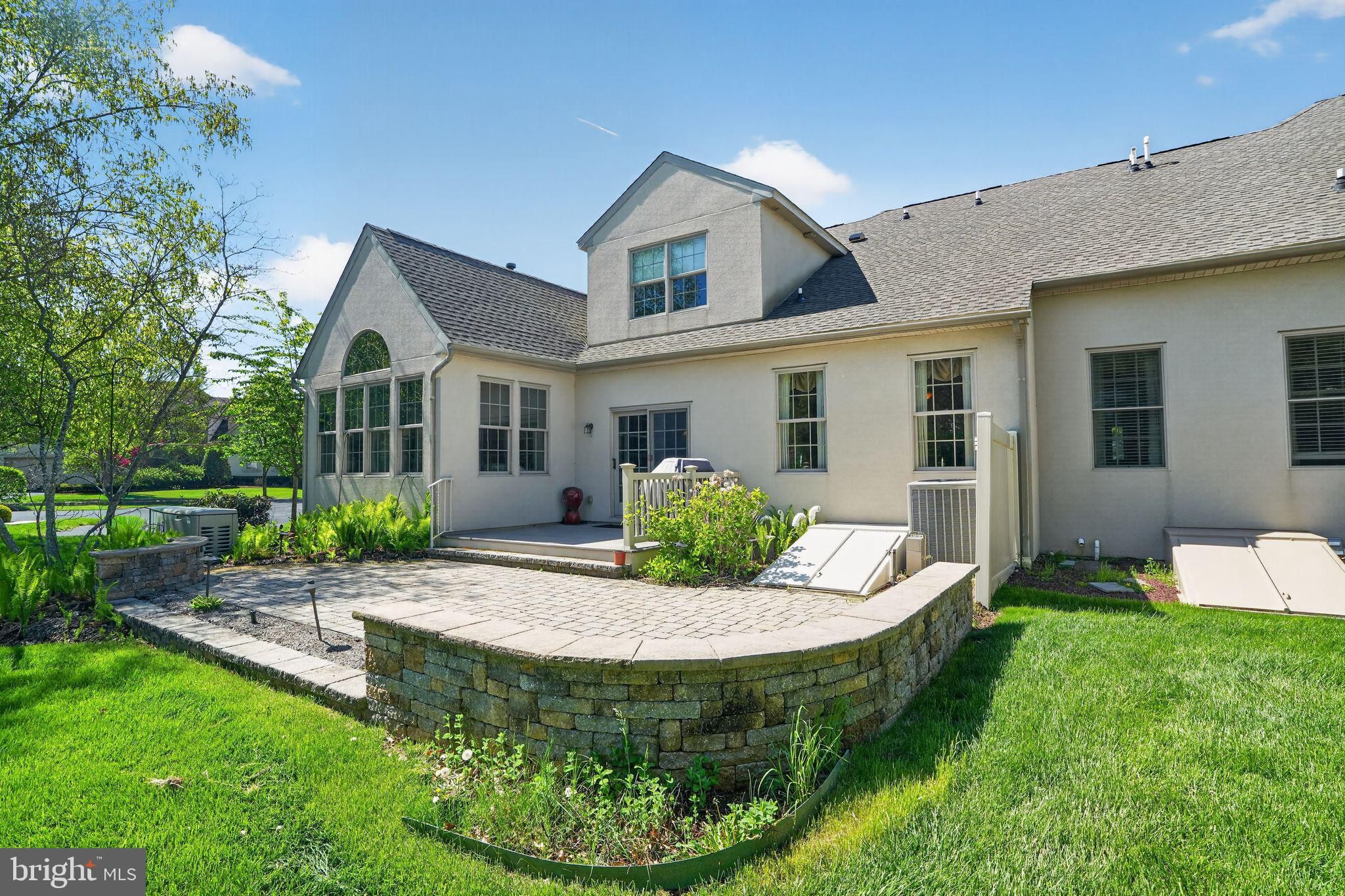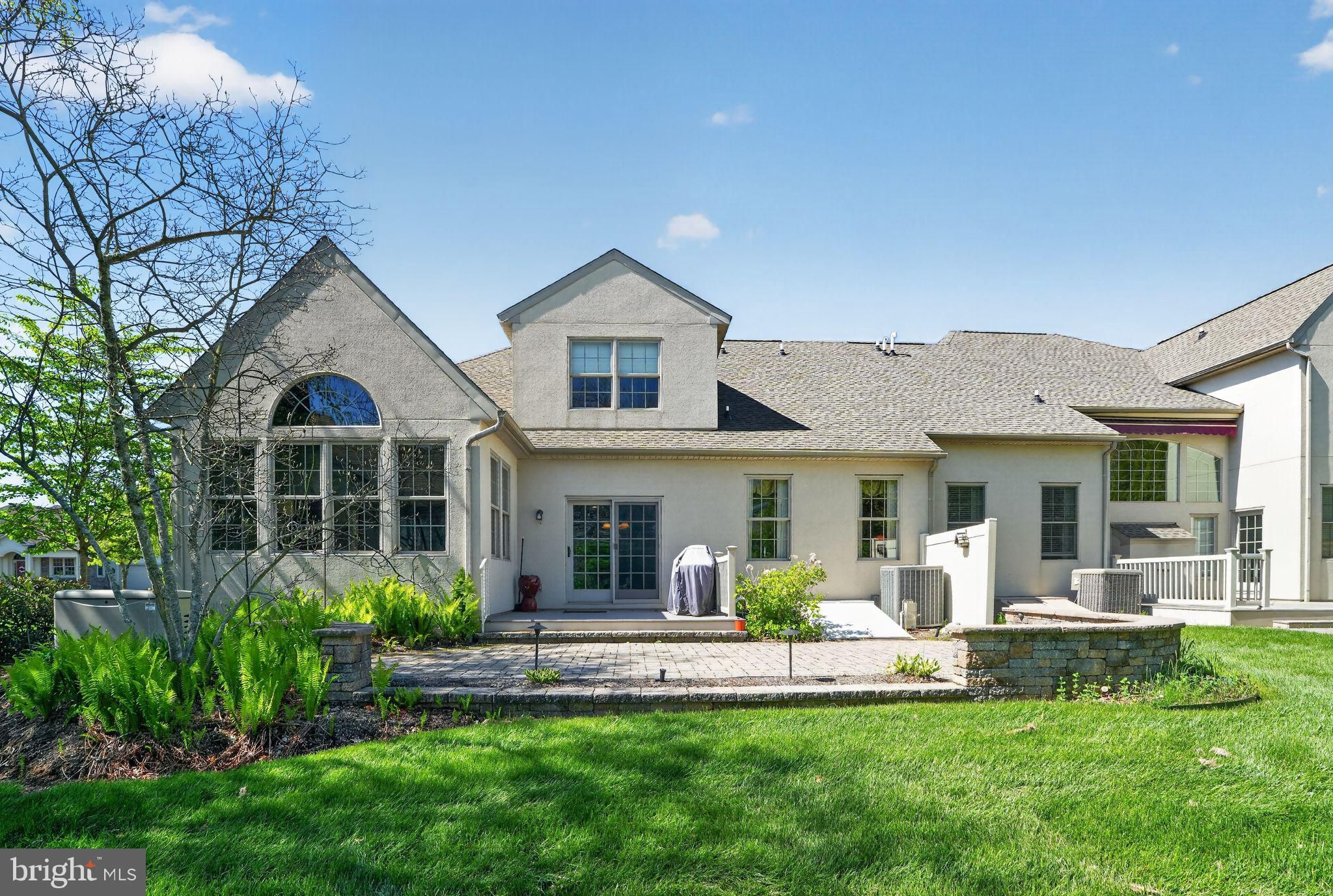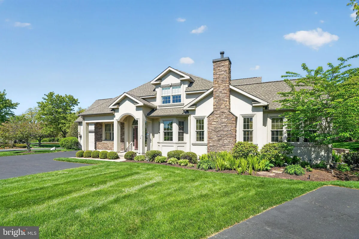 Wonderful, sought-after Indian Valley Greens, the premier 55+ community adjacent to the Indian Valley Country Club, renowned for its stunning golf course. sets the stage for 285 Country Club Drive. From the moment you enter, this beautifully maintained end-unit carriage home makes a lasting impression with its dramatic two-story foyer, highlighted by a palladium window, elegant chandelier, detailed wainscoting, and rich cherry wide-plank hardwood flooring that flows throughout the first and second levels. Designed for both everyday living and upscale entertaining, the home offers a seamless blend of open spaces and refined finishes. Just off the foyer, a private library or sitting room with double glass doors, crown molding, recessed lighting, and built-in ceiling speakers provides the perfect work-from-home or relaxation space. The formal dining room is equally impressive, featuring a walk-in bay window, classic moldings, and timeless architectural details. At the heart of the home, the welcoming great room offers a cozy gas fireplace, built-in entertainment center with surround sound, and an inviting atmosphere for gathering. Natural light fills the stunning solarium, complete with a vaulted ceiling, palladium window, and ceiling fan—an ideal space to unwind. The expansive gourmet kitchen is thoughtfully designed with cherry cabinetry, granite countertops, ceramic tile backsplash, a center island with sink, and high-end stainless steel appliances, including a Fisher & Paykel double drawer dishwasher, 5-burner gas cooktop, and new double ovens. The adjoining breakfast area opens to a Trex deck and brick paver patio with retaining wall, creating a perfect indoor-outdoor flow. Convenience meets luxury with a custom elevator servicing all three levels. The main-level primary suite is a true retreat, featuring a spacious bedroom with tray ceiling and a spa-inspired bath complete with heated floors, double vanity, jetted soaking tub, frameless glass shower, and multiple closets, including a walk-in. The convenient powder room boasts bead-boarding half wall.. The spacious laundry includes cabinetry, built-in ironing board plus washer and dryer. Upstairs, a versatile loft area provides additional living space, along with two generously sized bedrooms, a full bath, and a large unfinished walk-in attic offering excellent storage or future expansion potential. The 1,400 sq ft finished lower level significantly expands the home’s functionality, featuring a large recreation area with surround sound, a dedicated office with built-in cabinetry, a fully equipped workshop with outside access, and additional finished storage space with a second refrigerator and freezer. A powder room and unfinished utility area with sump pump and alarm system complete this level. Additional highlights include approximately 3,025 square feet of living space, a stucco and stone exterior, new roof, 9-foot ceilings, custom moldings, newer cherry wide plank hardwood flooring throughout, central vacuum, automatic blinds, holiday lighting package, and a Kohler whole-house generator. A two-car attached garage adds everyday convenience, while stucco remediation completed in 2013 provides peace of mind. Set on a premium lot, that gives the owner a sense of privacy and serenity .This exceptional home combines quality craftsmanship, thoughtful upgrades, and spacious design in a highly desirable setting. In close proximity to the charming Villages of Skippack and Lederach plus convenient to major roads.