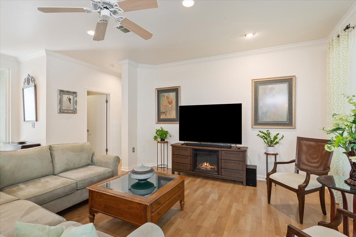 - Ceiling Fan(s), Crown Molding, Double Vanity, Granite Counters, Main Level Primary, NoInteriorSteps, Open Floorplan, Pantry, Recessed Lighting, Walk-In Closet(s)