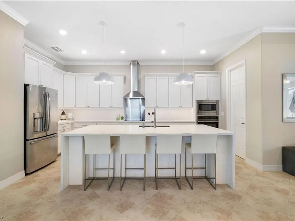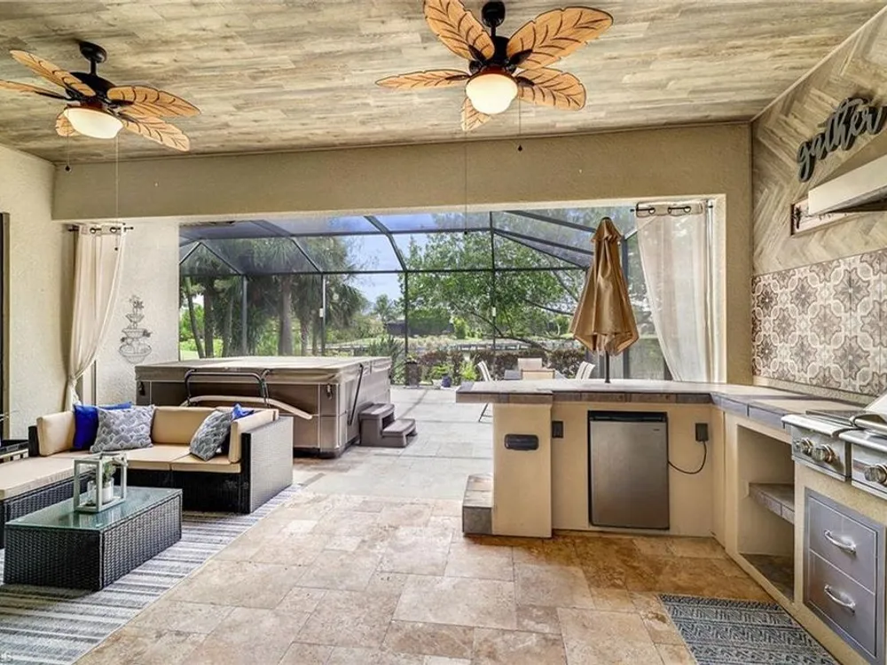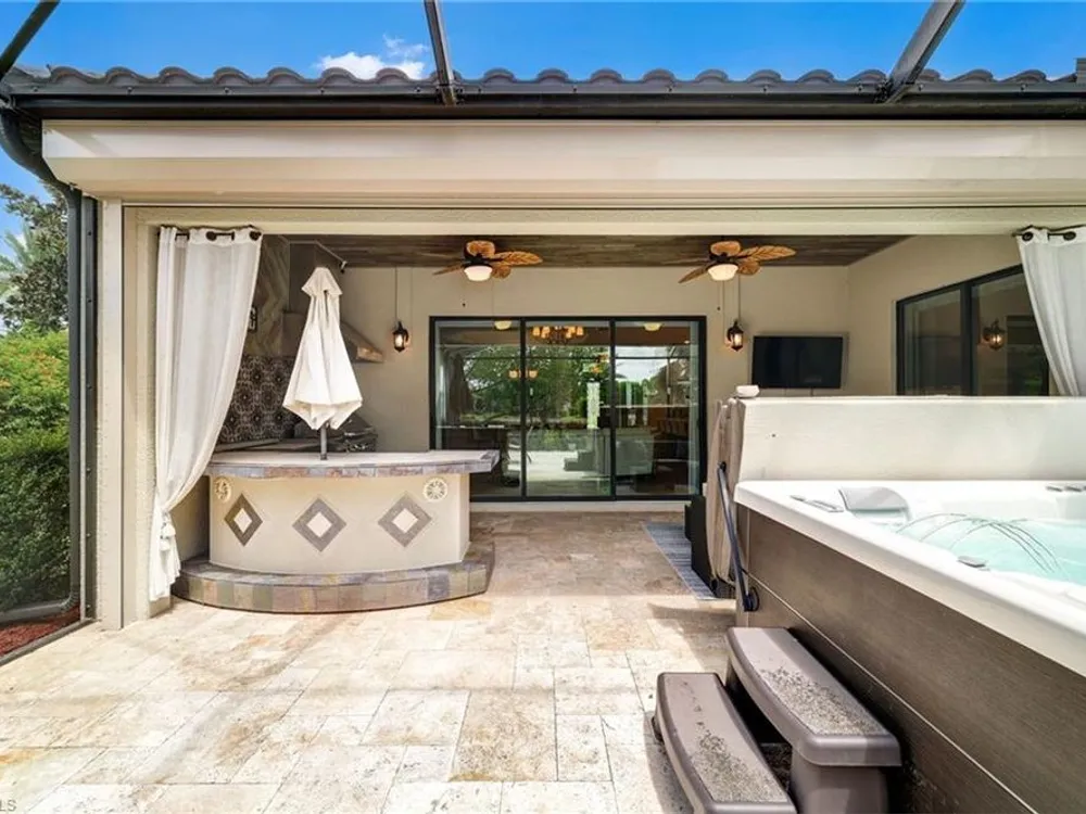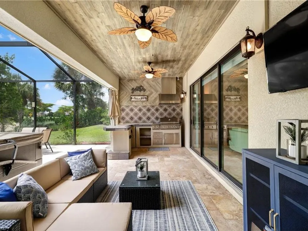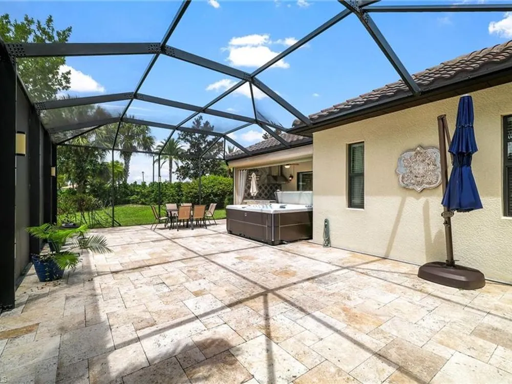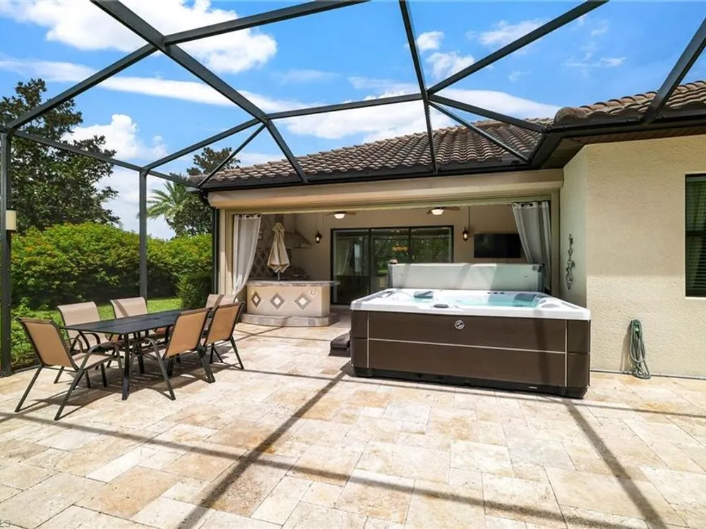 GOLF MEMBERSHIP INCLUDED. This "Maria" will MARVEL, offering a true blend of luxury and comfort, and it is offered "Turnkey" furnished. The kitchen is the heart of the home and has been re-modeled and highlighted by the huge "Waterfall" center island. The 4 Bedrooms have been upgraded with luxury vinyl plank floors. Step outside and find a private oasis set by nature, as the home is centered with a western lake view and lush landscaping. Entertain effortlessly with a customized summer kitchen and bar built by "Paradise Grills," and an oversized screened-in lanai, finished with a travertine deck. The home also features re-modeled bathrooms showcasing Luxurious Quartz Countertops, a built-in Murphy Bed in the 4th bedroom/Flex Room, Coffered Tray Ceilings, Custom Wainscotting Accent Walls, Custom Window Treatments, an Automatic Roll Down Storm Shutter at the Lanai, Impact Rated Windows, TESLA Charger, a Central Vacuum System, and upgraded lighting and fans. This home has it all! Make it yours before someone else does! BONUS: not in a flood-zone so flood insurance is not mandatory. Bonita National has the best amenities in Southwest Florida highlighted by the resort-style pool with their showstopping rock waterfall and poolside bar and grill, championship-style golf with an over-sized practice facility and recently upgraded short game area, grand clubhouse with formal and informal dining, golf pro shop, card rooms, 8 Har-Tru lighted tennis courts, full service spa, and large fitness center. Located in the heart of SWFL, close to Bonita Beach, dining, shopping, RSW Airport, and the upcoming “Midtown at Bonita.”