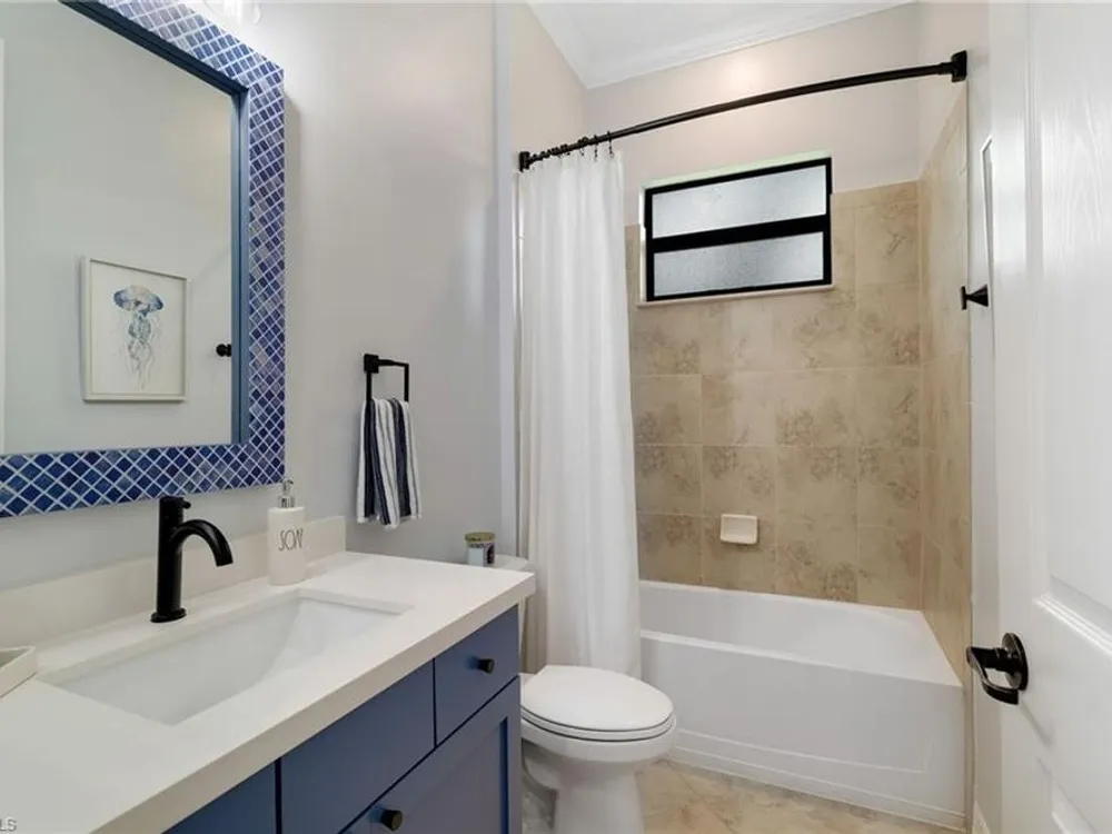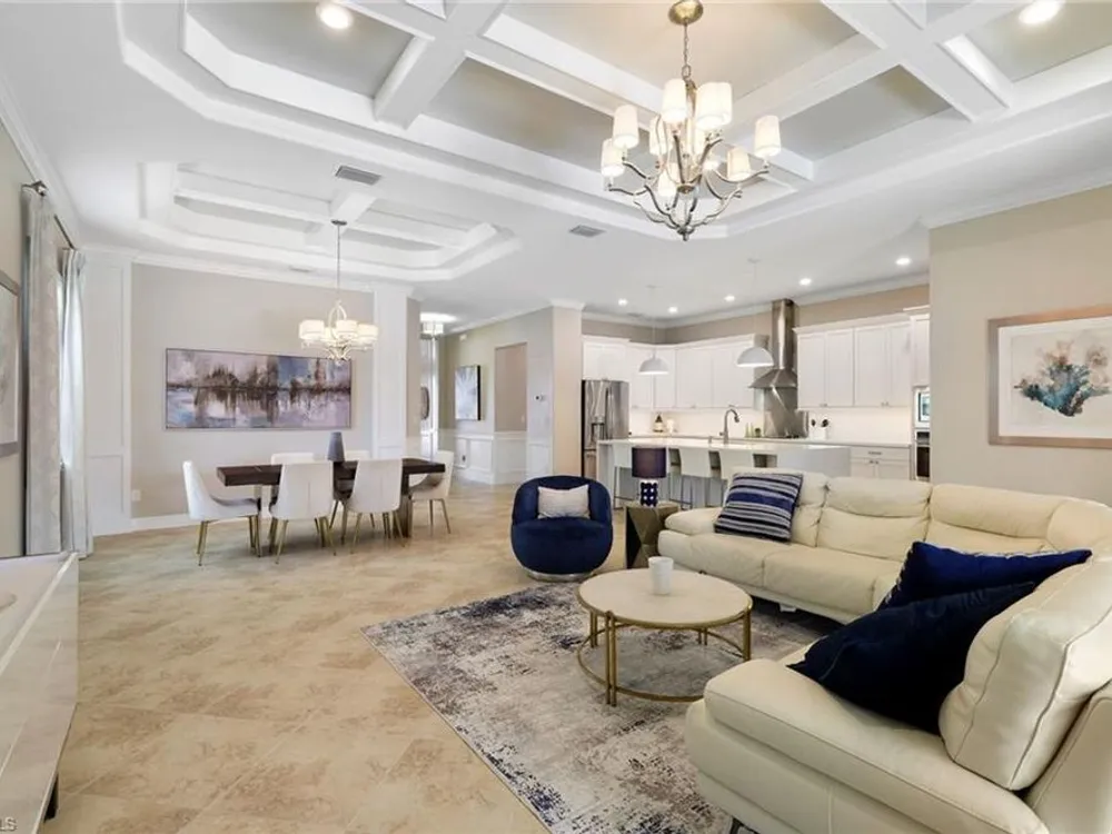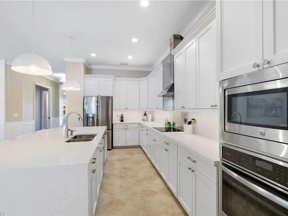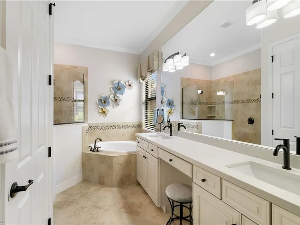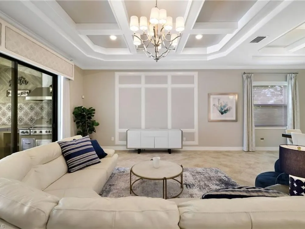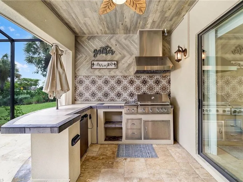 GOLF MEMBERSHIP INCLUDED. This "Maria" will MARVEL, offering a true blend of luxury and comfort, and it is offered "Turnkey" furnished. The kitchen is the heart of the home and has been re-modeled and highlighted by the huge "Waterfall" center island. The 4 Bedrooms have been upgraded with luxury vinyl plank floors. Step outside and find a private oasis set by nature, as the home is centered with a western lake view and lush landscaping. Entertain effortlessly with a customized summer kitchen and bar built by "Paradise Grills," and an oversized screened-in lanai, finished with a travertine deck. The home also features re-modeled bathrooms showcasing Luxurious Quartz Countertops, a built-in Murphy Bed in the 4th bedroom/Flex Room, Coffered Tray Ceilings, Custom Wainscotting Accent Walls, Custom Window Treatments, an Automatic Roll Down Storm Shutter at the Lanai, Impact Rated Windows, TESLA Charger, a Central Vacuum System, and upgraded lighting and fans. This home has it all! Make it yours before someone else does! BONUS: not in a flood-zone so flood insurance is not mandatory. Bonita National has the best amenities in Southwest Florida highlighted by the resort-style pool with their showstopping rock waterfall and poolside bar and grill, championship-style golf with an over-sized practice facility and recently upgraded short game area, grand clubhouse with formal and informal dining, golf pro shop, card rooms, 8 Har-Tru lighted tennis courts, full service spa, and large fitness center. Located in the heart of SWFL, close to Bonita Beach, dining, shopping, RSW Airport, and the upcoming “Midtown at Bonita.”