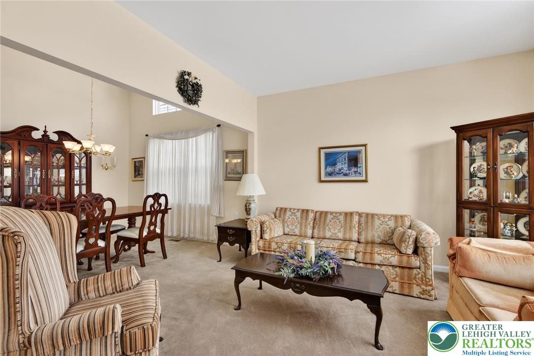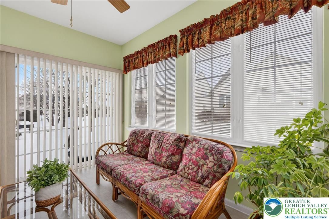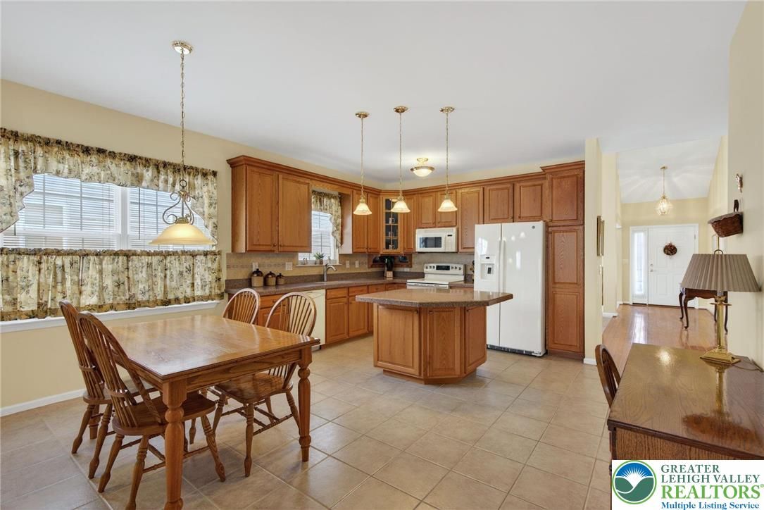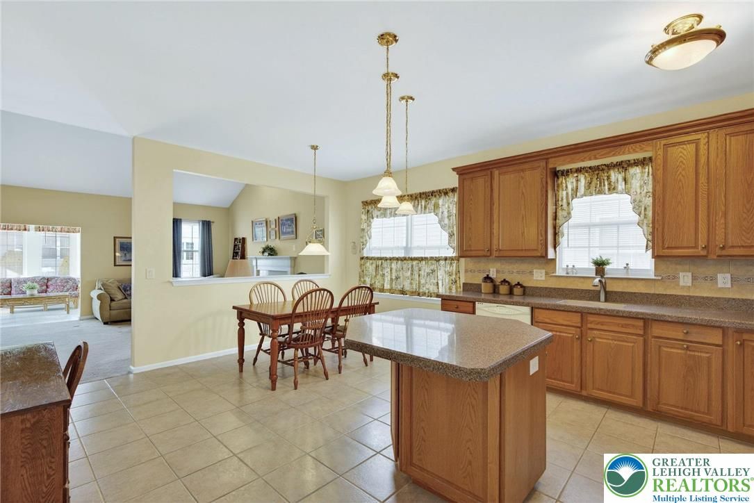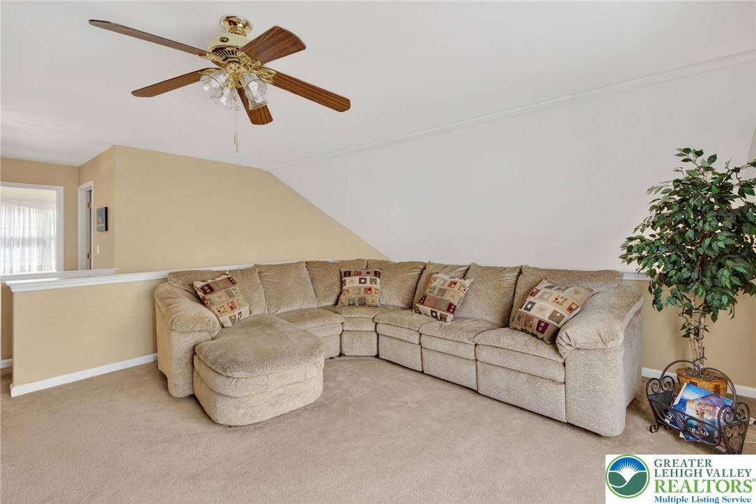 Welcome to Legacy Oaks, a 55+ community in Lower Macungie Township. This well maintained home offers 3 bedrooms and 3 bathrooms and is one of the larger models in the neighborhood. The property includes driveway parking and a 2 car garage. Inside, the foyer opens to hardwood floors and an open flow into the living and dining rooms. The kitchen features updated appliances, tile flooring, quartz countertops, a center island, and an eat in area. Open to the kitchen, the family room includes a gas fireplace and provides a comfortable gathering space. The family room opens directly to a bright four season sunroom, which offers access to the rear patio. The first floor includes a spacious primary suite with two closets, including a walk in closet with organizers, along with an en suite bath featuring a Jacuzzi tub. A second bedroom and a conveniently located half bath are also on this level. The laundry room is located on the main floor and provides direct access to the garage. Upstairs, a clean and open loft overlooks the main living space and is complemented by a finished walk in storage room, an additional bedroom, and a full bathroom. The full basement offers substantial storage and flexibility for future use. Residents of Legacy Oaks have access to community amenities including a swimming pool, tennis and pickleball courts, walking paths, a library, and an exercise room.