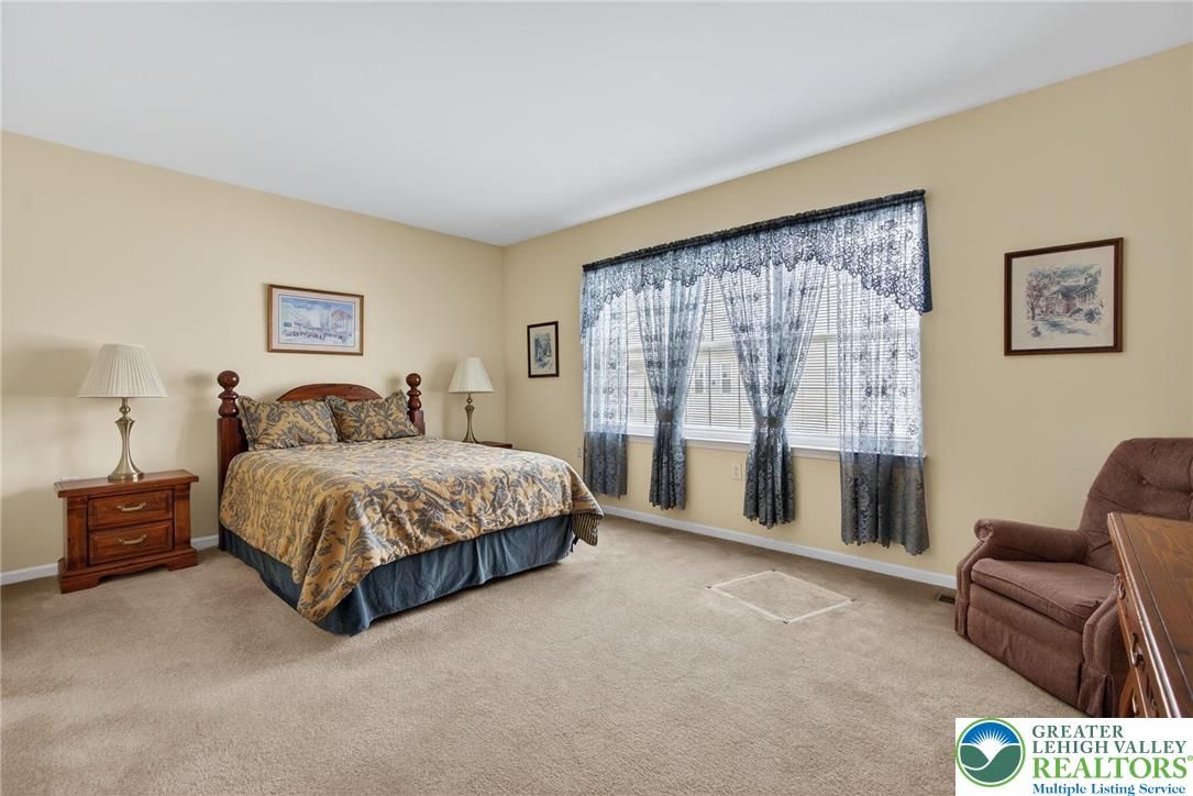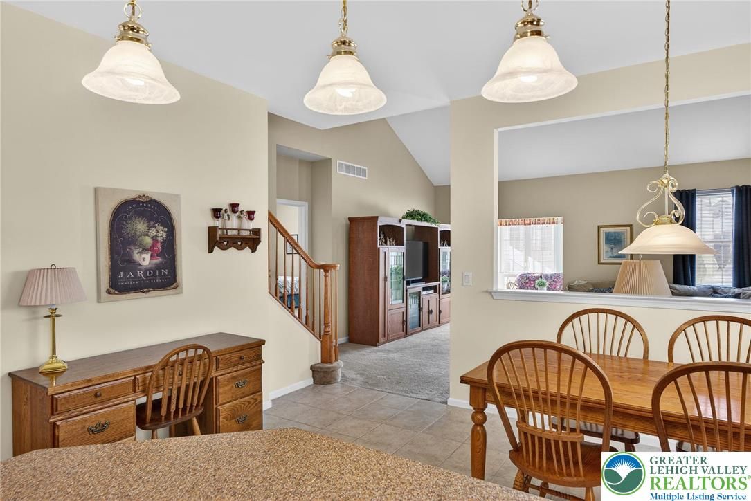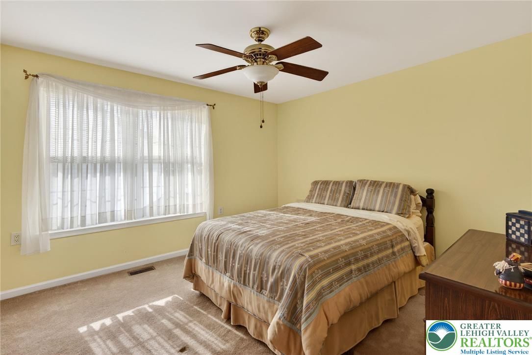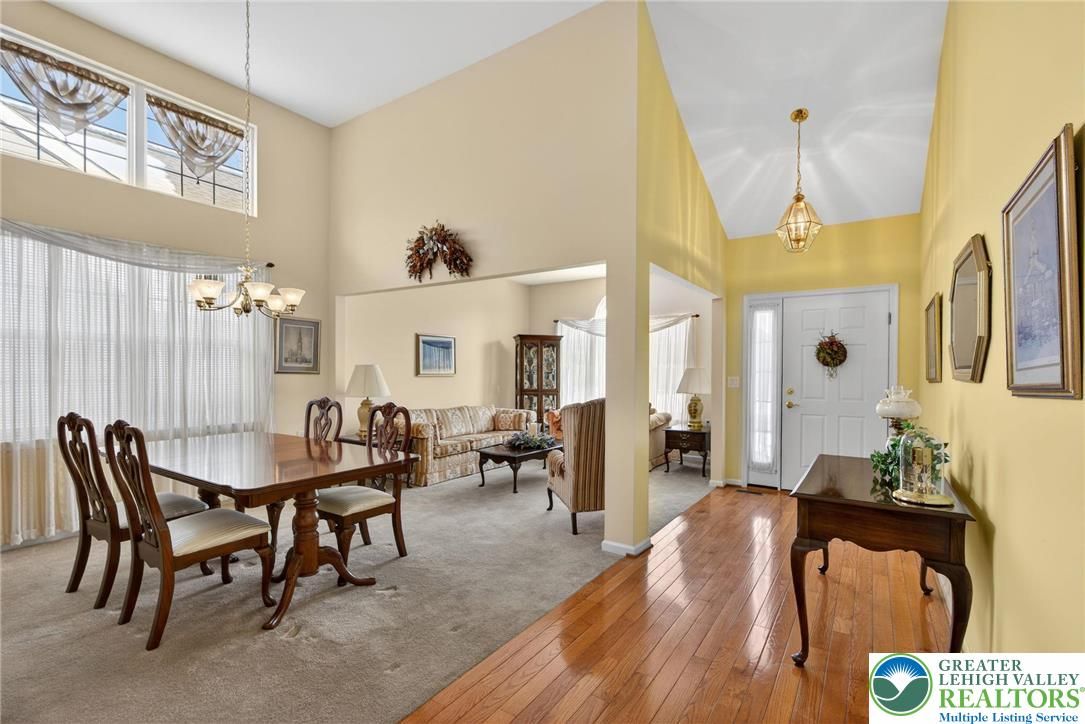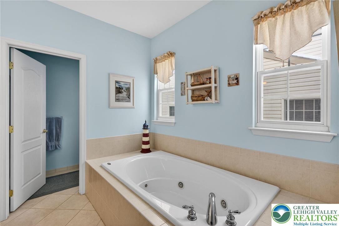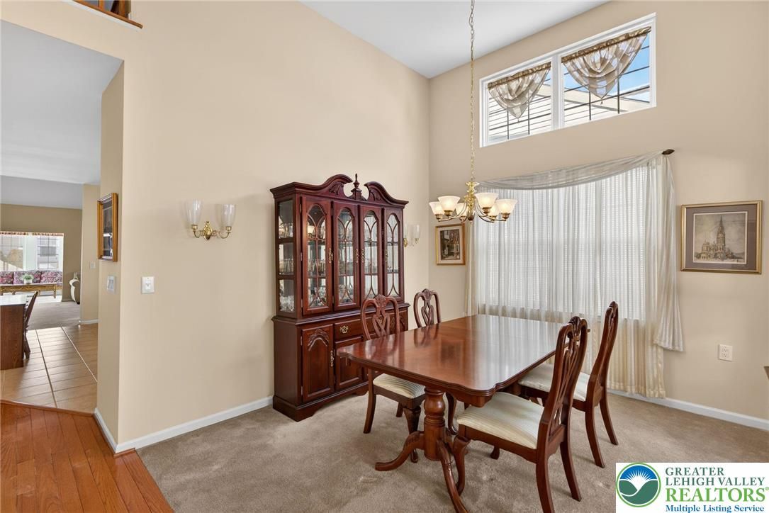 Welcome to Legacy Oaks, a 55+ community in Lower Macungie Township. This well maintained home offers 3 bedrooms and 3 bathrooms and is one of the larger models in the neighborhood. The property includes driveway parking and a 2 car garage. Inside, the foyer opens to hardwood floors and an open flow into the living and dining rooms. The kitchen features updated appliances, tile flooring, quartz countertops, a center island, and an eat in area. Open to the kitchen, the family room includes a gas fireplace and provides a comfortable gathering space. The family room opens directly to a bright four season sunroom, which offers access to the rear patio. The first floor includes a spacious primary suite with two closets, including a walk in closet with organizers, along with an en suite bath featuring a Jacuzzi tub. A second bedroom and a conveniently located half bath are also on this level. The laundry room is located on the main floor and provides direct access to the garage. Upstairs, a clean and open loft overlooks the main living space and is complemented by a finished walk in storage room, an additional bedroom, and a full bathroom. The full basement offers substantial storage and flexibility for future use. Residents of Legacy Oaks have access to community amenities including a swimming pool, tennis and pickleball courts, walking paths, a library, and an exercise room.