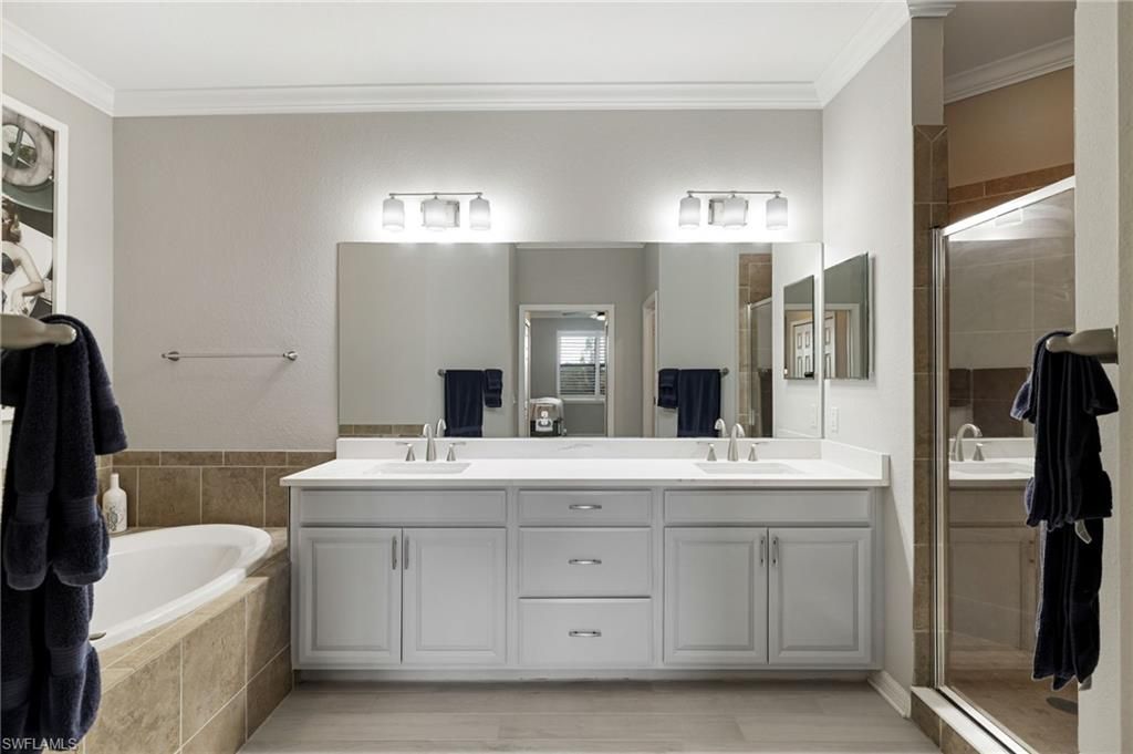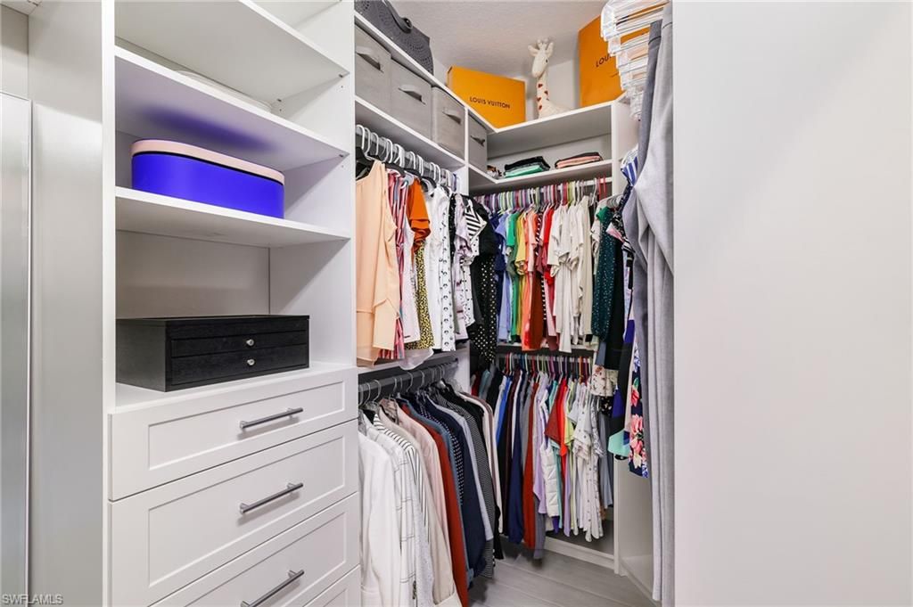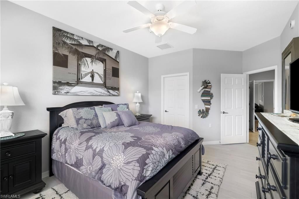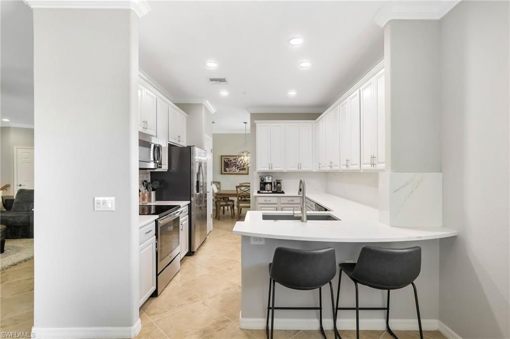 GOLF MEMBERSHIP INCLUDED! A truly rare opportunity to own an upper coach home that overlooks the signature hole at Bonita National (Par 3-13th hole). Only 12 of these units exist! Imagine waking up each morning and enjoying your cup of coffee on the spacious lanai, and witnessing the sunrise over the lake and golf course, while listening to the sweet sounds of the Southwest Florida wildlife. The home offers a generous 2,138 SQFT under air, 3 Spacious Bedrooms, 2 Bathrooms, and a 3-Car (Tandem) Garage, and ample closet space. The home features thoughtful upgrades blending comfort, style, and efficiency, such as tile flooring throughout including plank tile in the bedrooms and lanai, premium quartz counters in the kitchen and bathrooms, plantation shutters, custom walk-in closets by "Naples Closets," fresh interior paint, upgraded lighting, and impact rated windows. New LVP staircase as of March 2026. The garage has thoughtful ceiling storage and is finished with an epoxy floor. The unit is conveniently located next to the Carlow Satellite Pool and community BBQ/Grill. Bonita National has the best amenities in Southwest Florida highlighted by the resort-style pool with their showstopping rock waterfall and poolside bar and grill, championship-style golf with an over-sized practice facility and recently upgraded short game area, grand clubhouse with formal and informal dining, golf pro shop, card rooms, 8 Har-Tru lighted tennis courts, full service spa, and large fitness center. Located in the heart of SWFL, close to Bonita Beach, dining, shopping, RSW Airport, and the upcoming “Midtown at Bonita.”