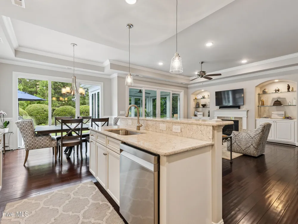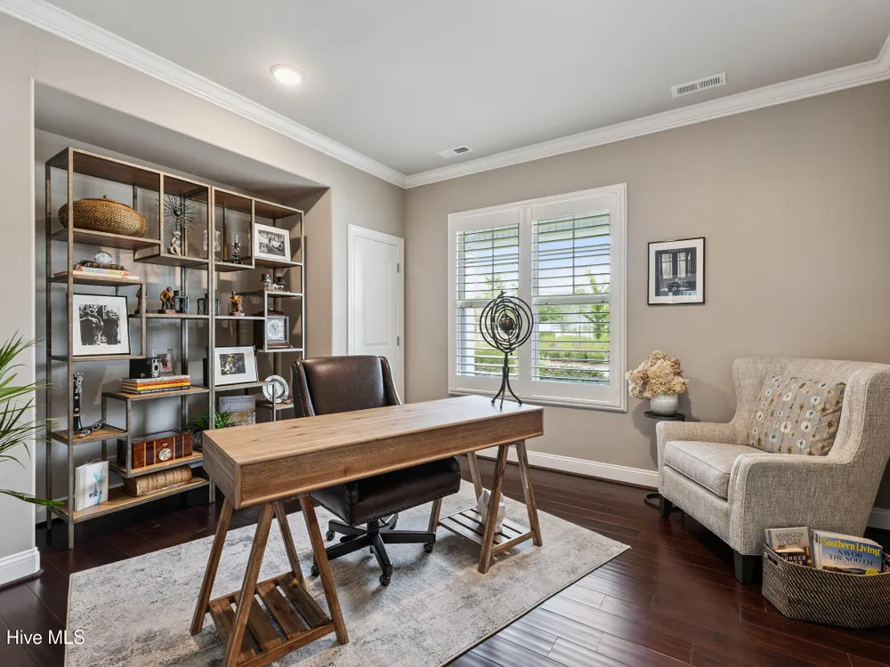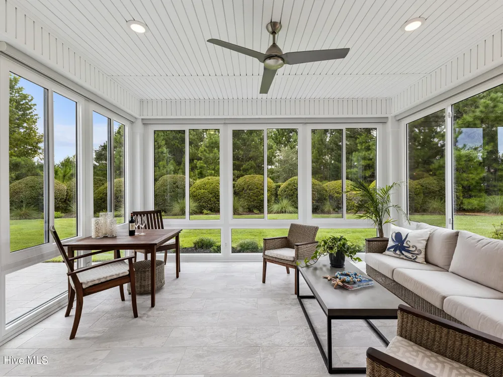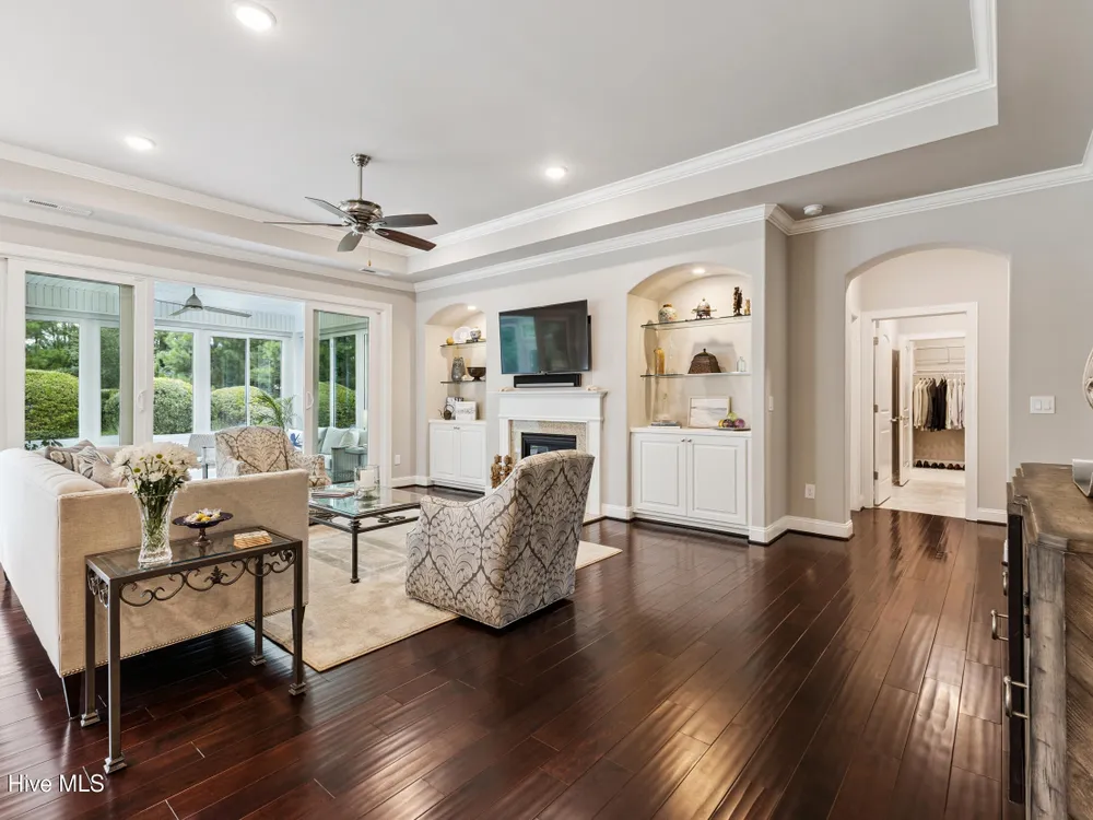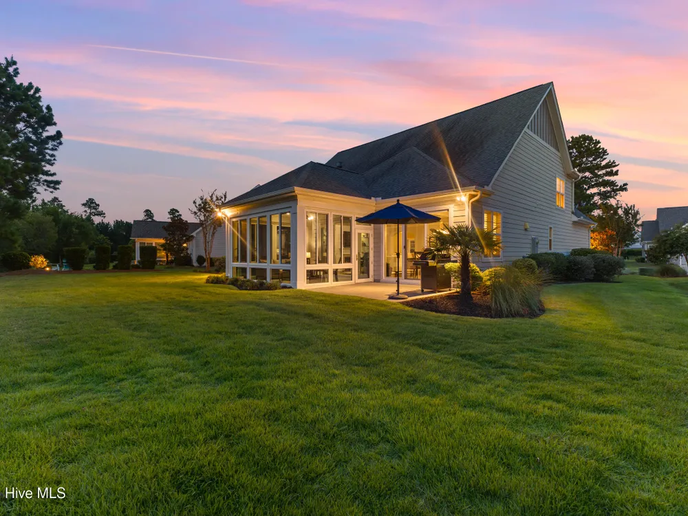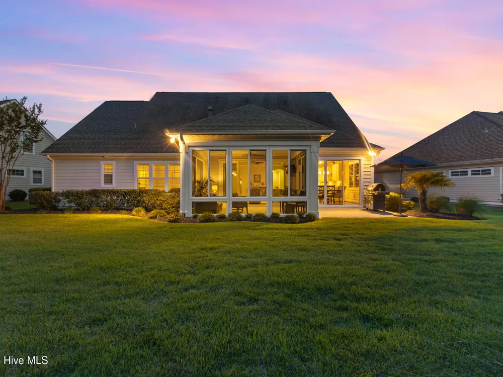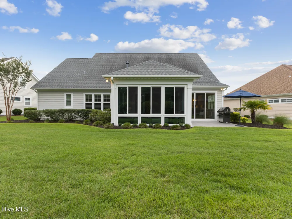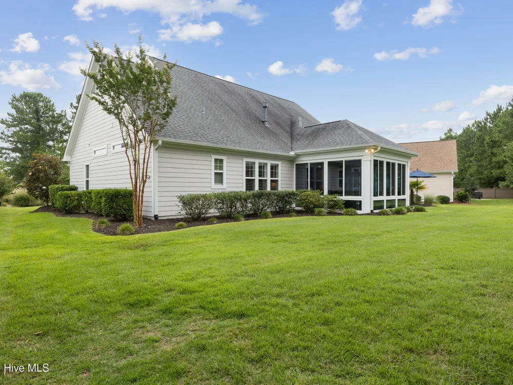 Welcome to 2854 Pine Bloom Way, nestled in the desirable Park Landing neighborhood of Brunswick Forest. This beautifully maintained home offers 2 bedrooms, 2 full bathrooms, and a flexible study that can easily serve as a 3rd bedroom--all conveniently located on the main floor. Upstairs, you'll find a spacious bonus room with a half bath, ideal for a media room, home office, craft space, or guest retreat.Designed for comfortable, low-maintenance living, the open-concept floor plan features hardwood floors throughout the main living areas and study, a cozy gas fireplace with built-ins, tray ceiling, and a beautifully appointed kitchen with stainless appliances, gas range, and quartz countertops.Enjoy your morning coffee in the glassed-in sunroom (unheated), or relax on the charming front porch overlooking a wooded common area. The private backyard offers peaceful views of mature landscaping and natural surroundings.Lawn maintenance is included in the HOA, and you're just a short distance from the main fitness and wellness center, as well as the Reflections pool and workout facility.Don't miss this move-in ready home in one of Leland's most sought-after communities!