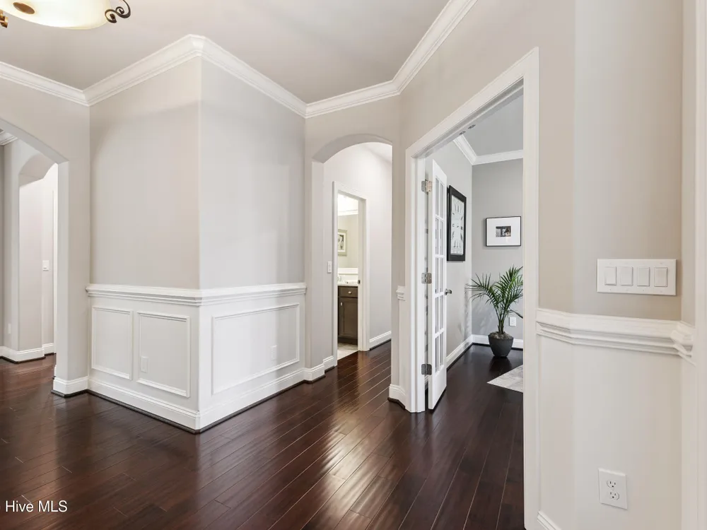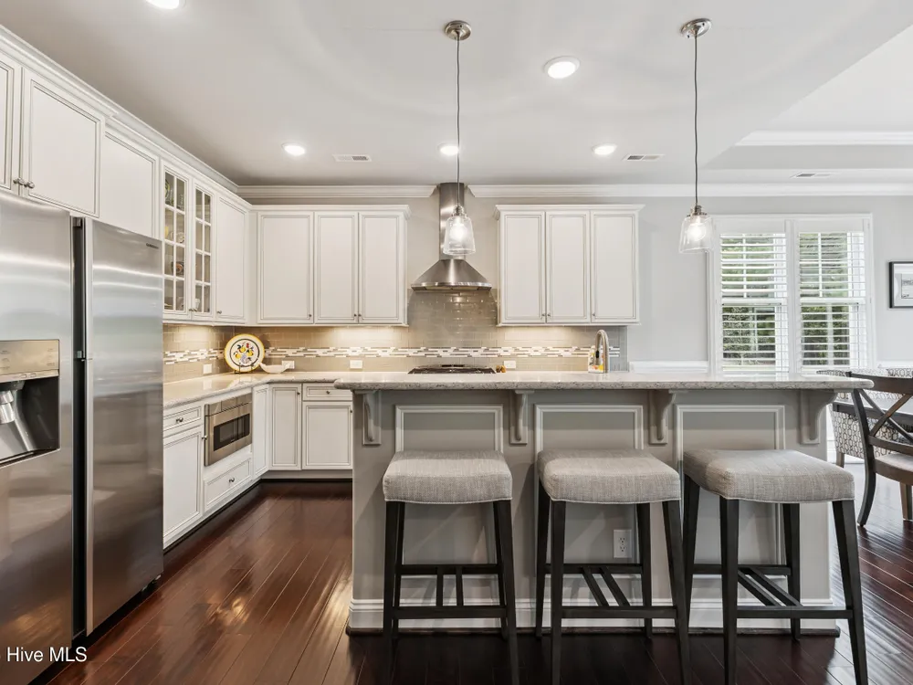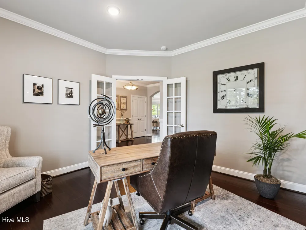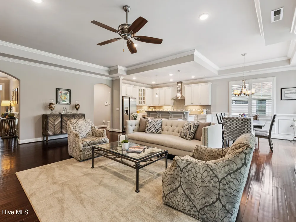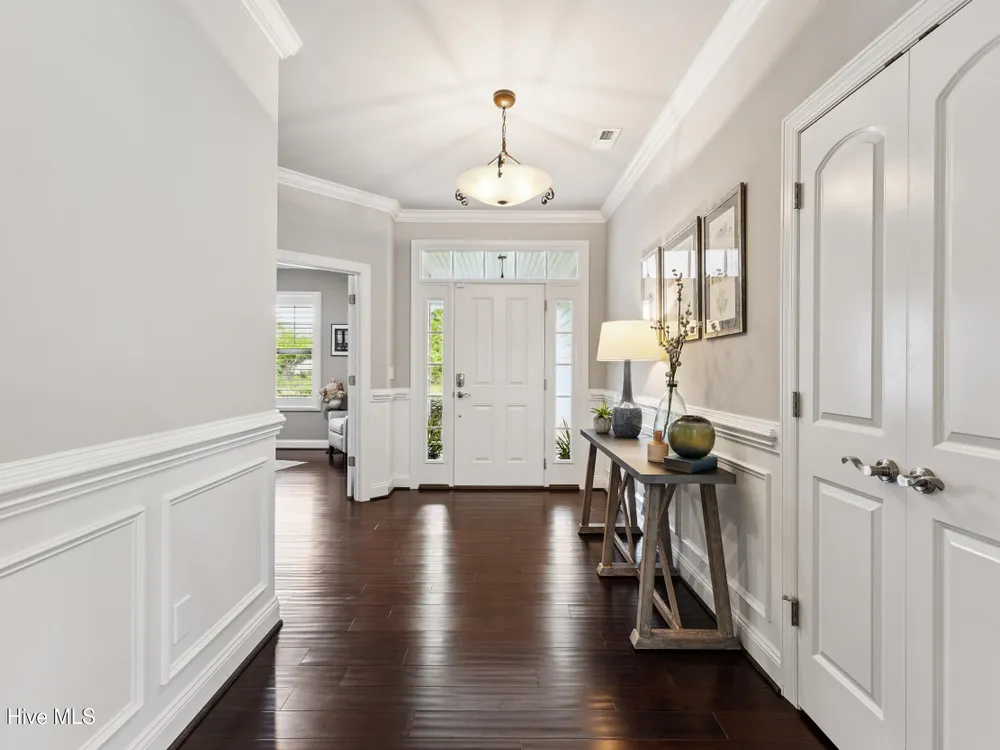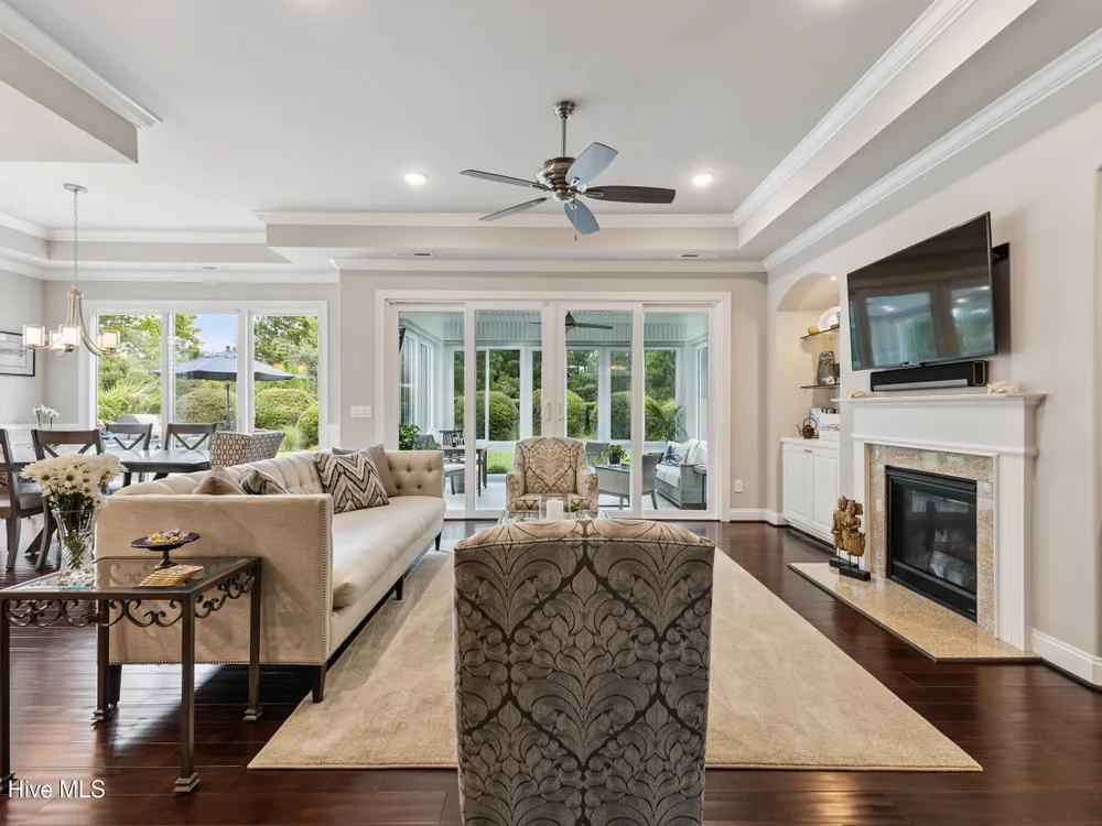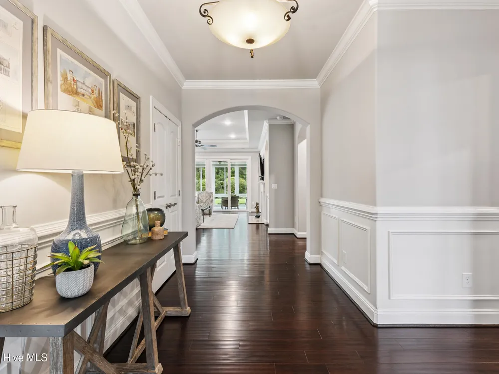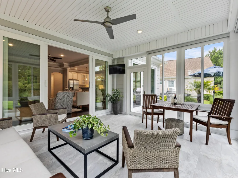 Welcome to 2854 Pine Bloom Way, nestled in the desirable Park Landing neighborhood of Brunswick Forest. This beautifully maintained home offers 2 bedrooms, 2 full bathrooms, and a flexible study that can easily serve as a 3rd bedroom--all conveniently located on the main floor. Upstairs, you'll find a spacious bonus room with a half bath, ideal for a media room, home office, craft space, or guest retreat.Designed for comfortable, low-maintenance living, the open-concept floor plan features hardwood floors throughout the main living areas and study, a cozy gas fireplace with built-ins, tray ceiling, and a beautifully appointed kitchen with stainless appliances, gas range, and quartz countertops.Enjoy your morning coffee in the glassed-in sunroom (unheated), or relax on the charming front porch overlooking a wooded common area. The private backyard offers peaceful views of mature landscaping and natural surroundings.Lawn maintenance is included in the HOA, and you're just a short distance from the main fitness and wellness center, as well as the Reflections pool and workout facility.Don't miss this move-in ready home in one of Leland's most sought-after communities!